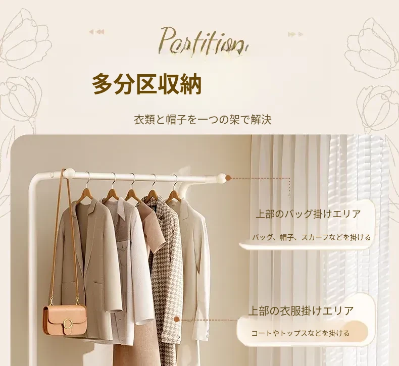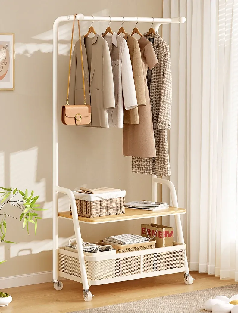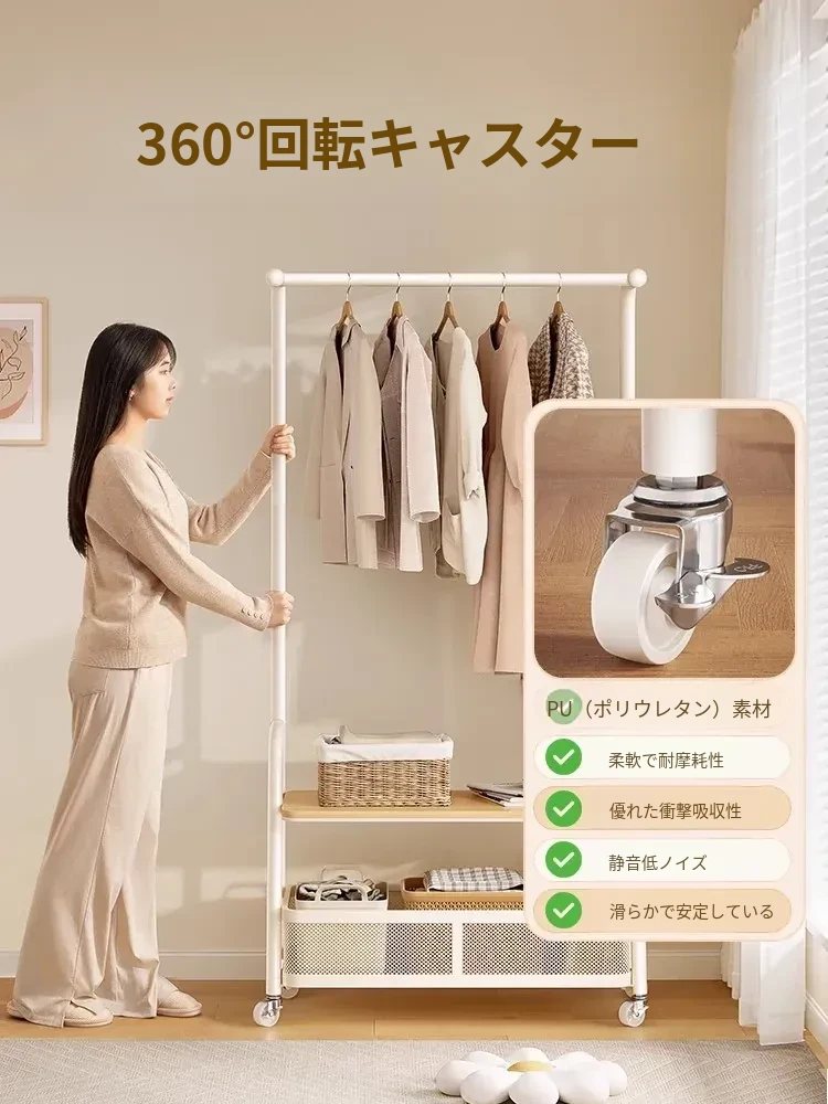 寝室用ハンガーラック、ベッドサイドに最適な衣類収納!夜の服を置くのに便利なキャスター付き移動式コートスタンド。おしゃれで機能的、あなたの生活空間をスッキリ整えます!