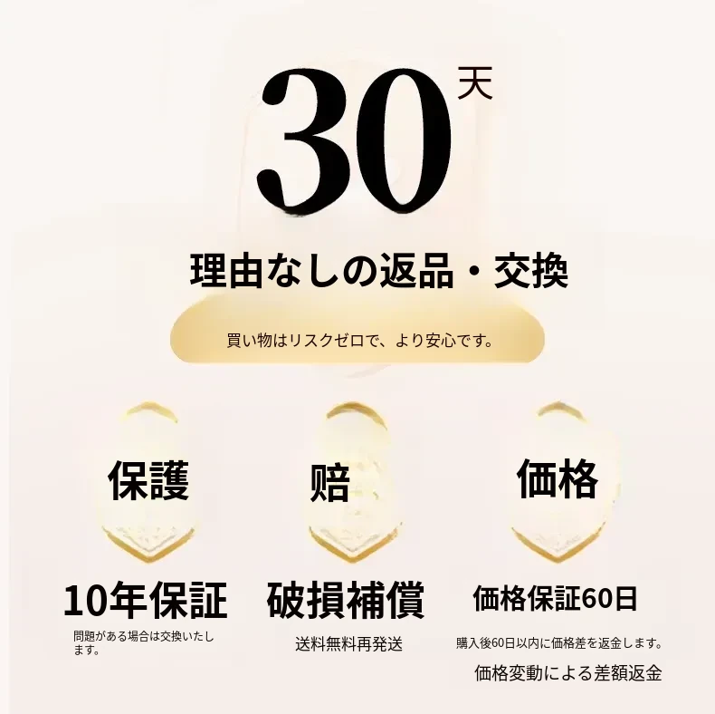60日間価格保証 10年品質保証 破損時補償