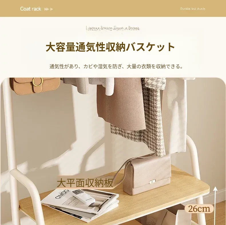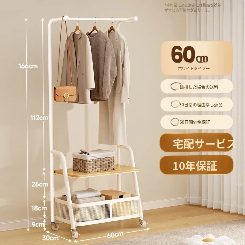 【60cm】クリームホワイトハンガー+ウッド調棚