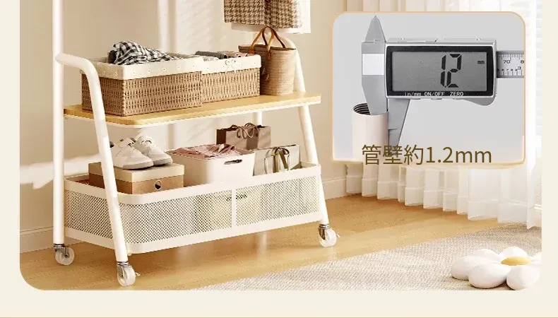 【100cm】クリームホワイトハンガー+ウッド調棚