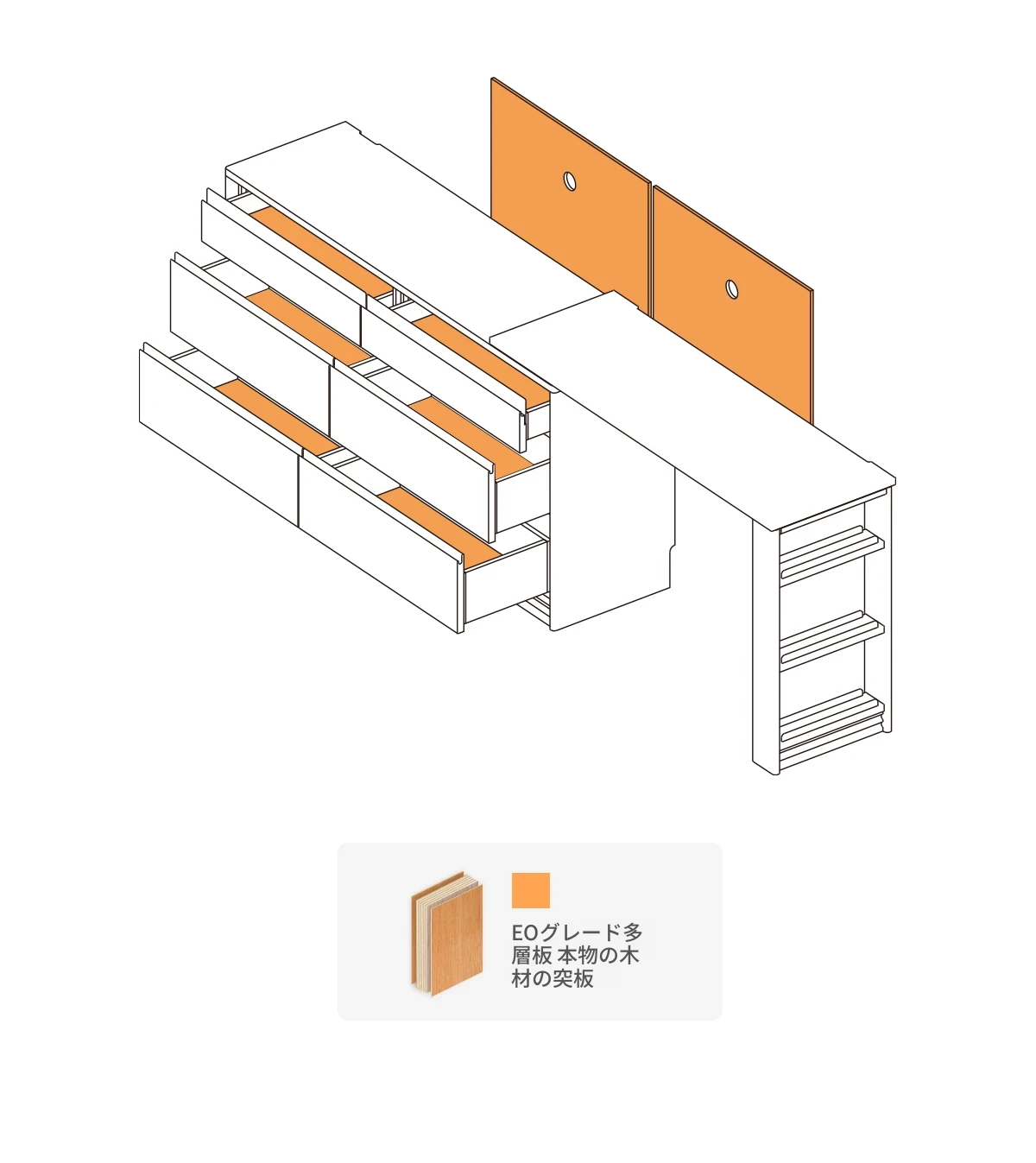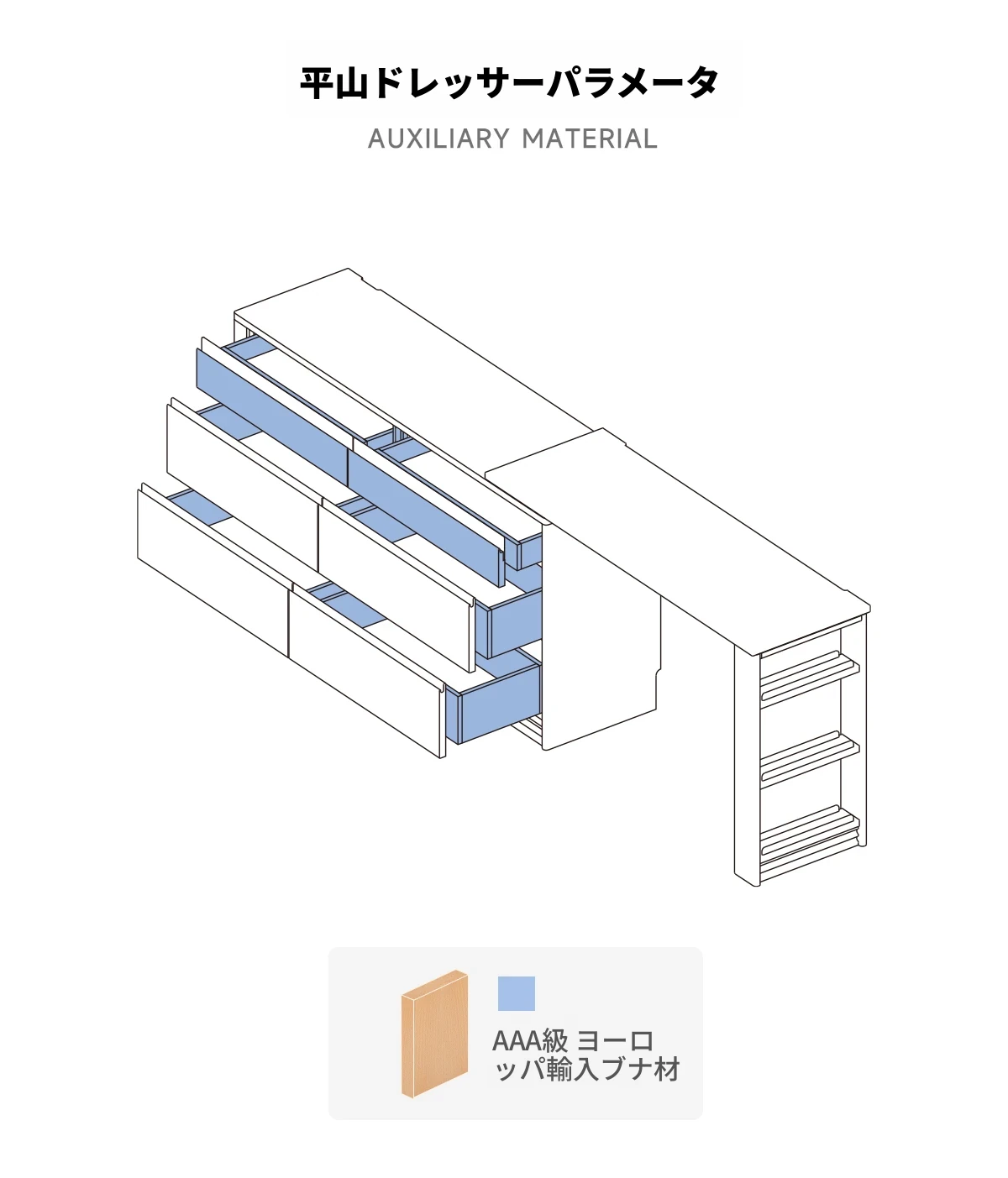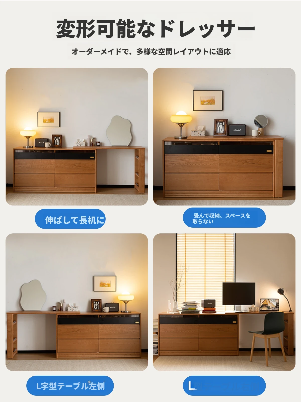 半完成品の木製ドレッサー - シンプルなデザインと収納力抜群家具!