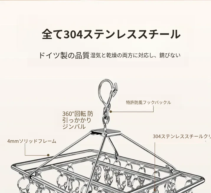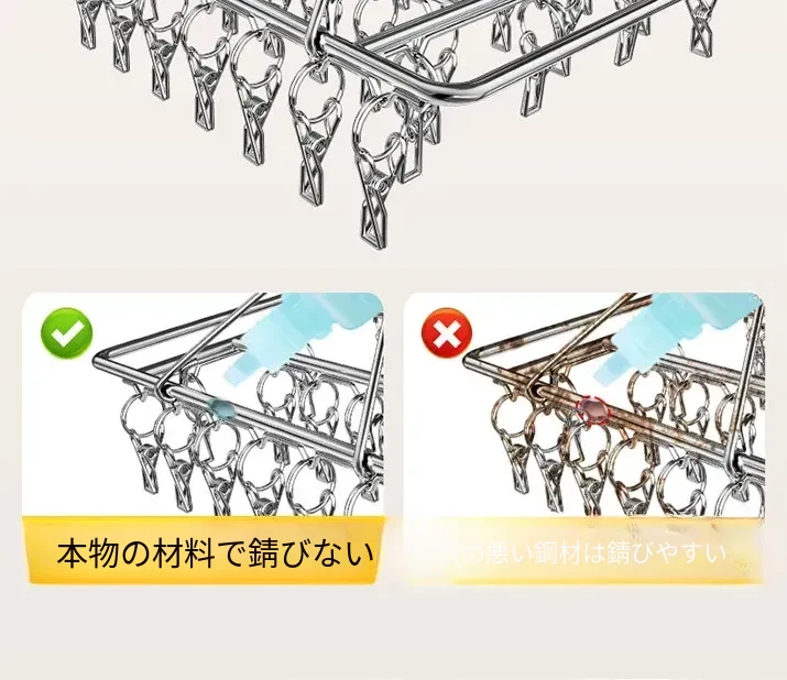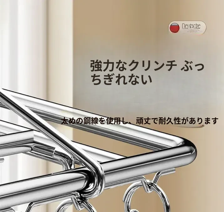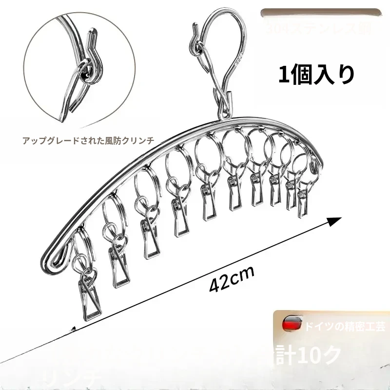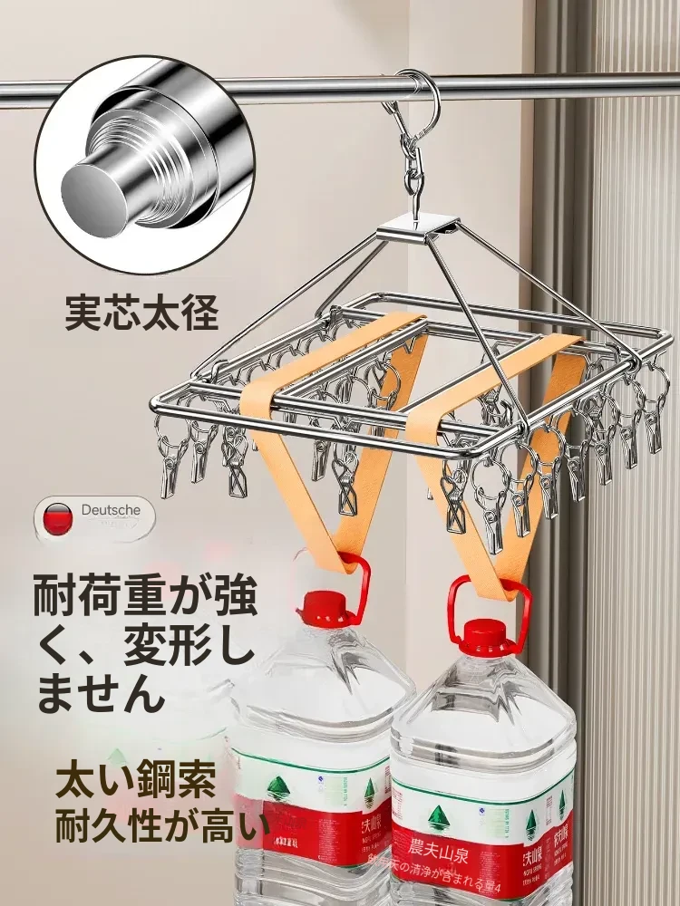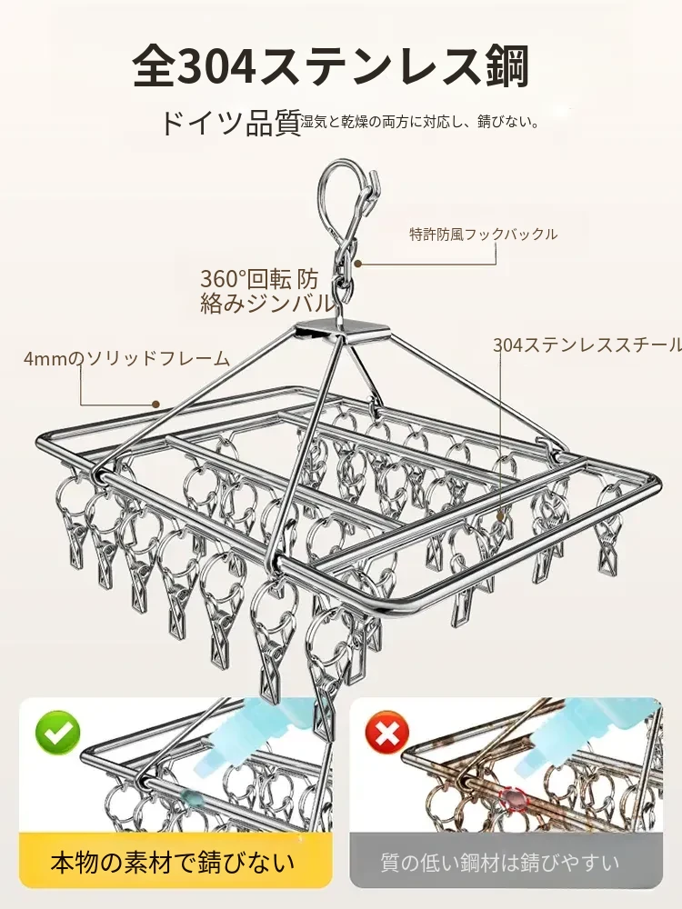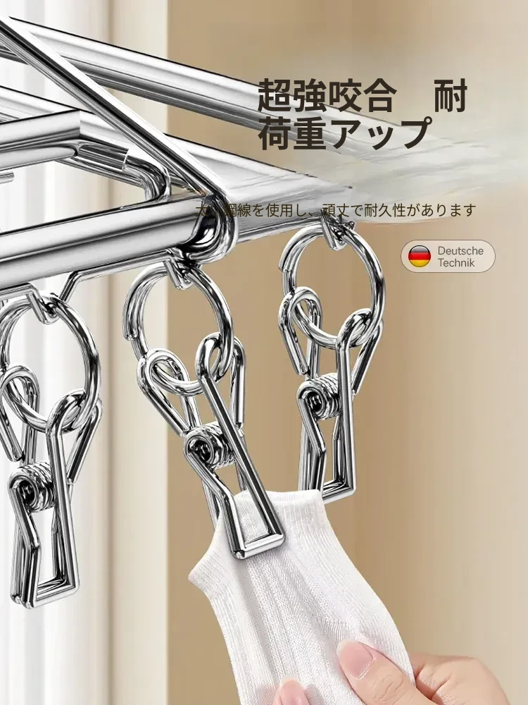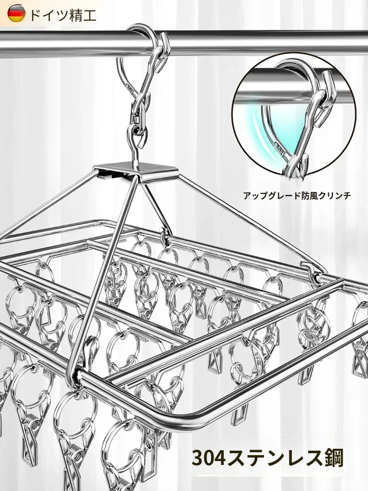 304ステンレス製 多機能衣類ハンガー - 無痕・強風対策!厚手のデザインでしっかり固定、バルコニーで靴下も簡単に干せる便利アイテム!おしゃれで実用的な生活をサポートします。