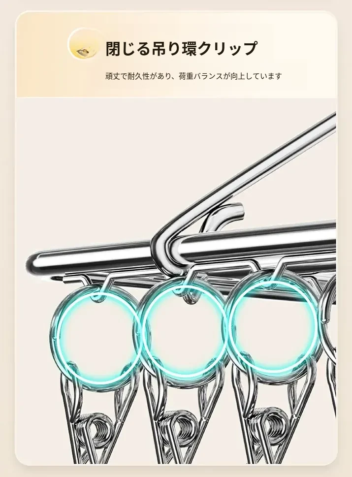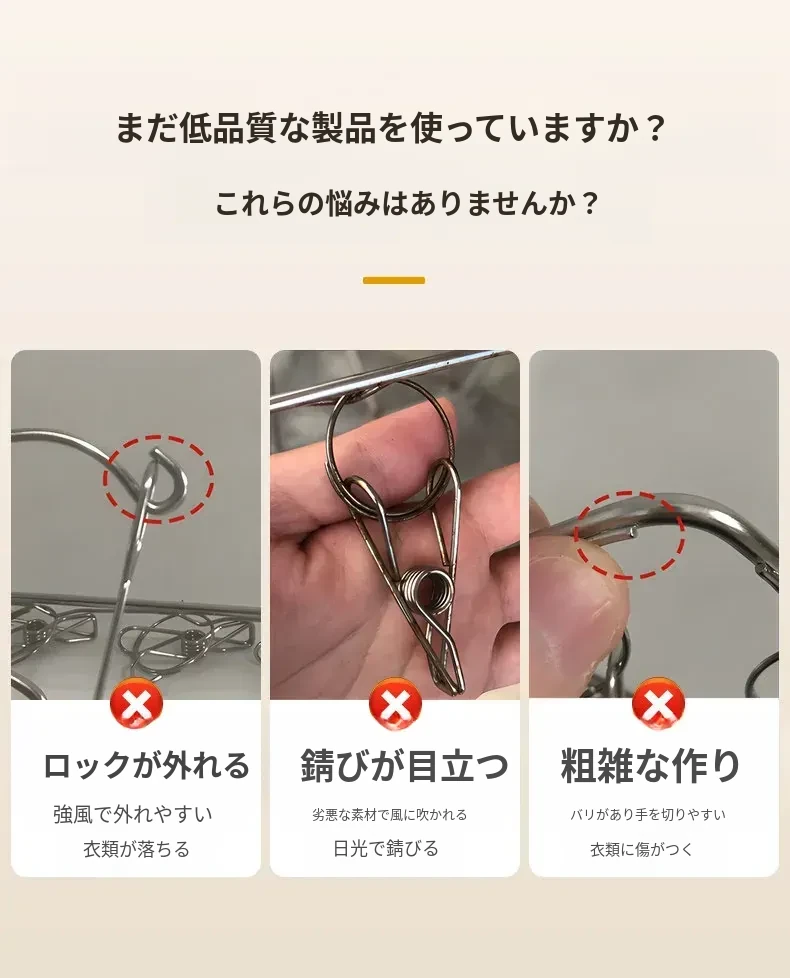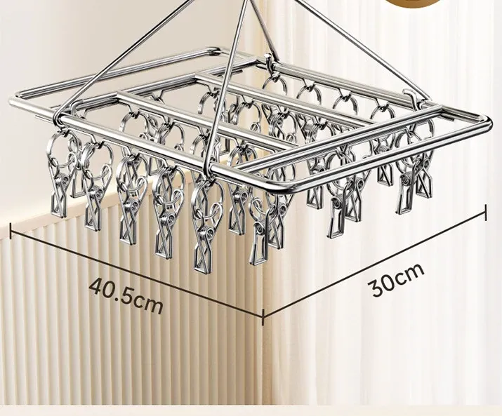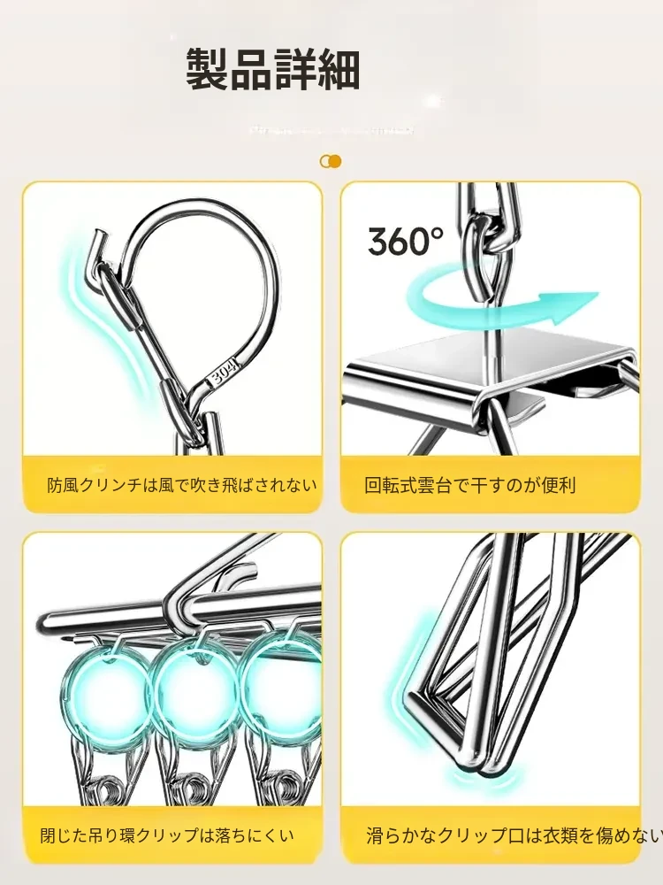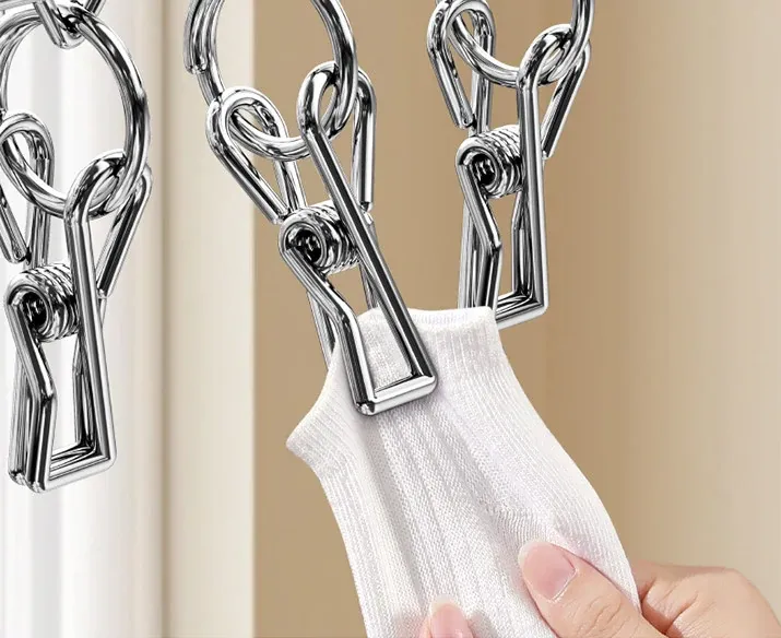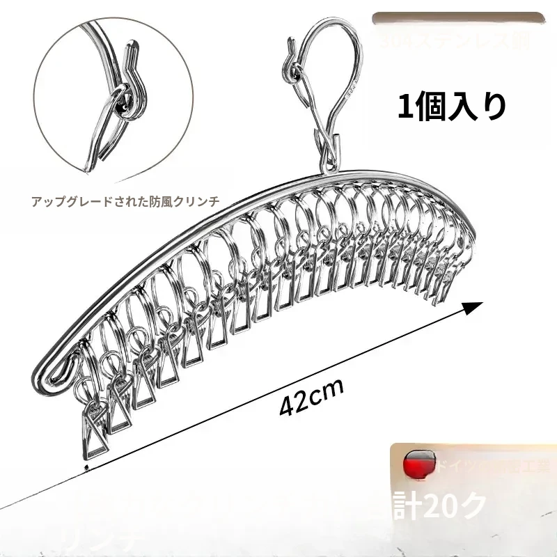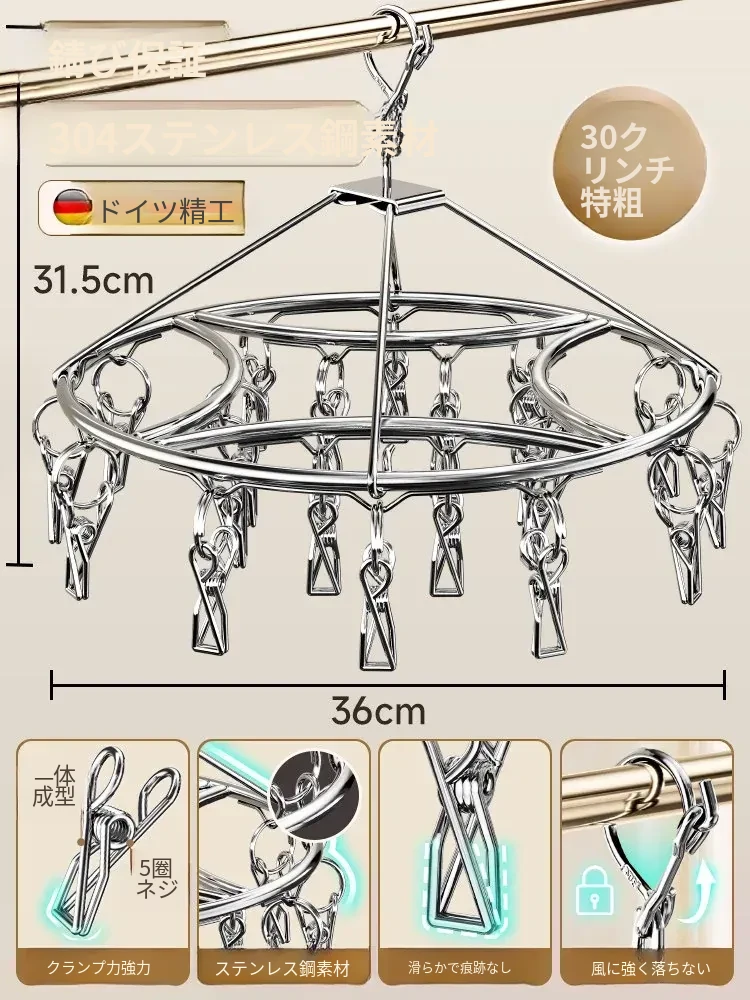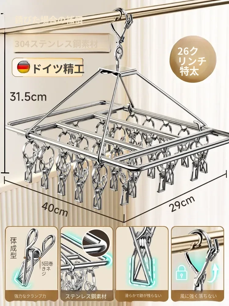304ステンレス製 多機能衣類ハンガー - 無痕・強風対策!厚手のデザインでしっかり固定、バルコニーで靴下も簡単に干せる便利アイテム!おしゃれで実用的な生活をサポートします。