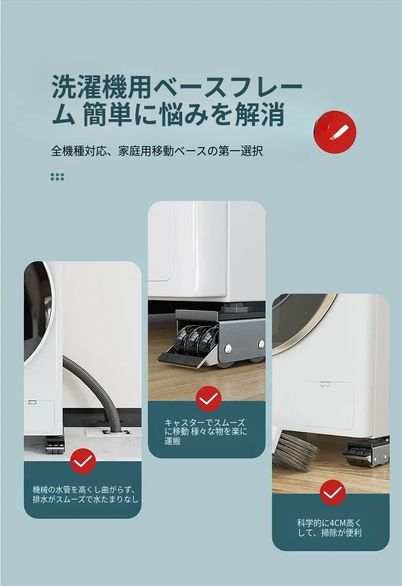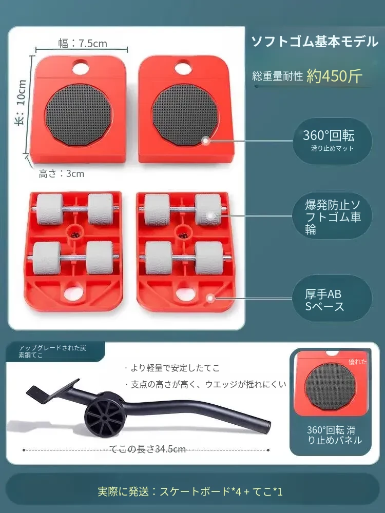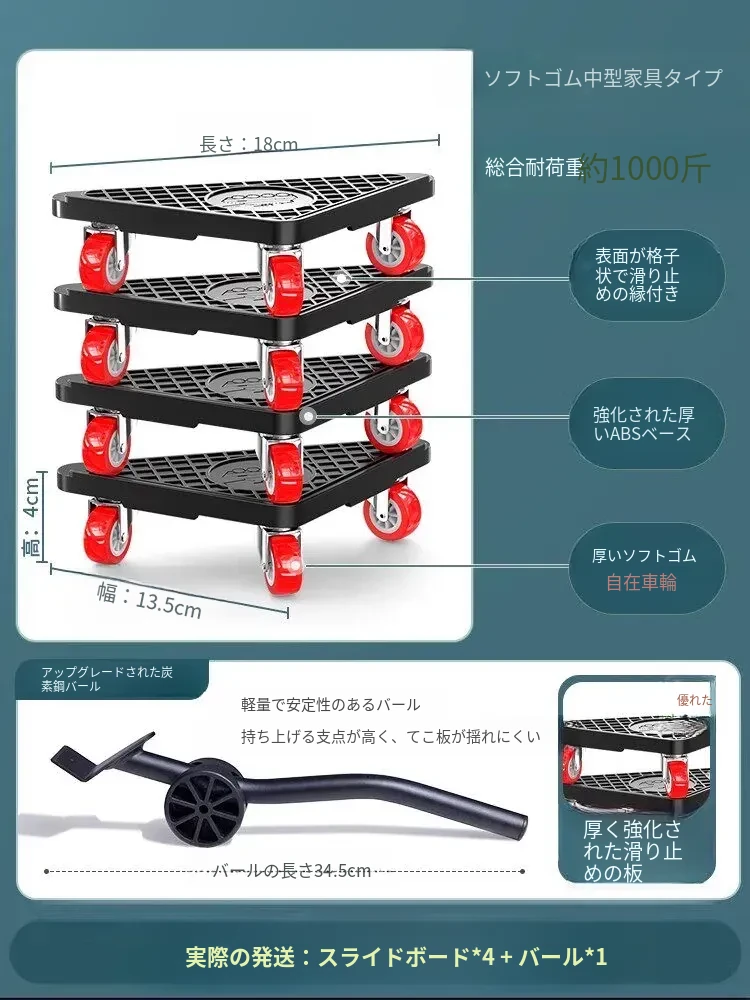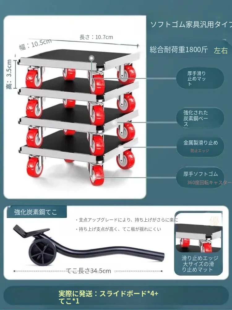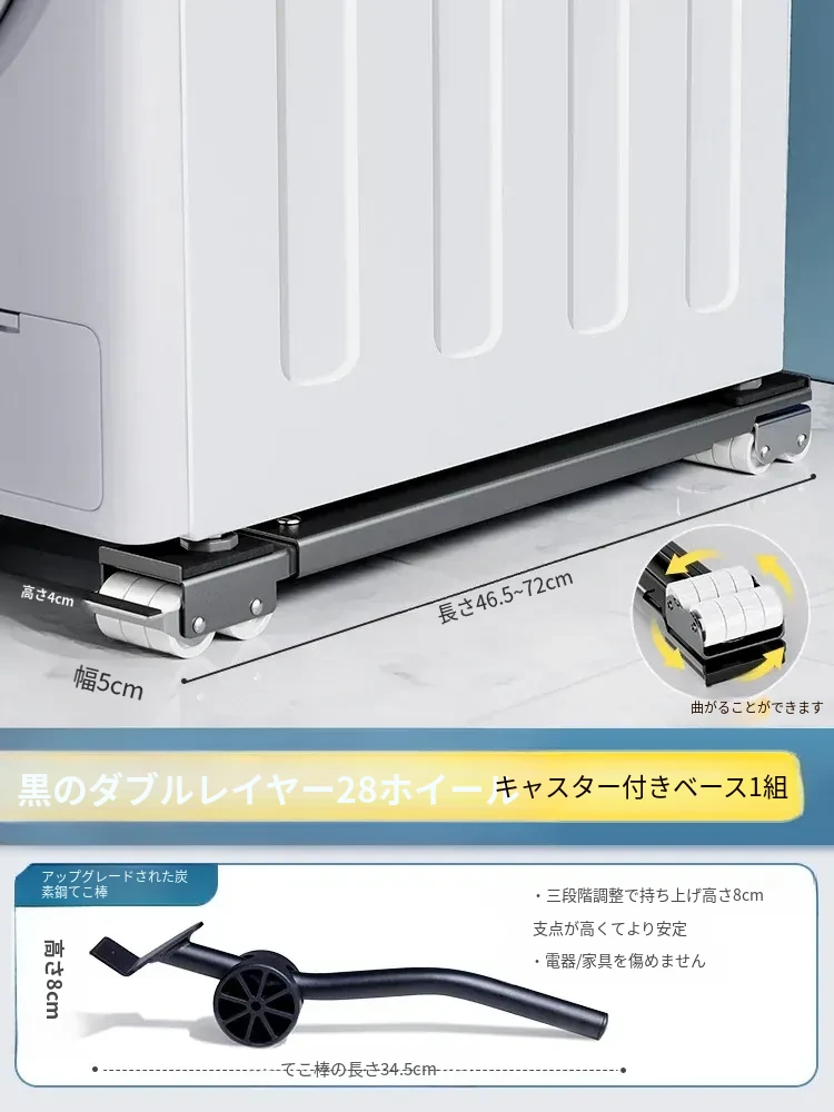 重い物をラクに移動!洗濯機・冷蔵庫・家具に最適な万能キャスター付き移動スライダー。省力化を実現し、移動も簡単!引っ越しや模様替えに最適な便利アイテムです。