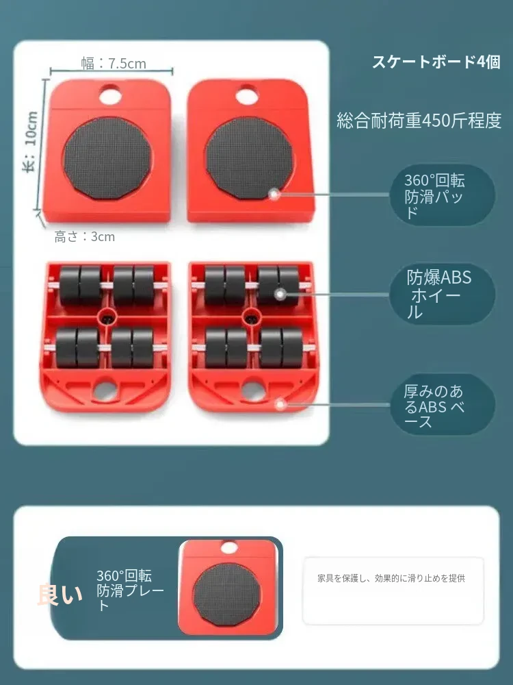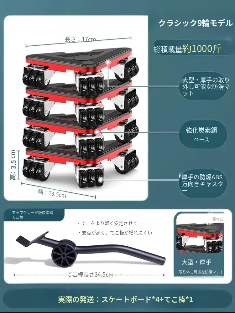 重い物を楽々移動!引越し・家具移動に最適な万能キャスター付き移動台。テーブルや冷蔵庫もスムーズに運べる!快適な暮らしをサポートする移動器具。