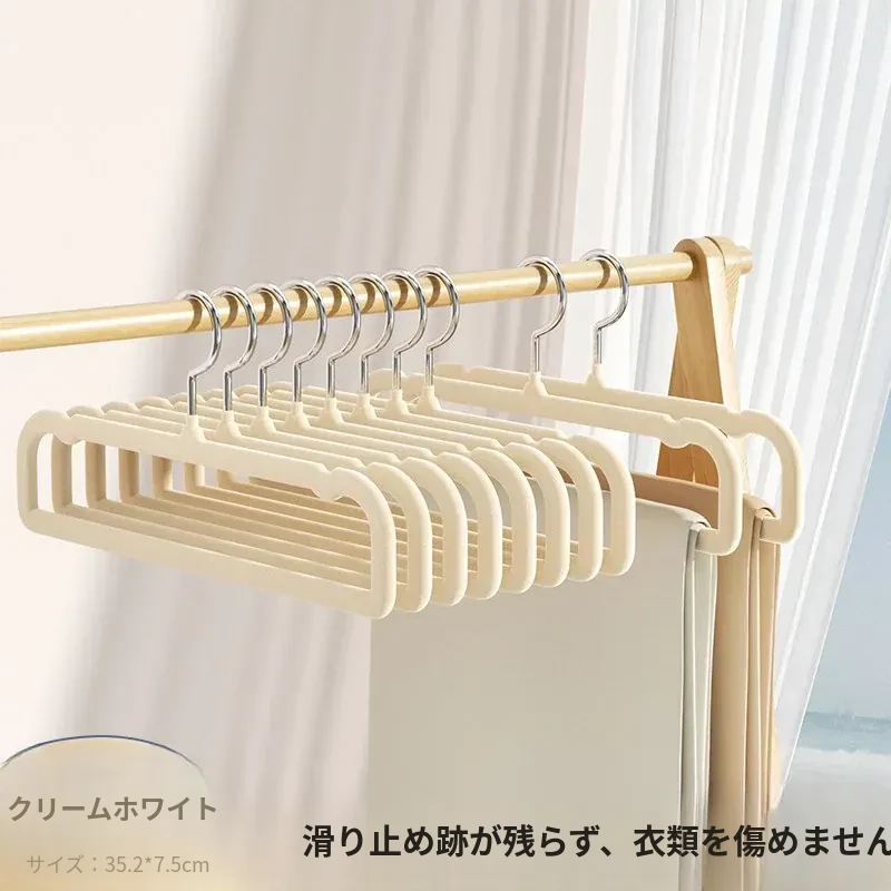 2025厚手フロッキングパンツハンガー✅クリームホワイト【滑り止めで毛が抜けない】