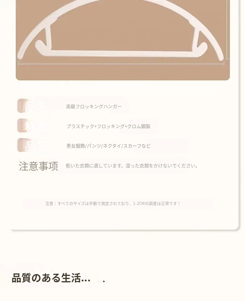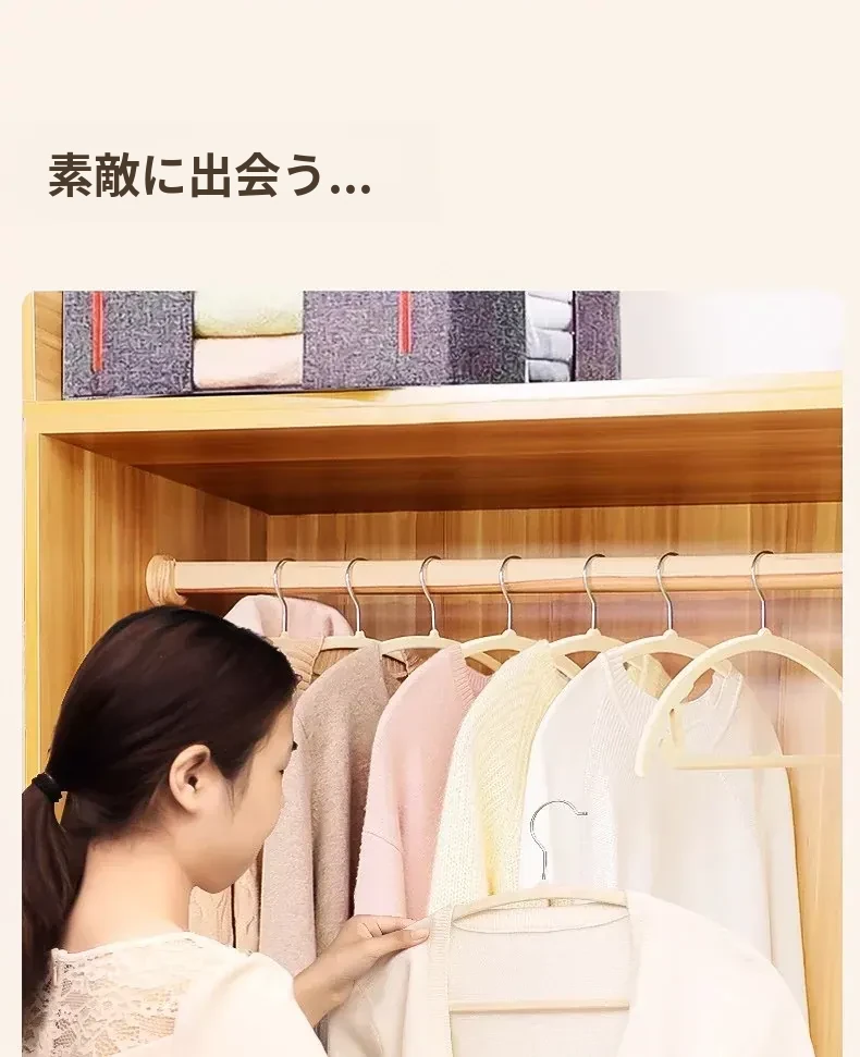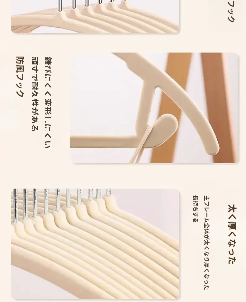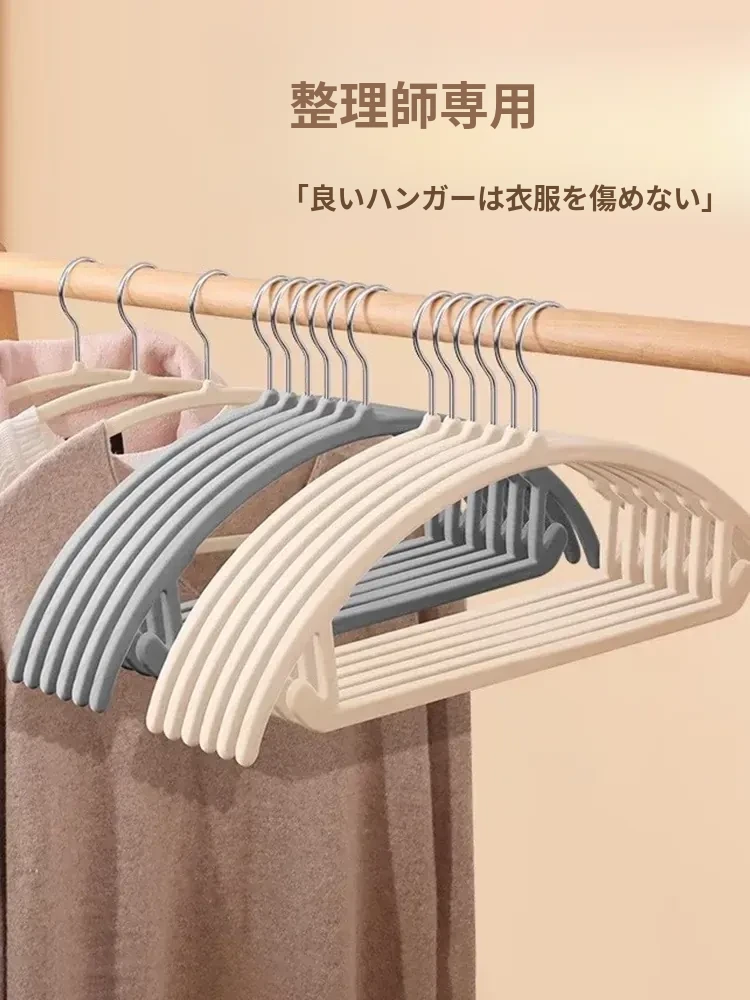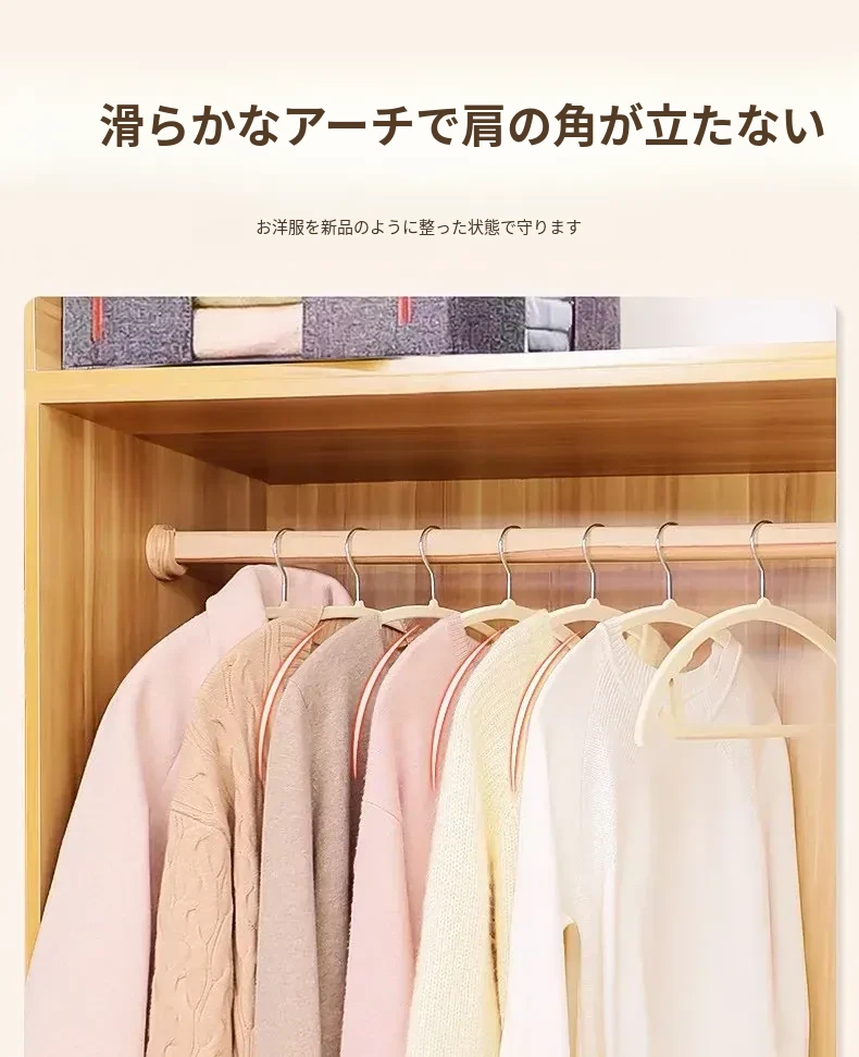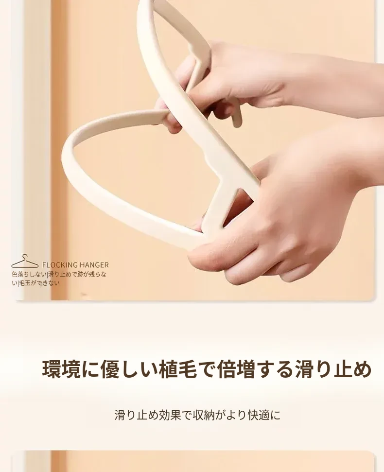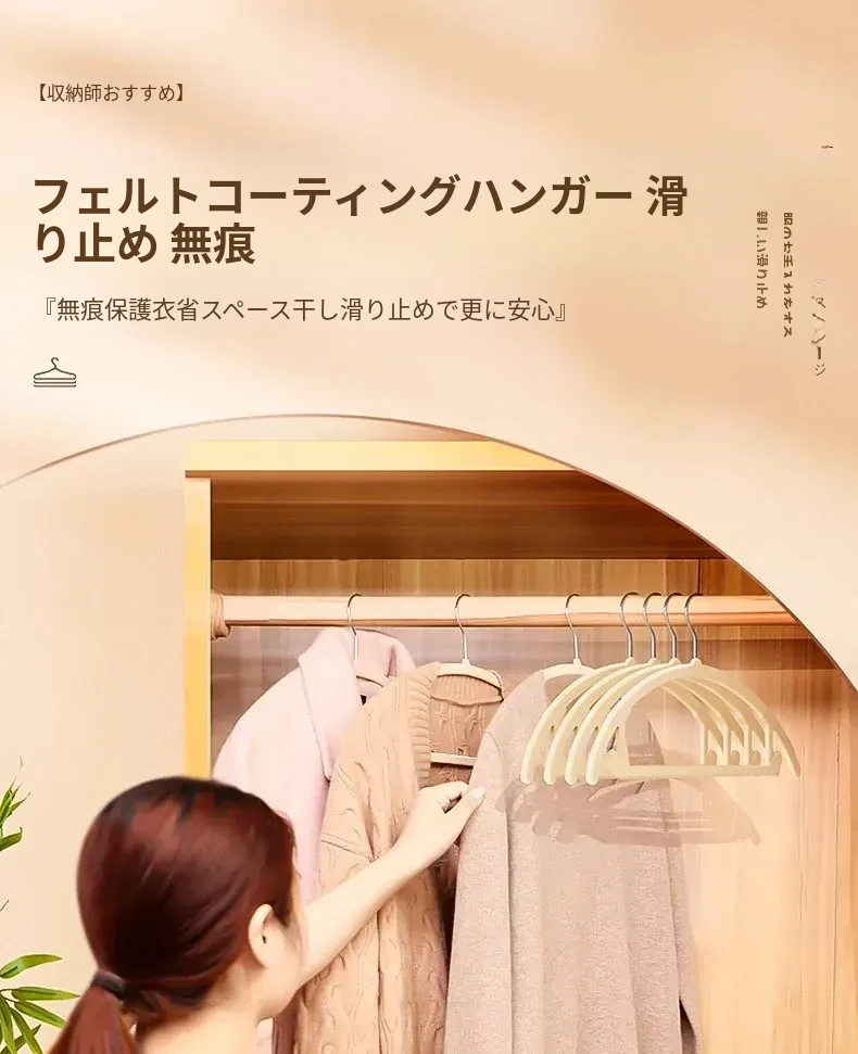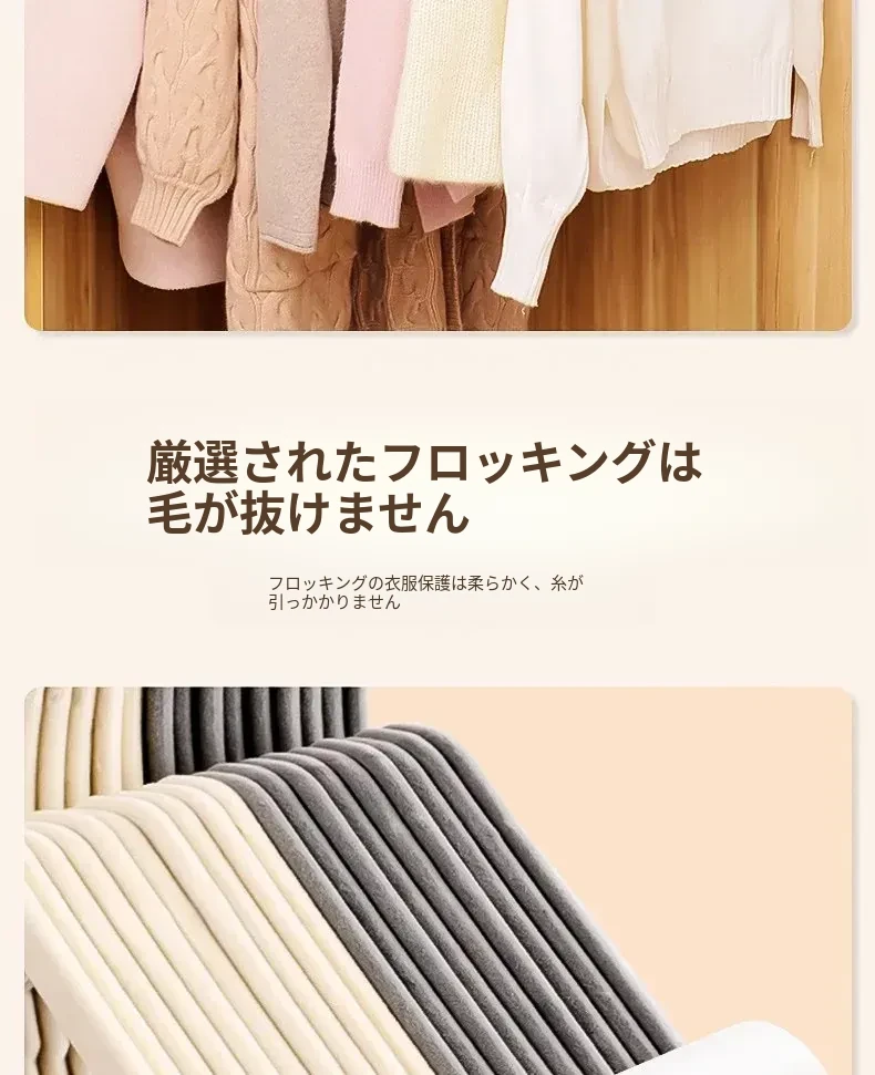 日本製フロッキーコートハンガー - 無痕で家族の衣類を優しくサポート!寮や家庭での収納に最適、肩の形を守りながら美しく乾燥。衣類をしっかり吊るして、すっきり片付ける魔法のアイテム!