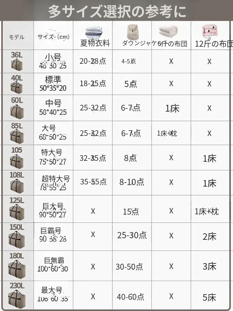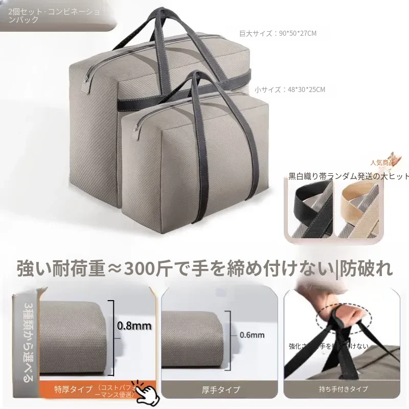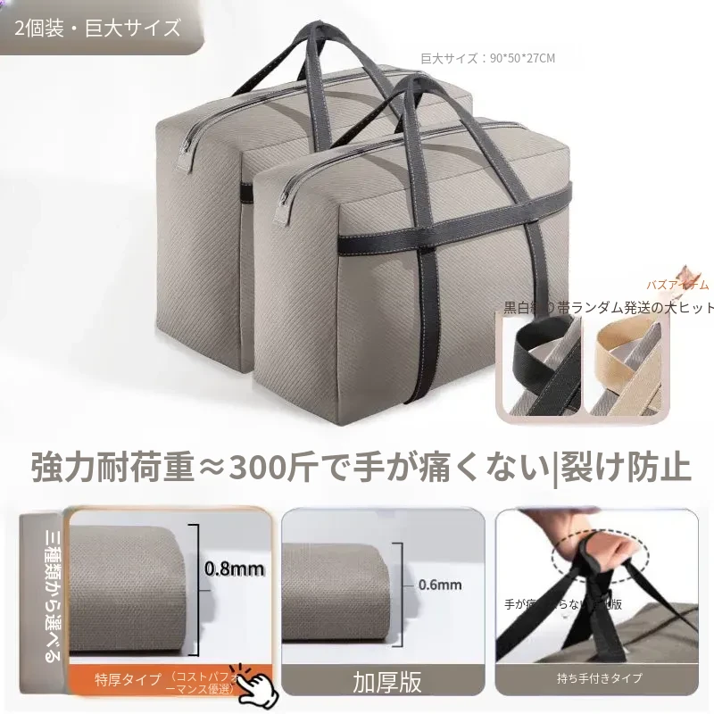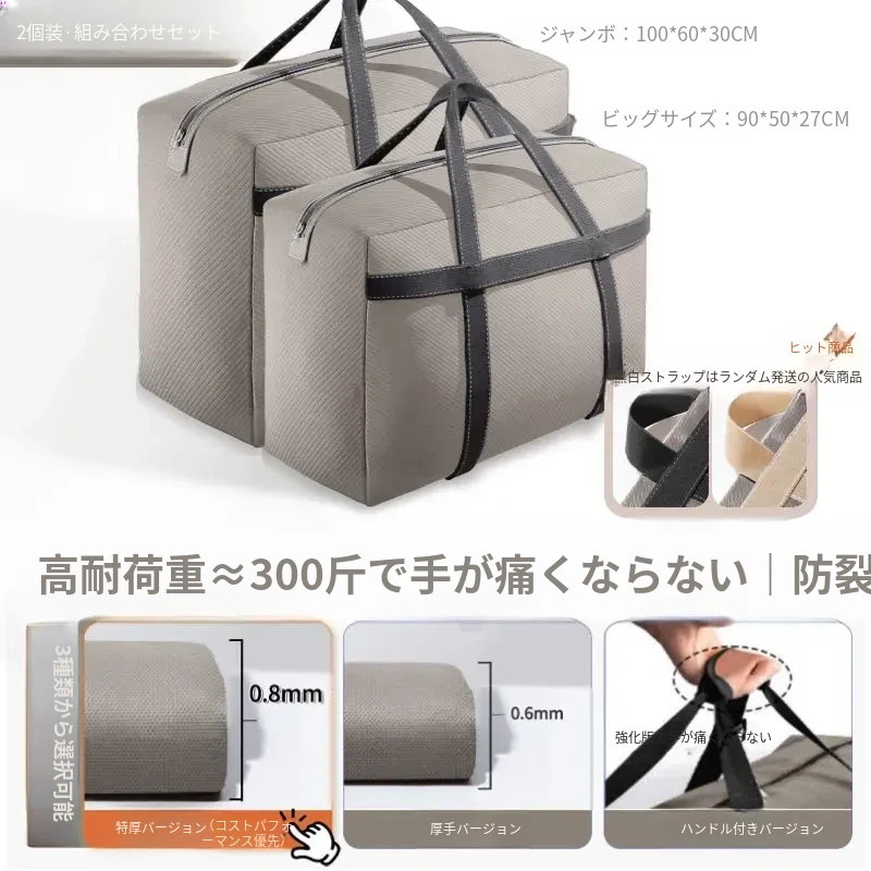 引っ越しに最適!大容量収納袋 - 布団や衣類をすっきり整理!学生の寮生活にもぴったり!おしゃれなデザインで、持ち運びも便利!