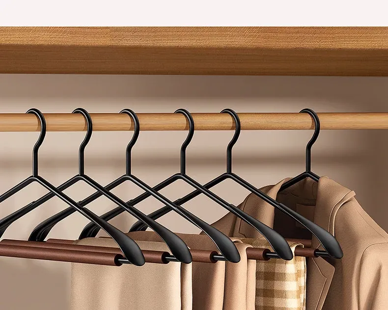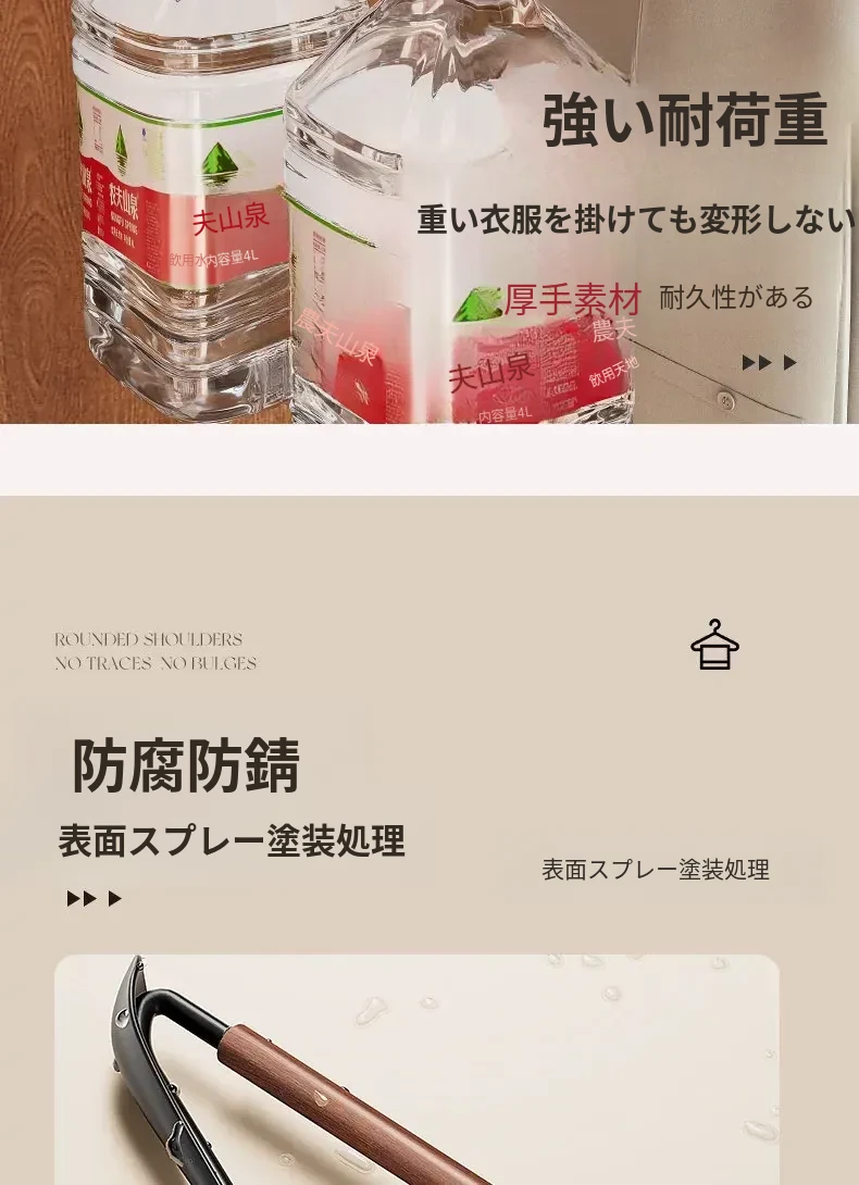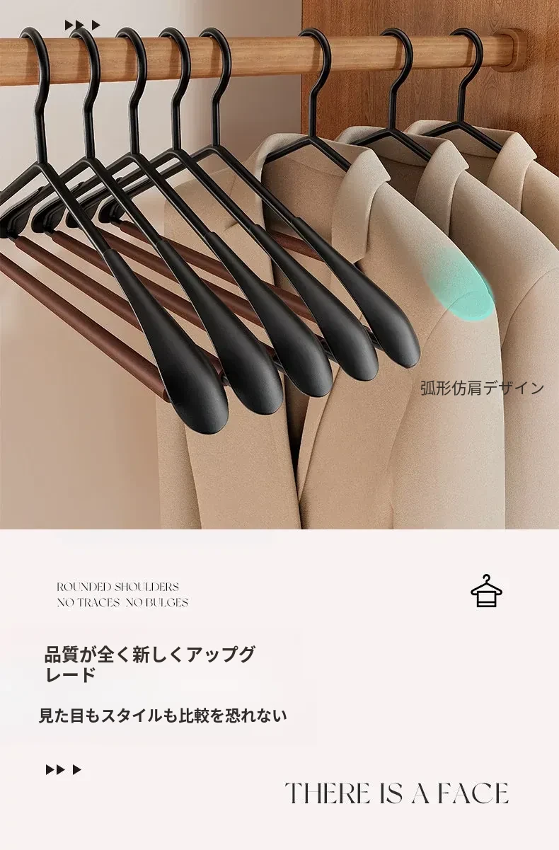 滑らかで高級感あふれる衣類ハンガー!家庭用の防滑・無痕デザイン、大衣専用で肩の形を守ります。おしゃれで機能的な高端衣架で、あなたの衣類を優雅にディスプレイしましょう。