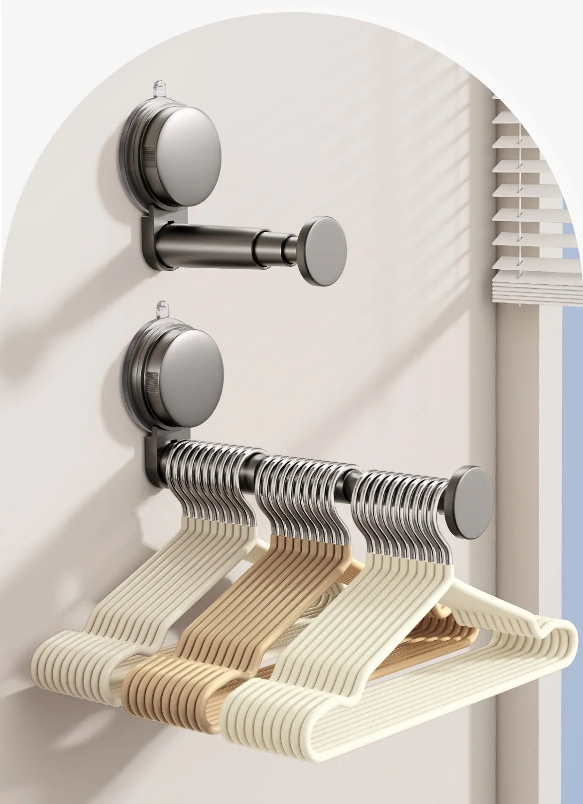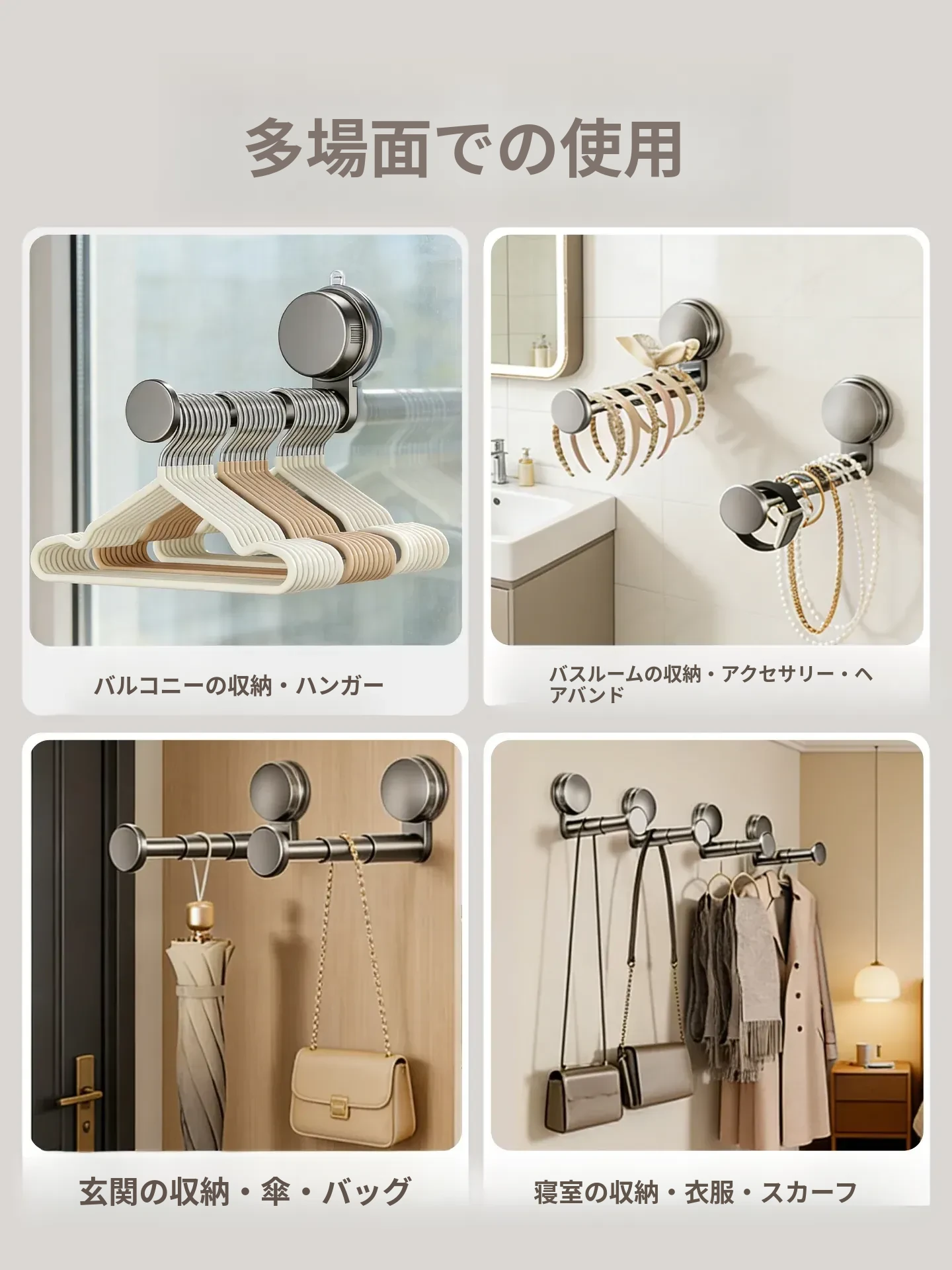 バルコニー用壁掛け多機能衣類ハンガー収納ラック - 取り付け不要で伸縮自在、家の整理整頓を簡単に!おしゃれな空間を演出する便利アイテム!