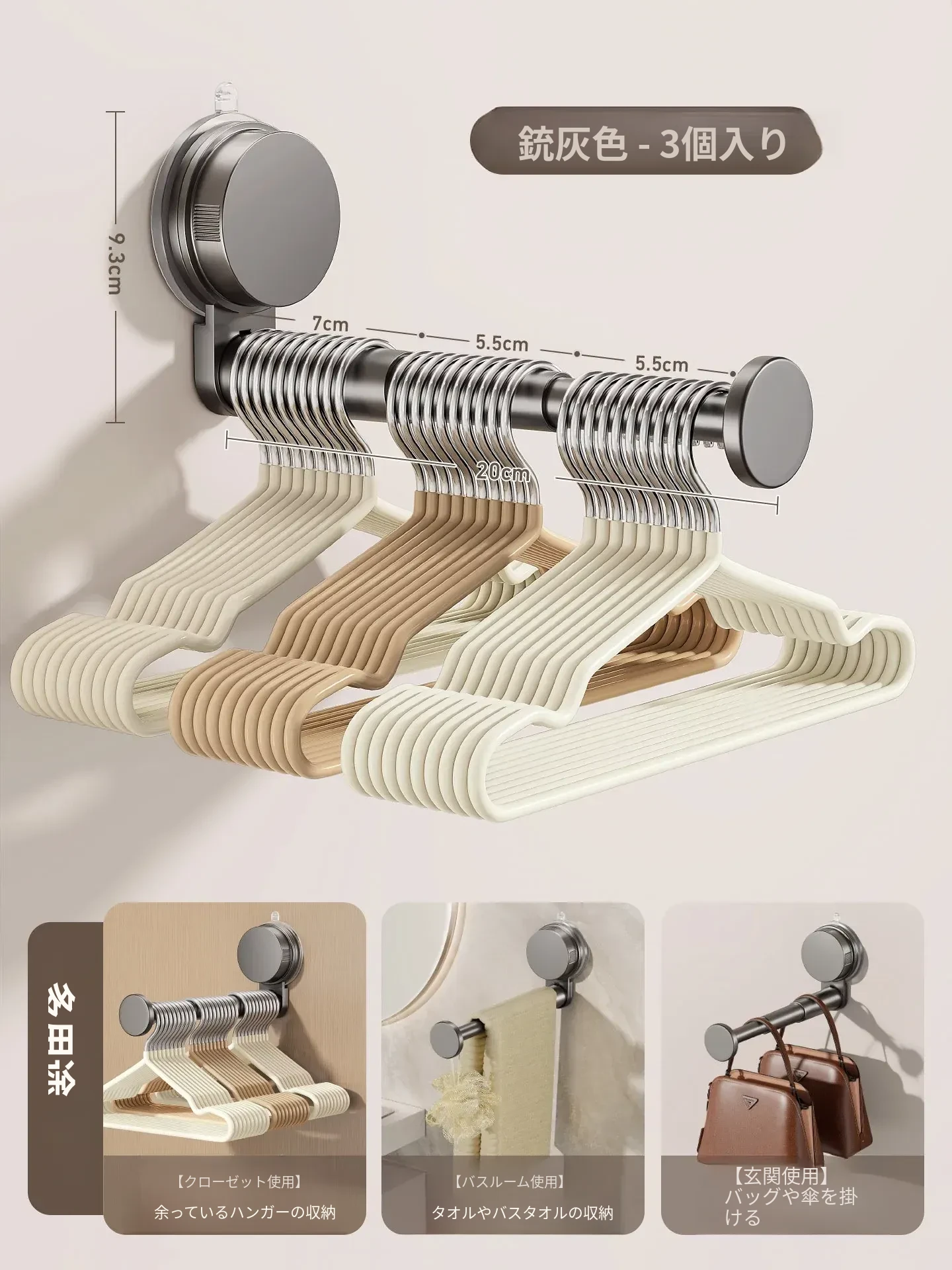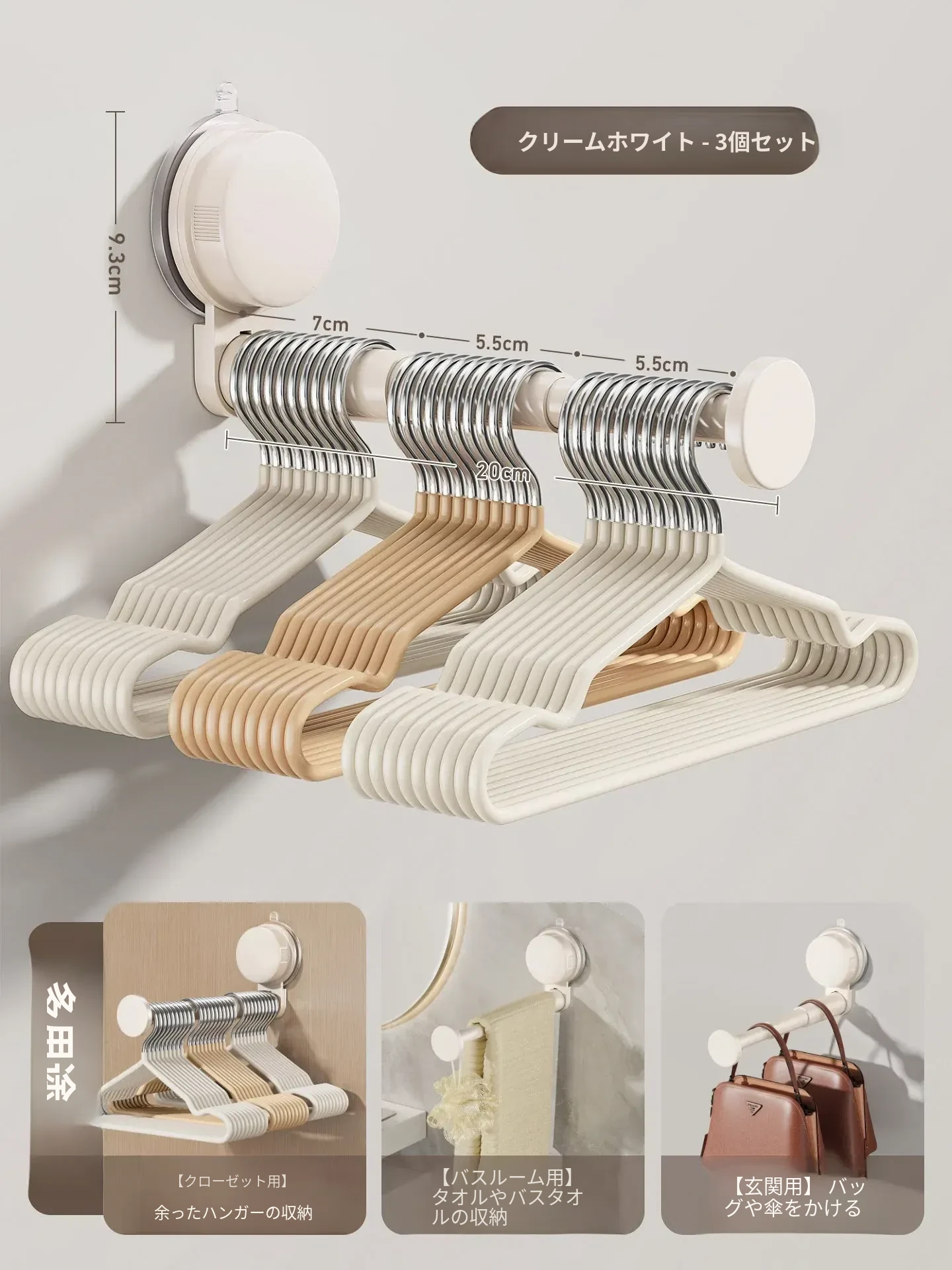 3個❤クリームホワイト❤伸縮式/大容量