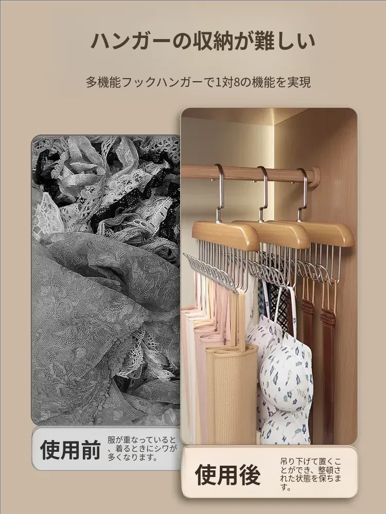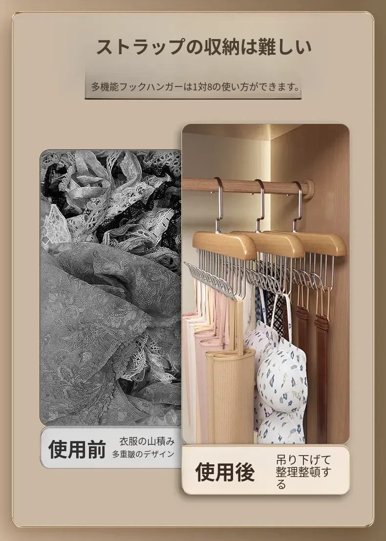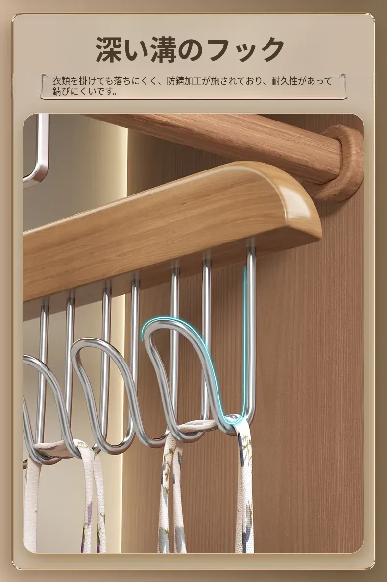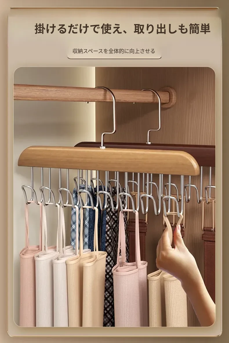 木製ハンガー・波形フック付き!ブラジャーやキャミソールもおしゃれに収納できる多機能クローゼットラック。自宅や寮にぴったり!整理整頓でスペースを有効活用しましょう!