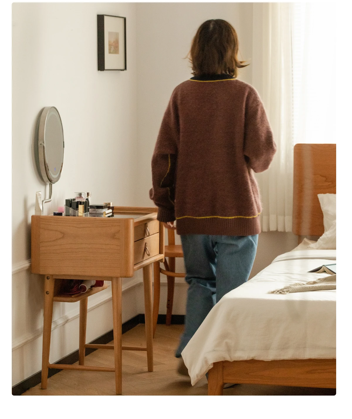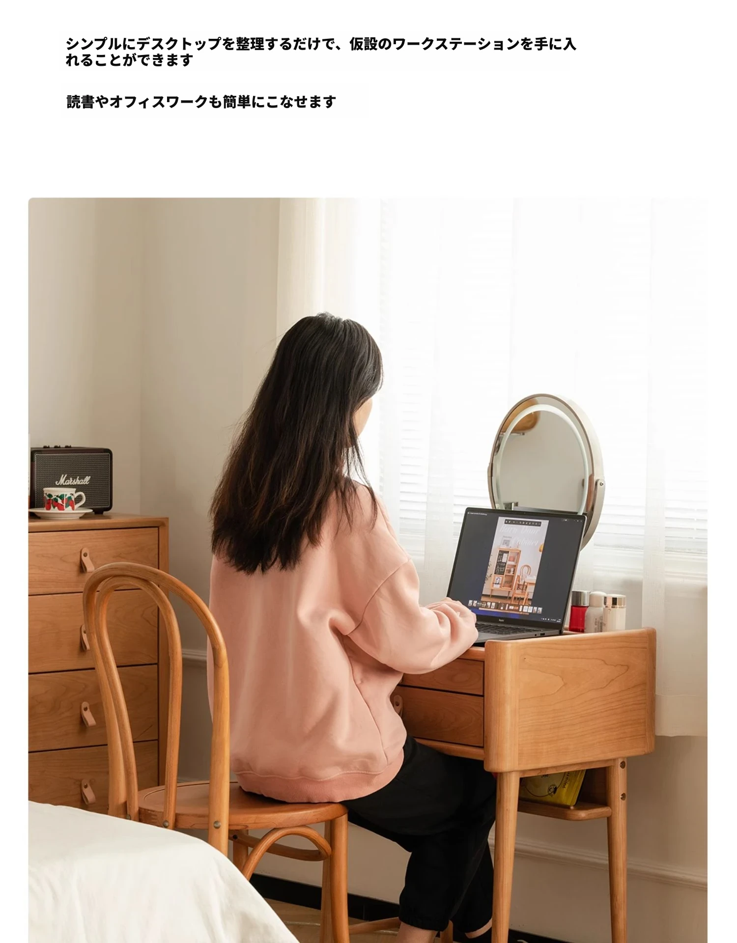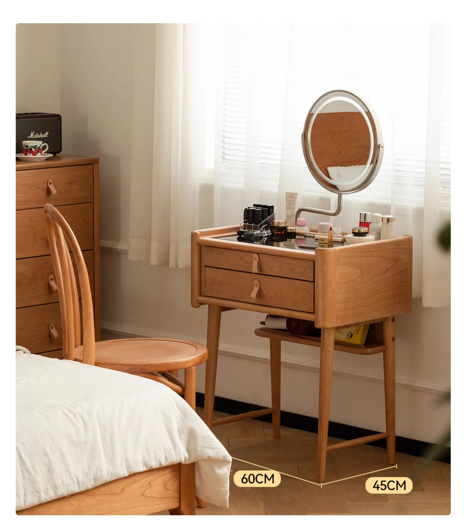 北欧風チェリーウッドのミニドレッサー - コンパクトでも魅力たっぷりのデザイン家具!