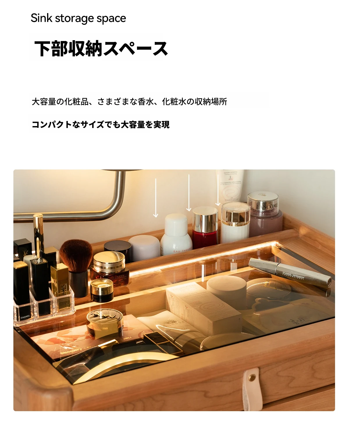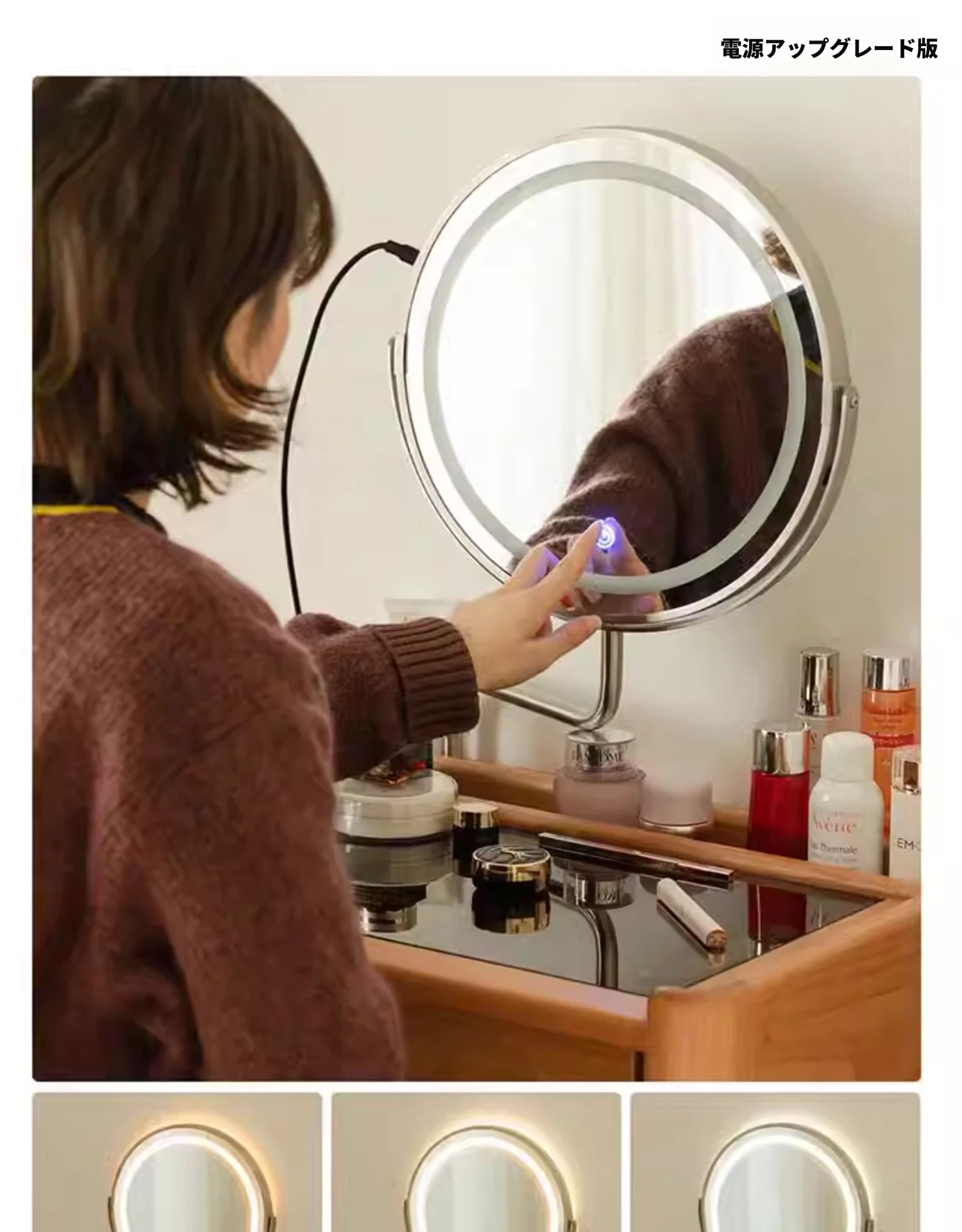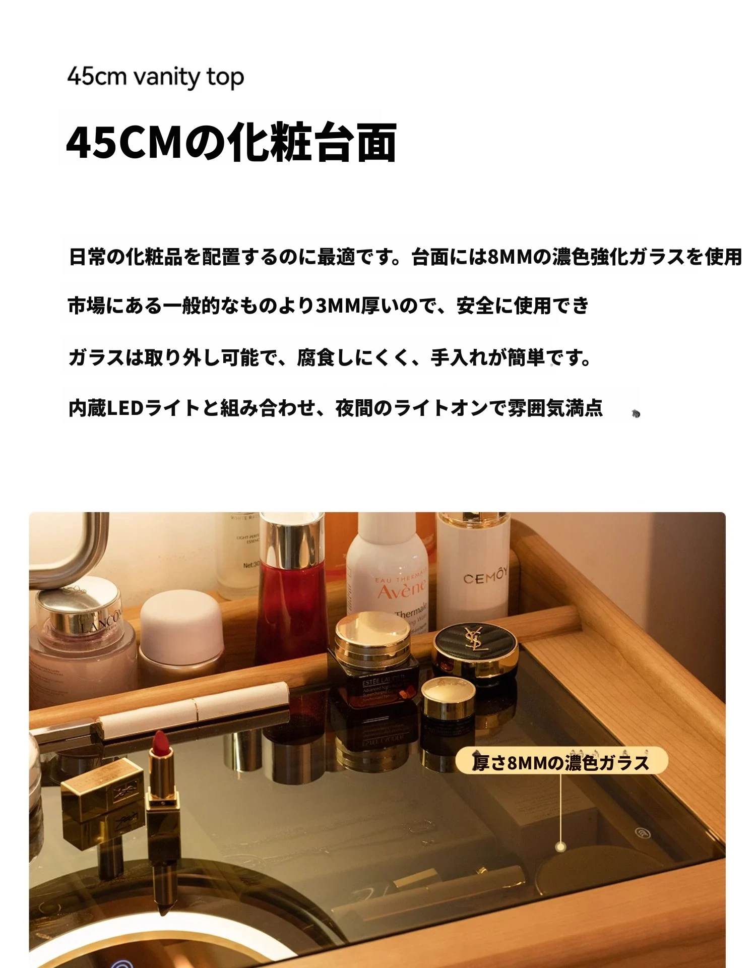 ドレッサー(LEDメイクミラー付き)【チェリーウッド】