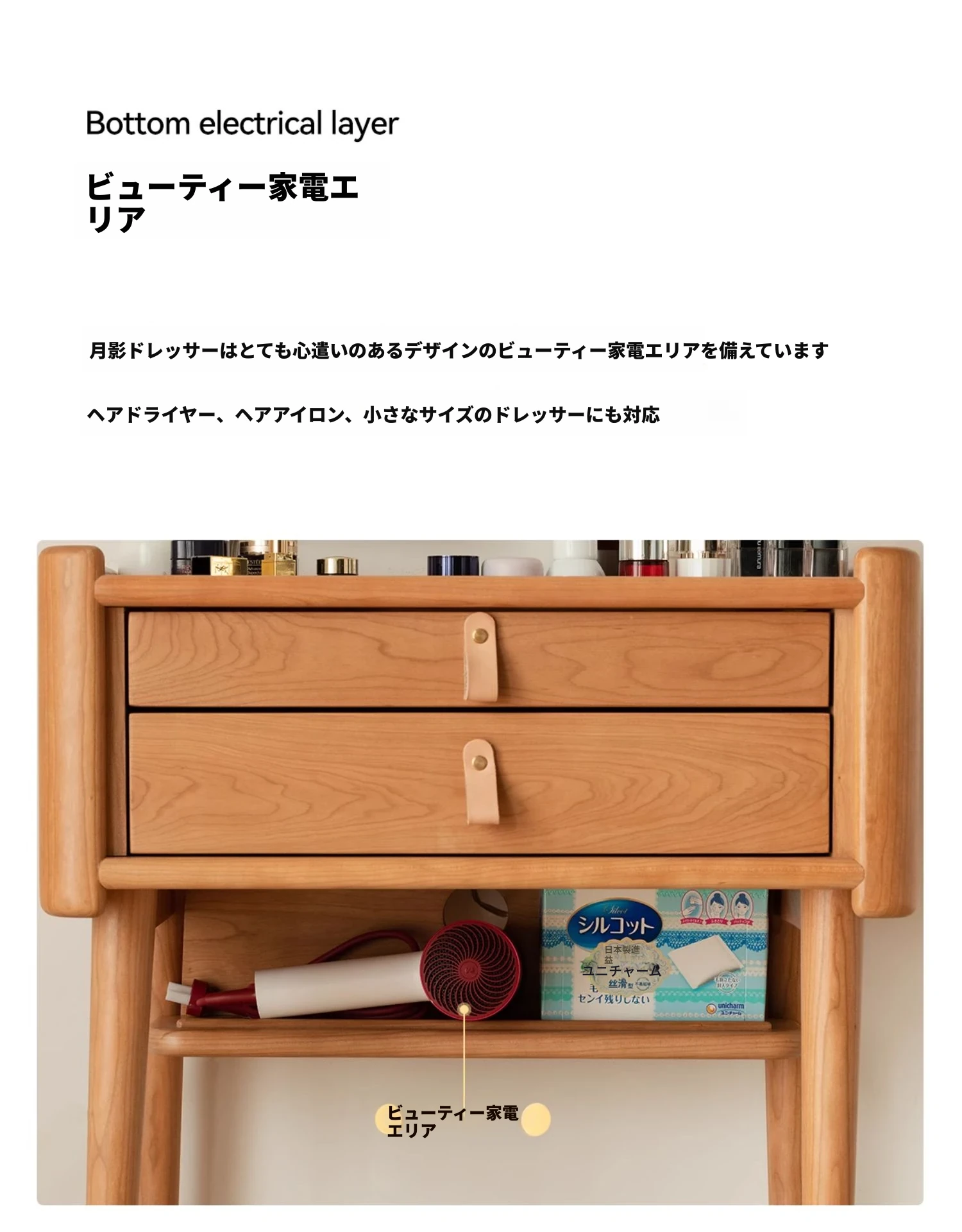 月影ドレッサー【チェリーウッド】