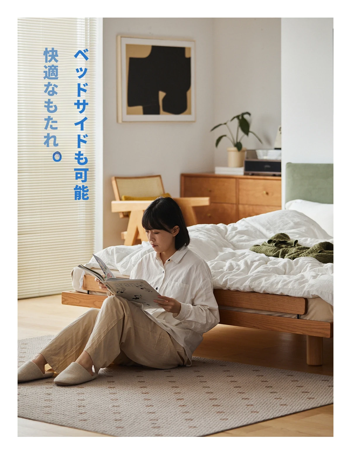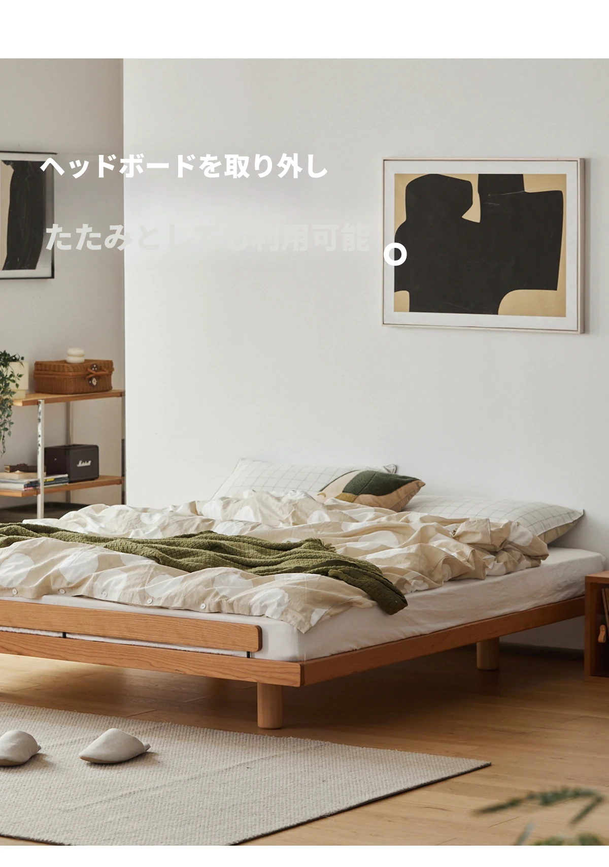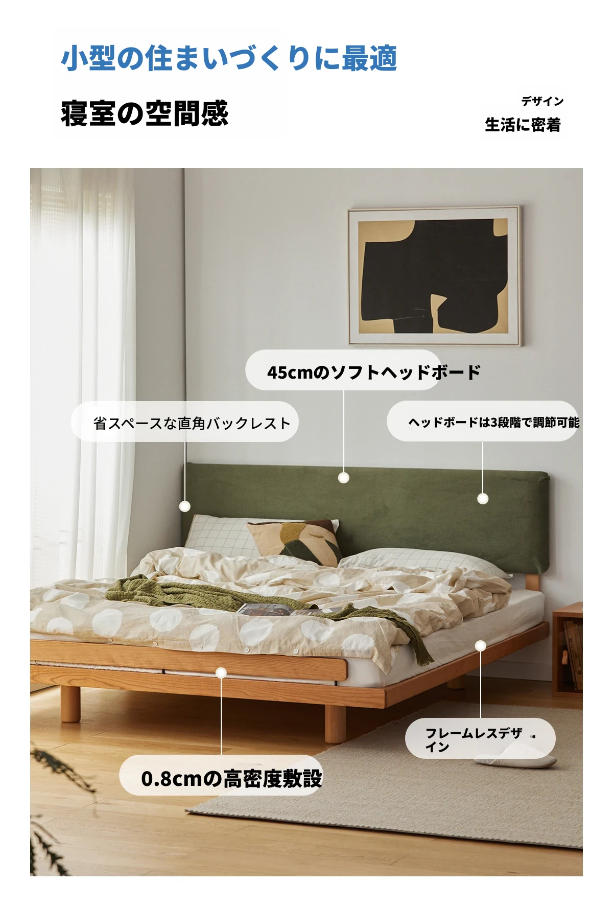 北欧風デザイン|贅沢なソフトタッチの主寝室用ダブルベッド|高品質な天然木材使用