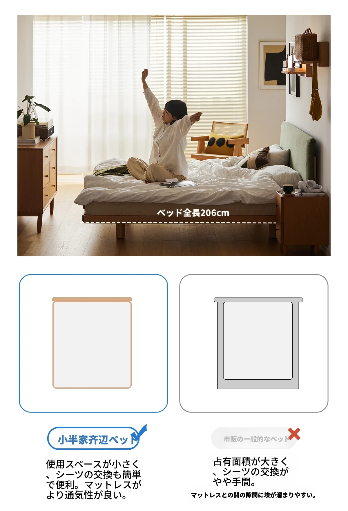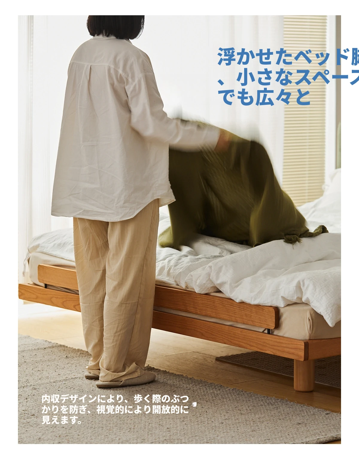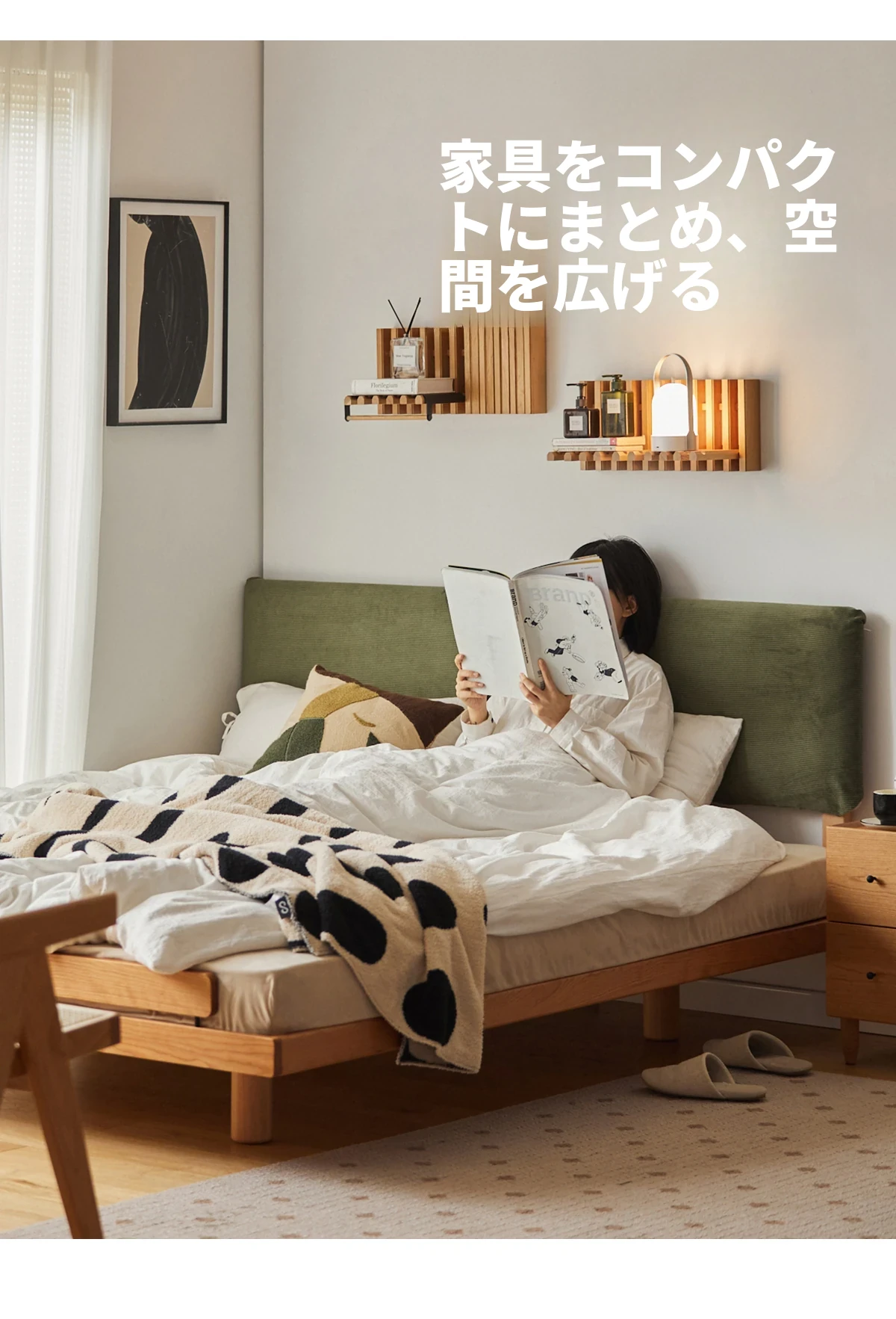 北欧風デザイン|贅沢なソフトタッチの主寝室用ダブルベッド|高品質な天然木材使用