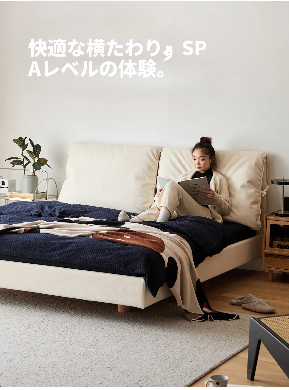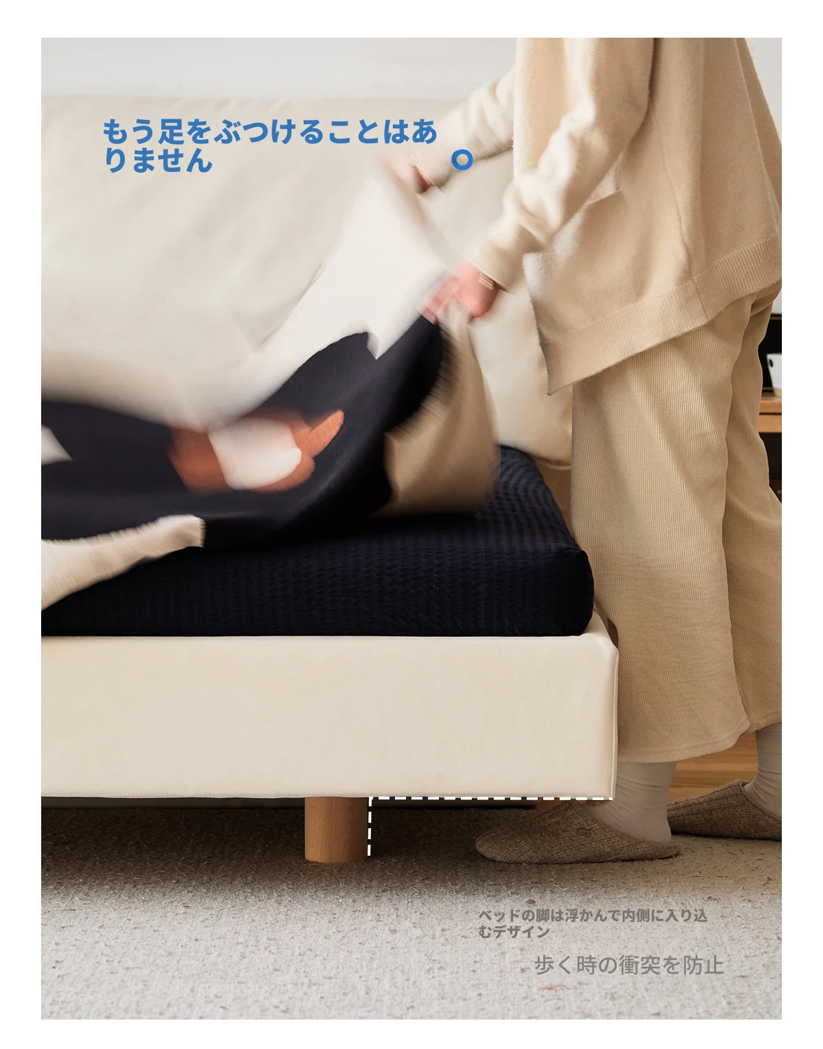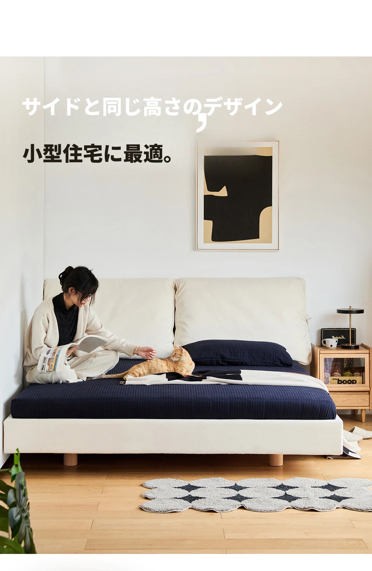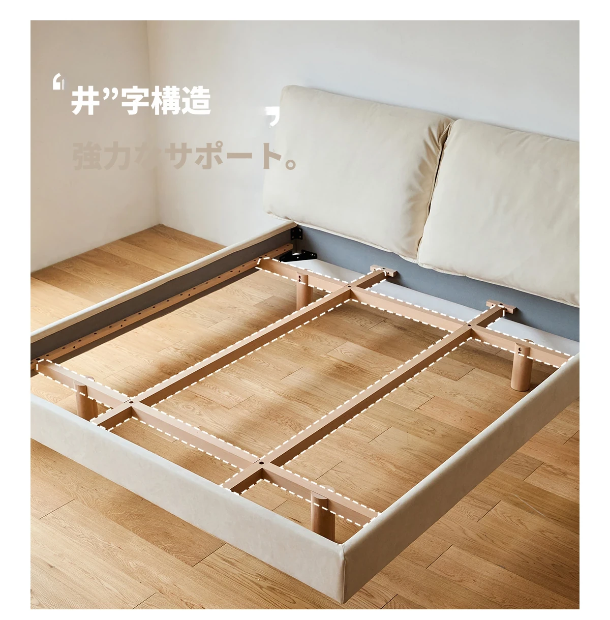 北欧風ミニマルデザイン半端ベッド - 浮遊感を演出する二人用天然木製家具、スタイリッシュで快適な毎日へ