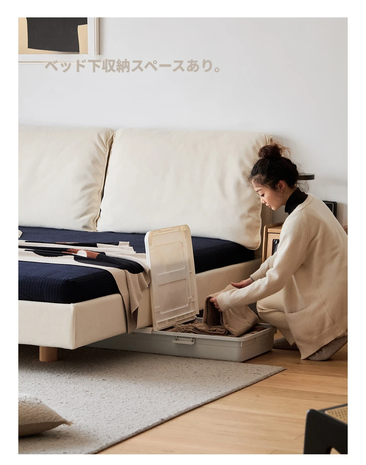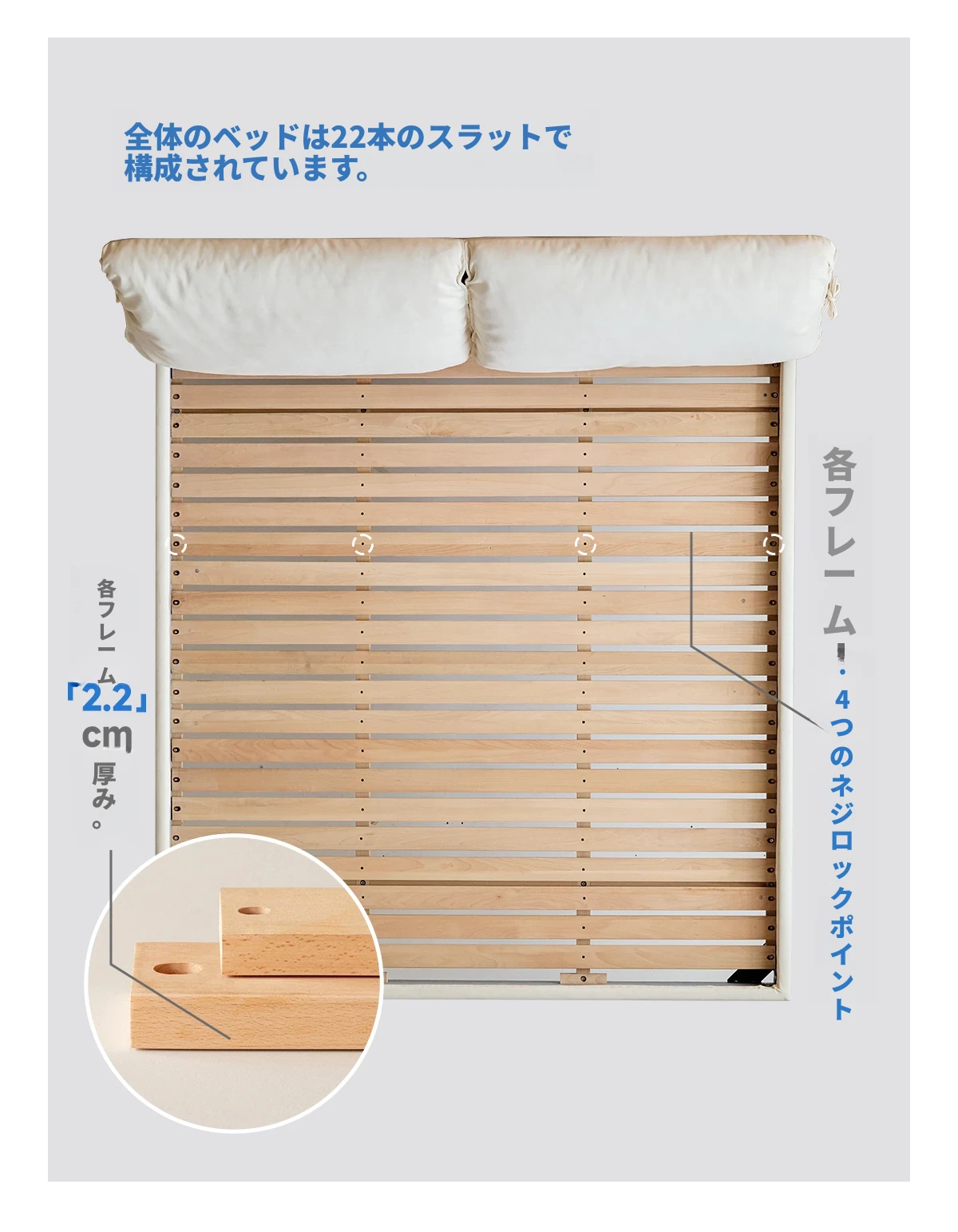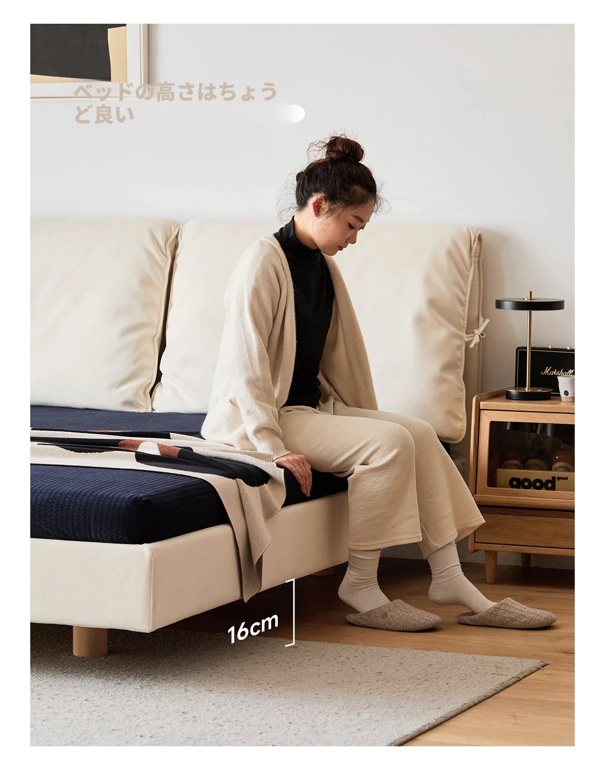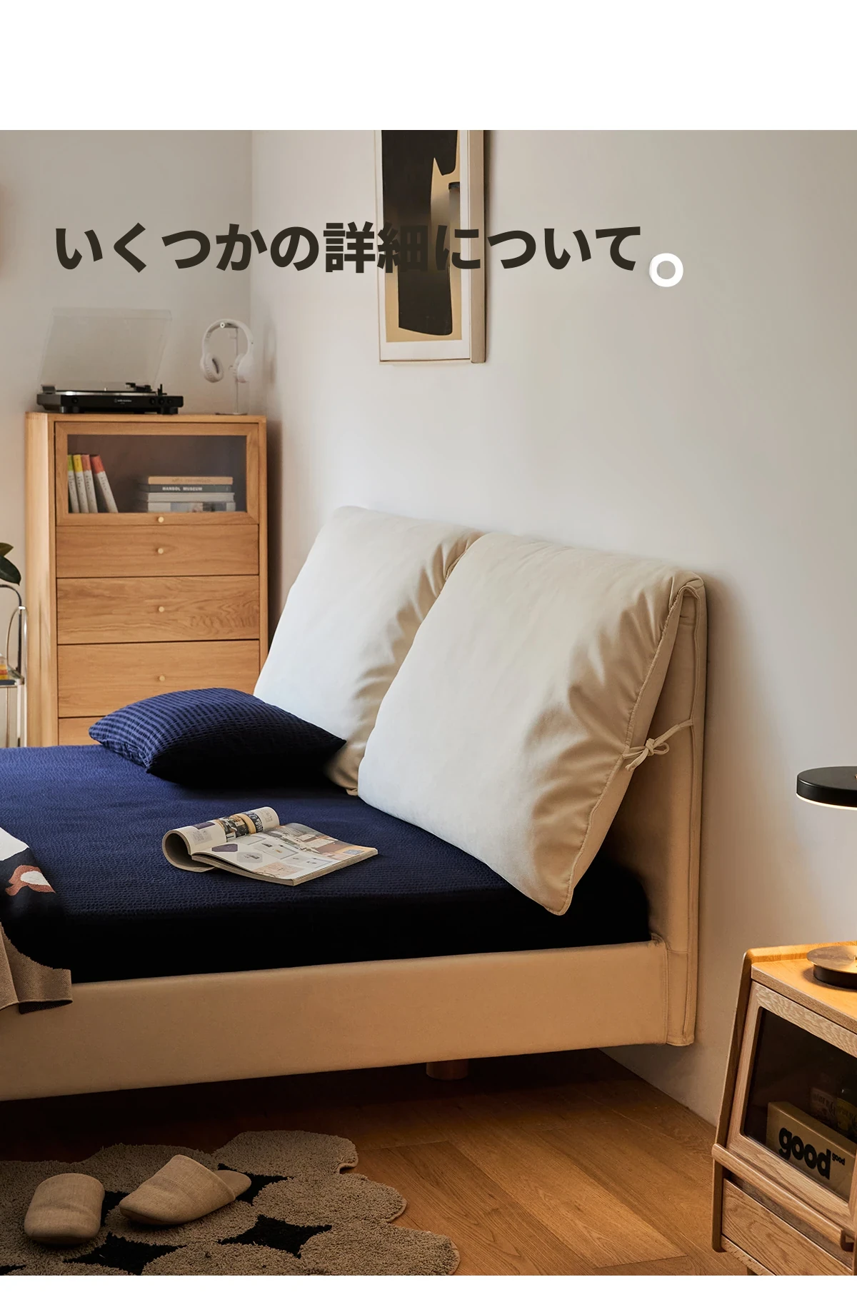 北欧風ミニマルデザイン半端ベッド - 浮遊感を演出する二人用天然木製家具、スタイリッシュで快適な毎日へ