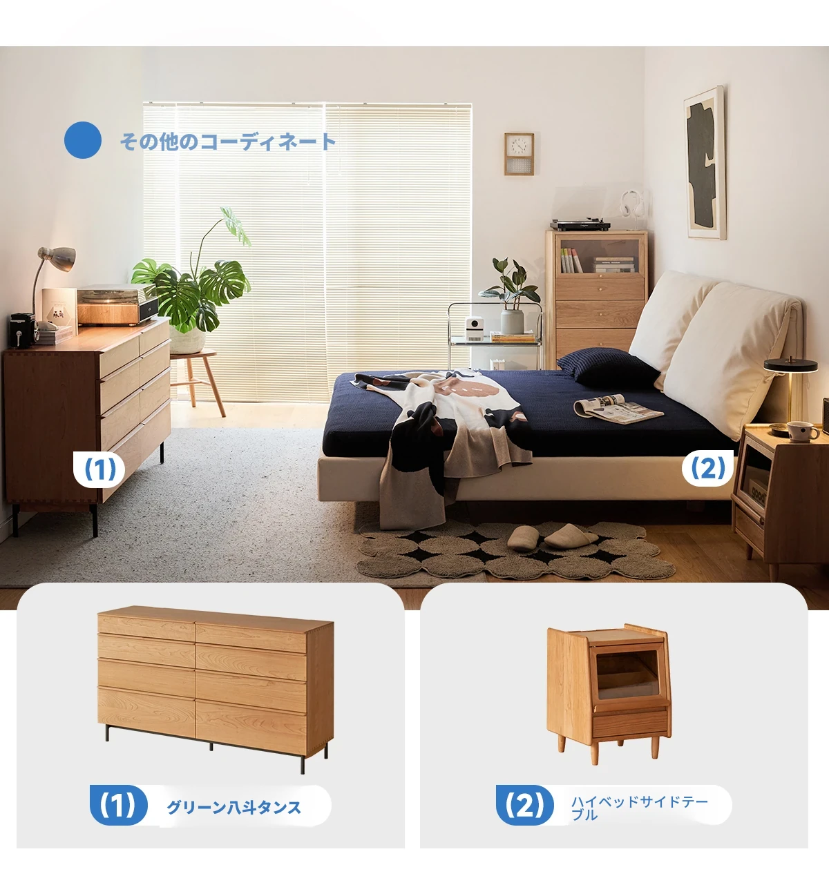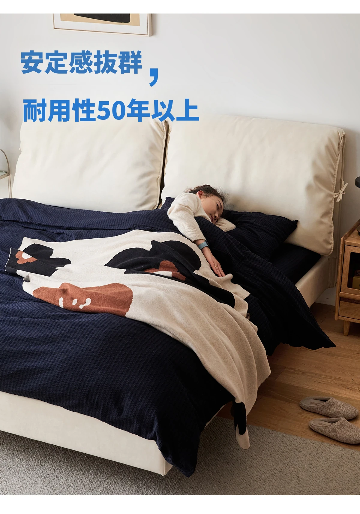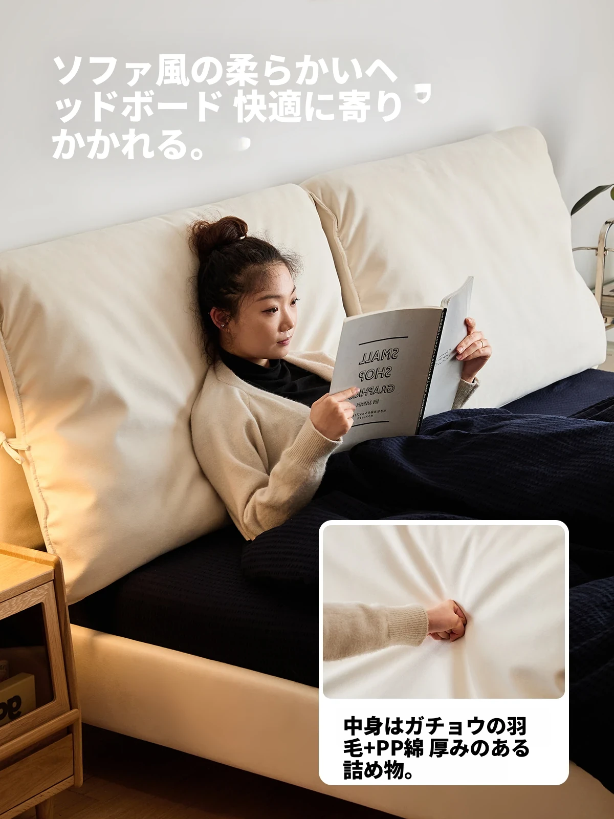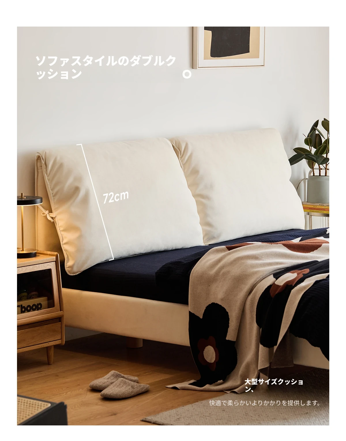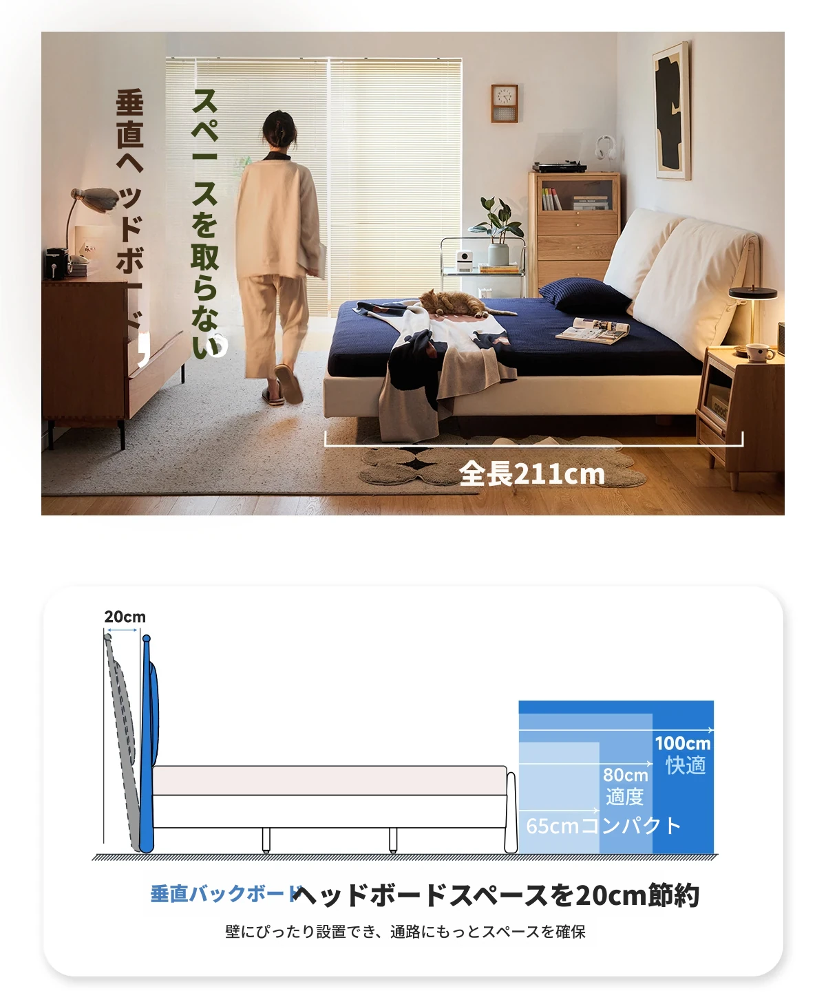 北欧風ミニマルデザイン半端ベッド - 浮遊感を演出する二人用天然木製家具、スタイリッシュで快適な毎日へ