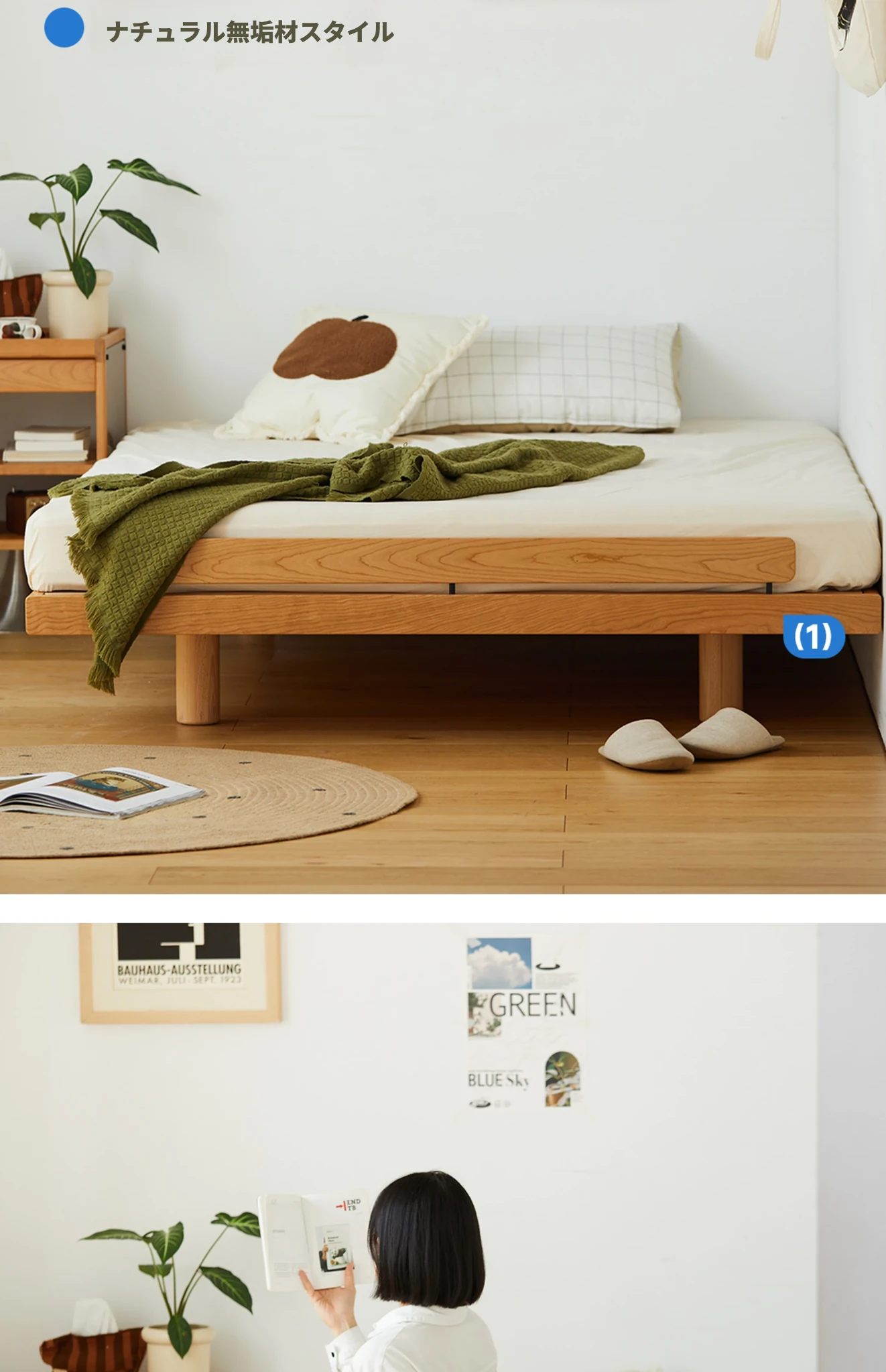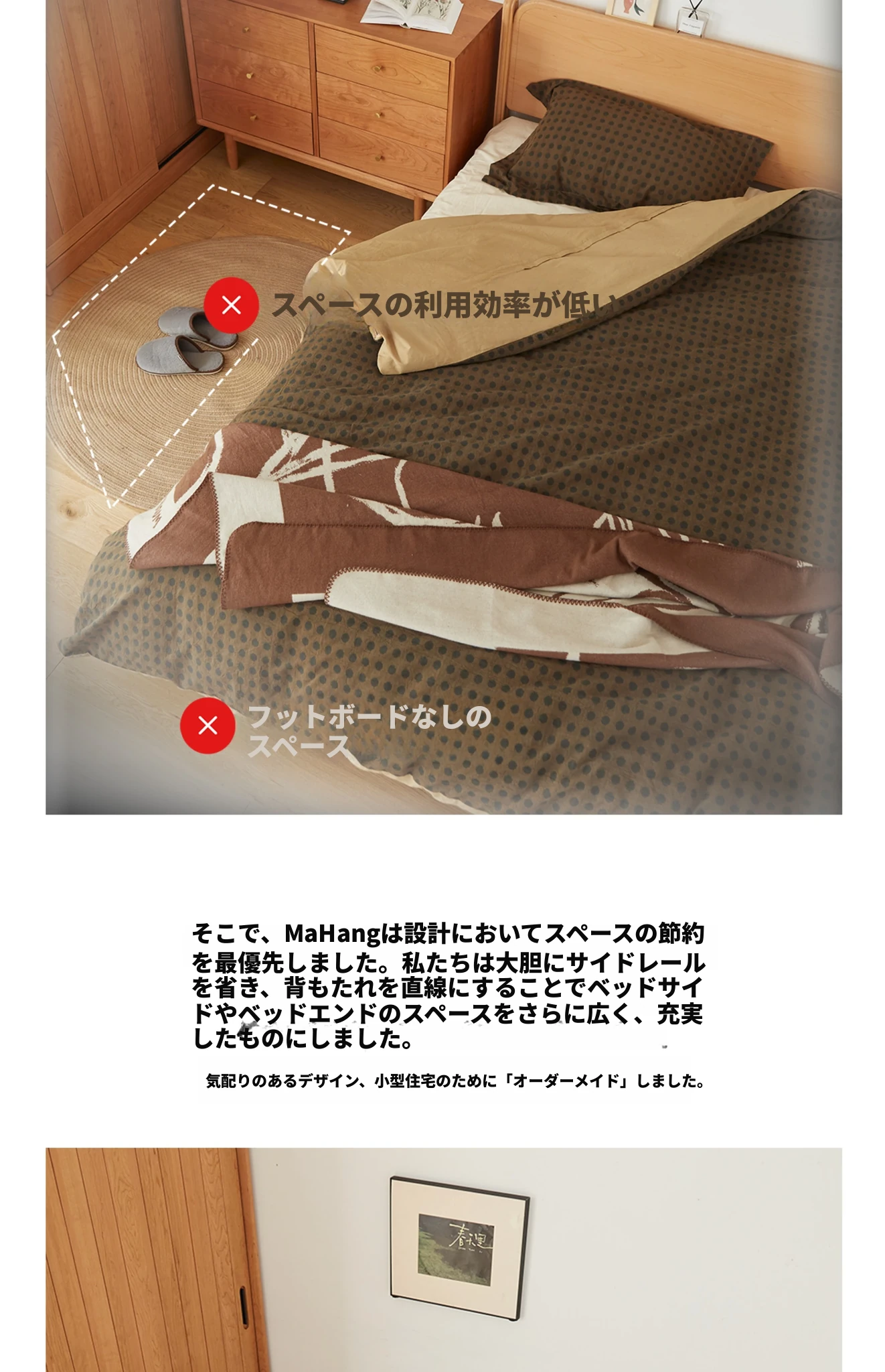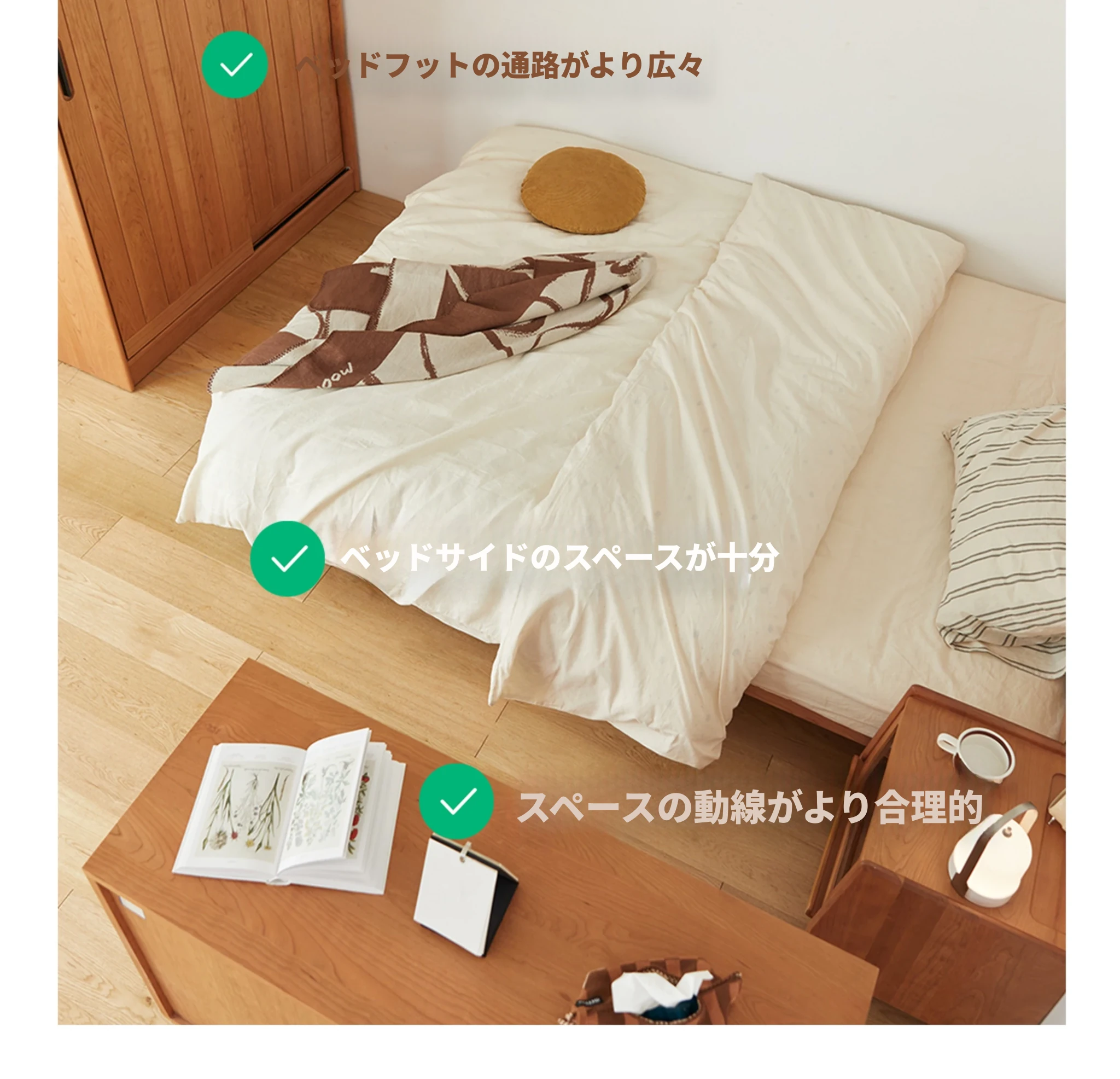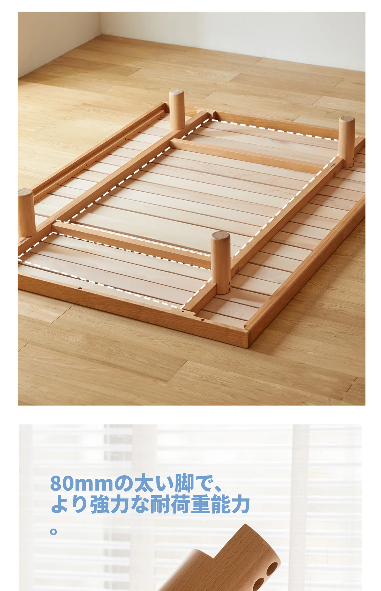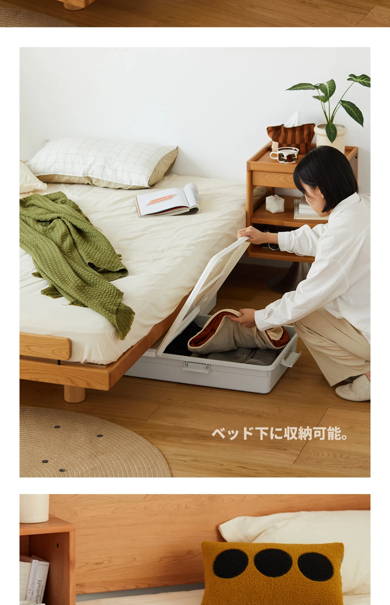 北欧風デザイン!小型タタミ付き無垢材ダブルベッド