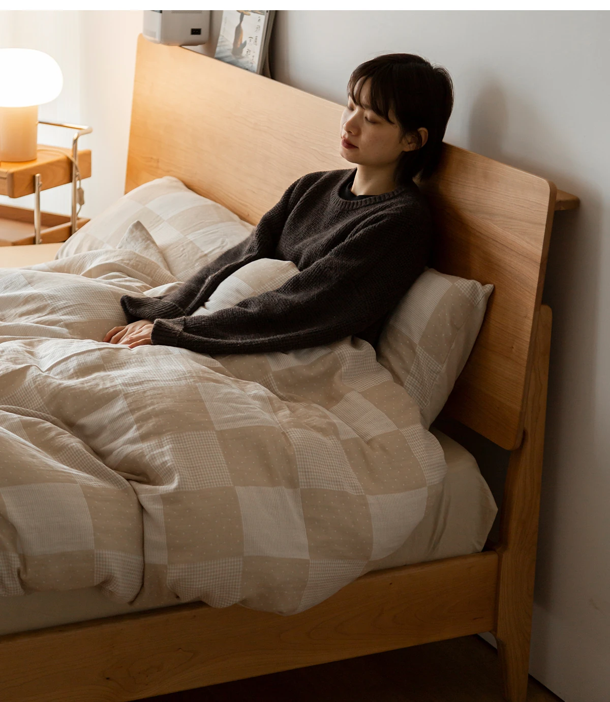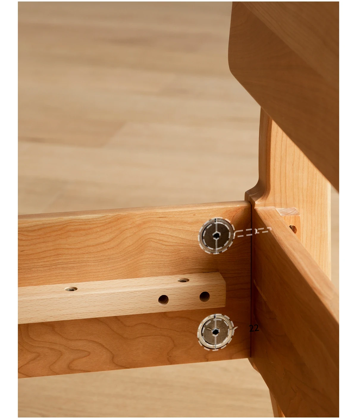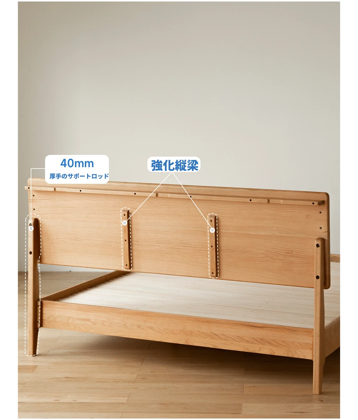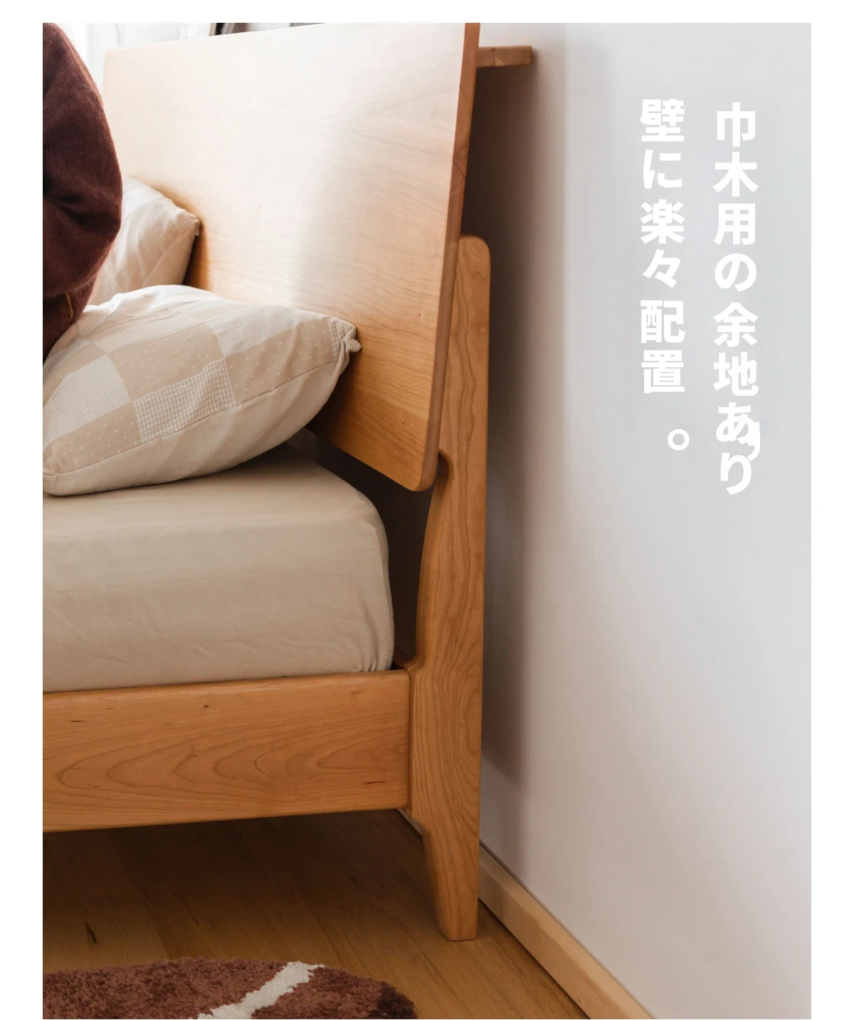北欧スタイルの小半チェリーウッド製1.5mシングルベッド - 自然の温もりを感じる高品質家具