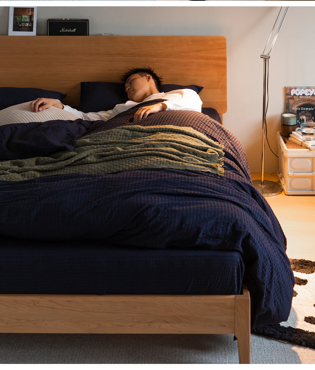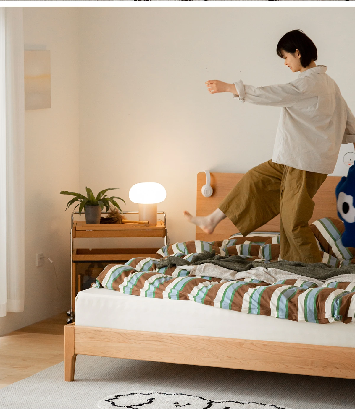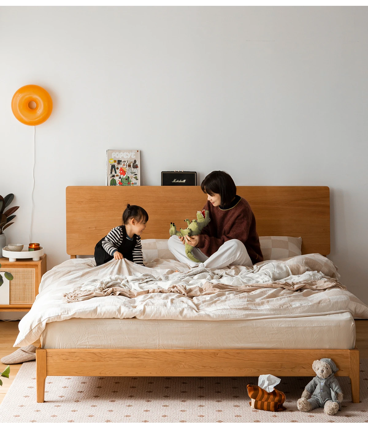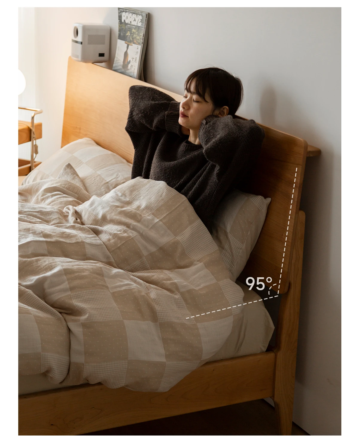 北欧スタイルの小半チェリーウッド製1.5mシングルベッド - 自然の温もりを感じる高品質家具
