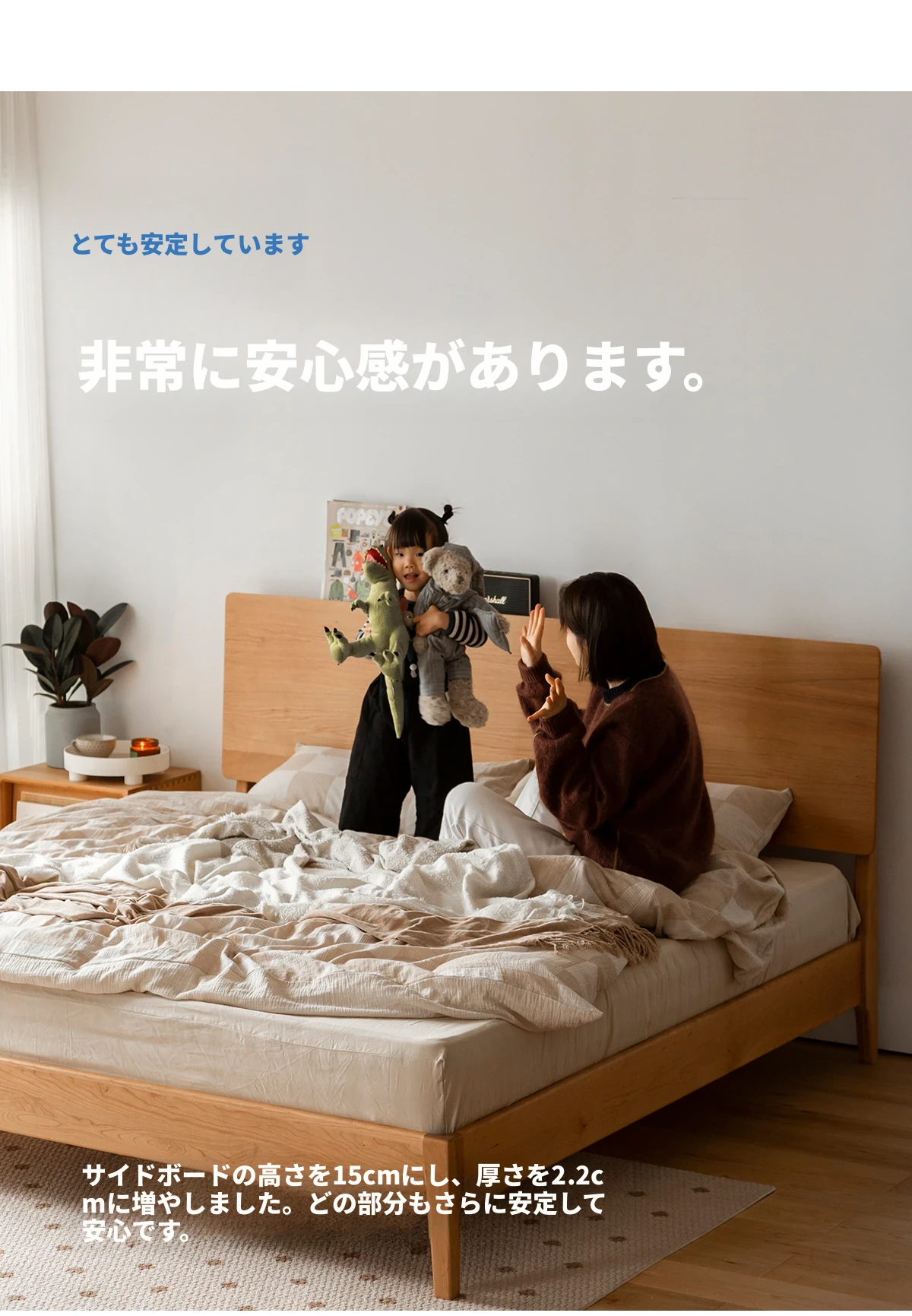 チェリーウッドシングルベッド+アンランマットレス(ベーシックタイプ)500円割引済み