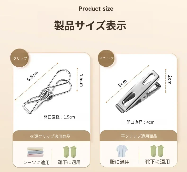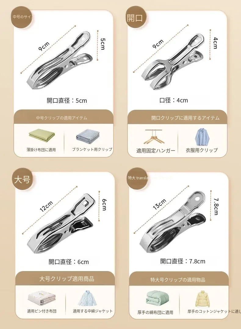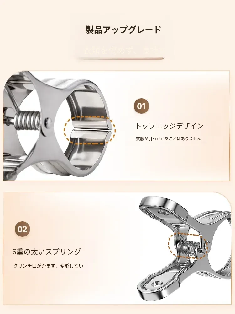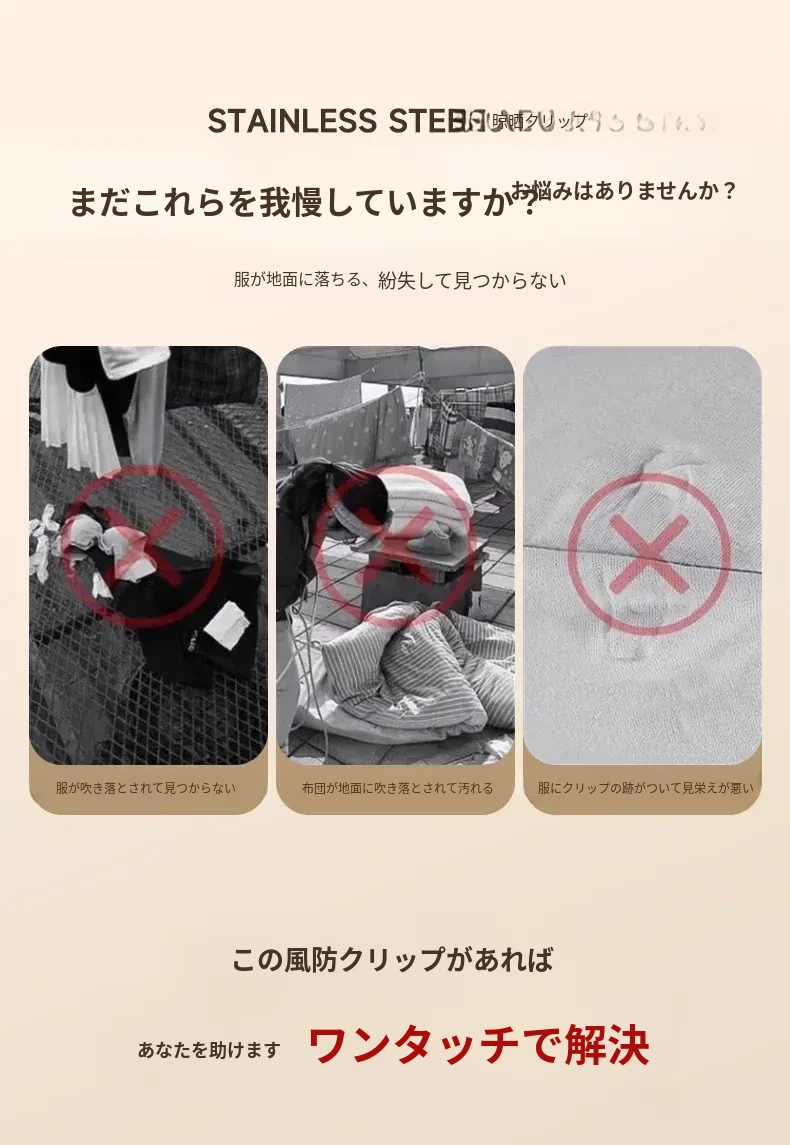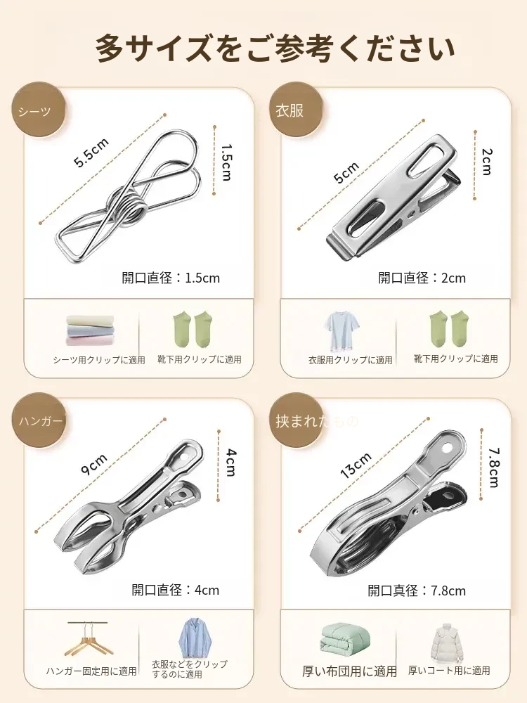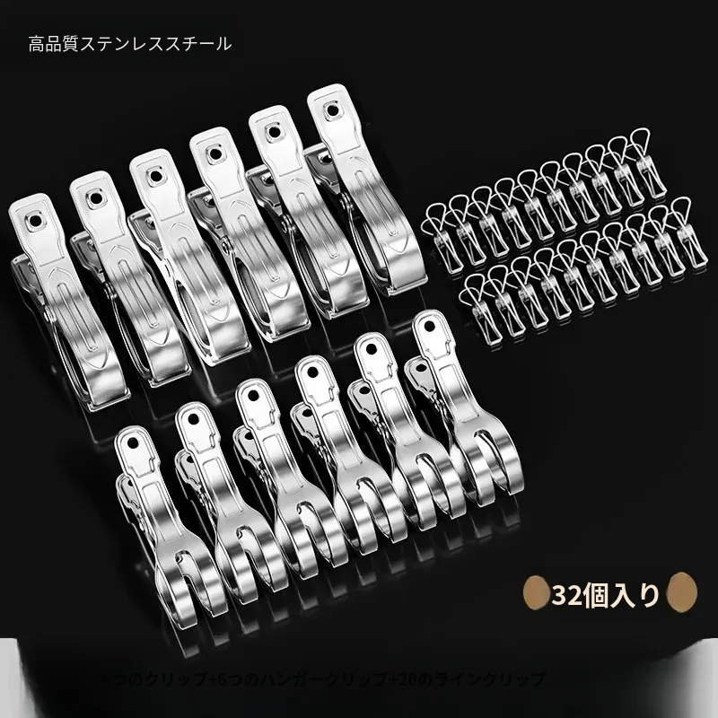 大容量ステンレス製無痕クリップ!風に強い衣類干し用クリップ、布団や衣類をしっかり固定。家庭用の必需品、洗濯物を楽に干せる便利グッズ!