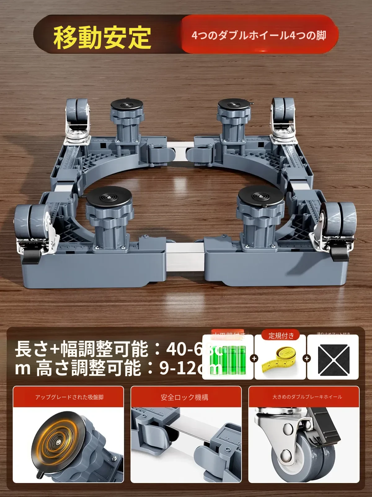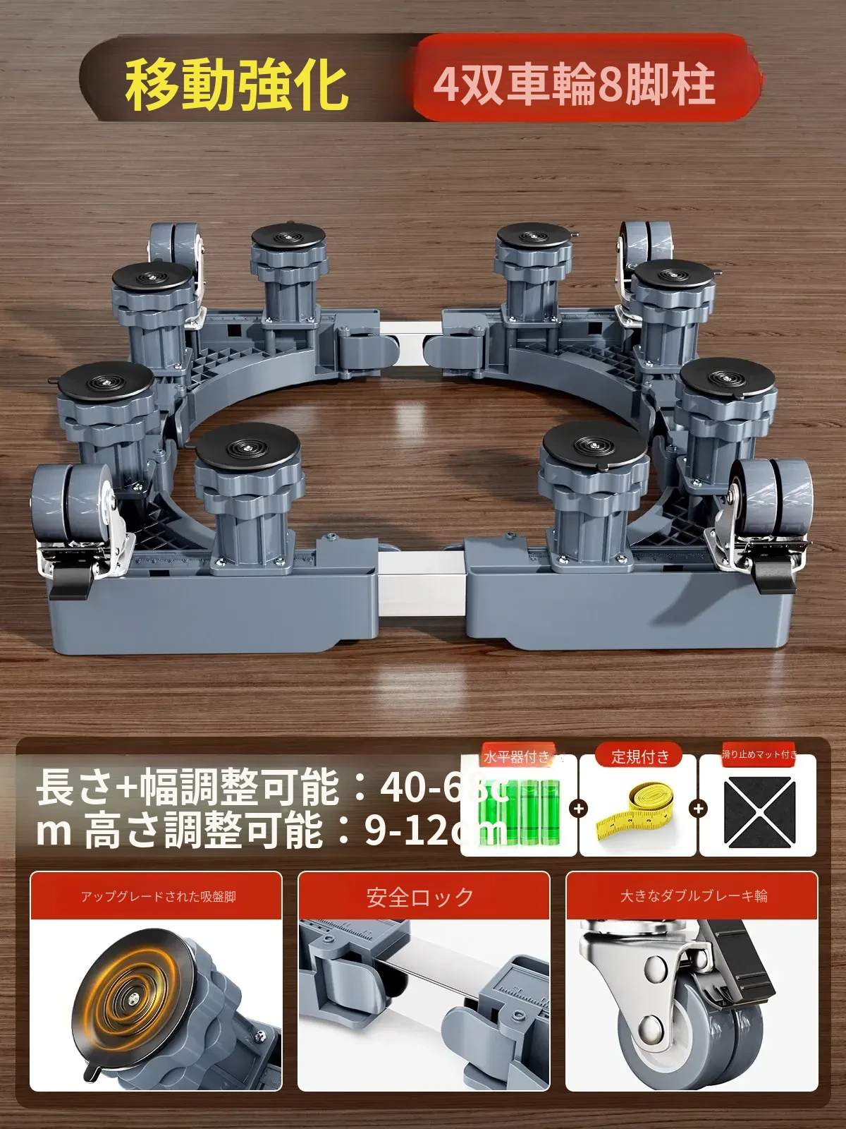 【モバイル安定タイプ】4ダブルホイールダブルブレーキ+8脚柱+ダブル防震ロック