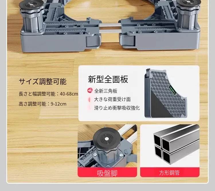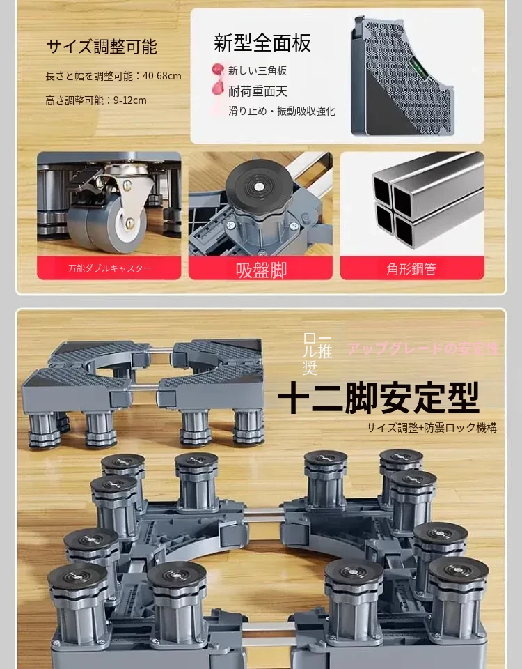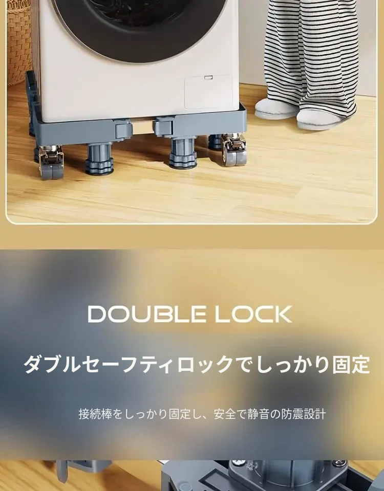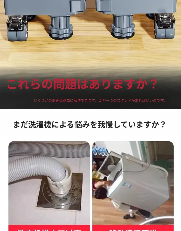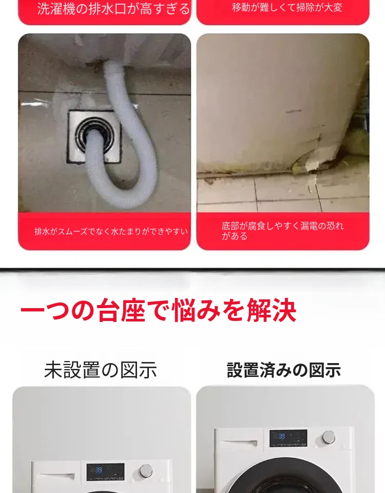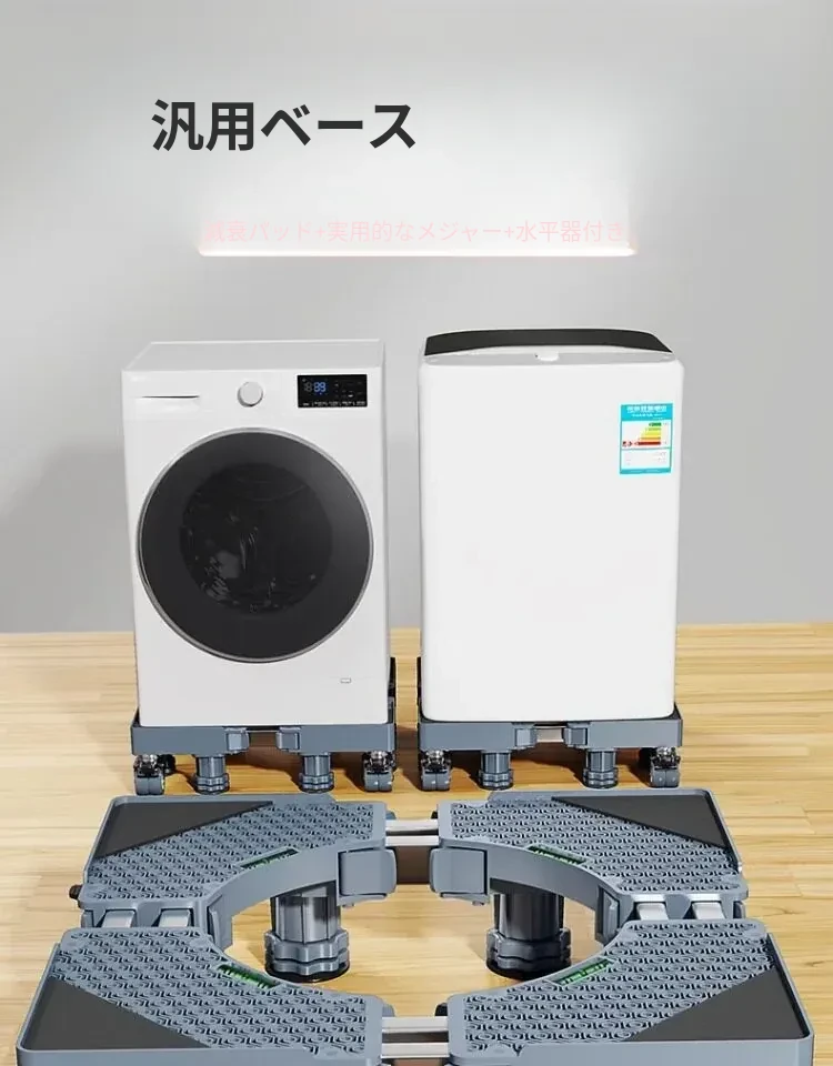 洗濯乾燥セット用洗濯機スタンド - 防水・防震の高耐久スチール製、移動便利なキャスター付き!洗濯機をしっかり支え、スペースを有効活用。快適な洗濯ライフをサポートします!