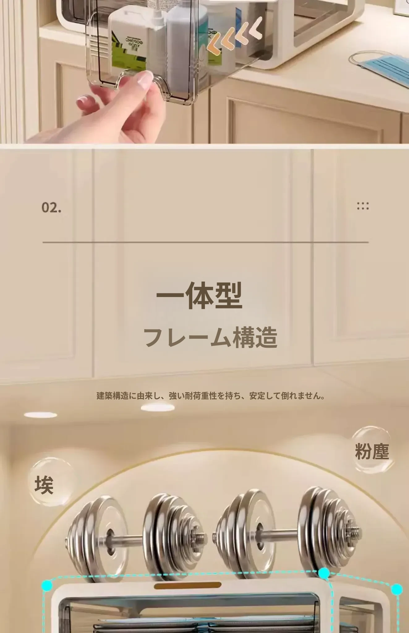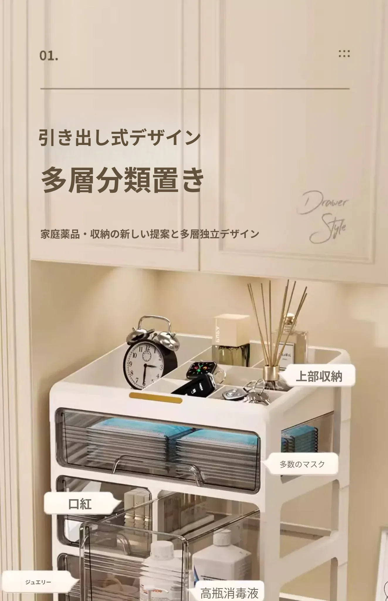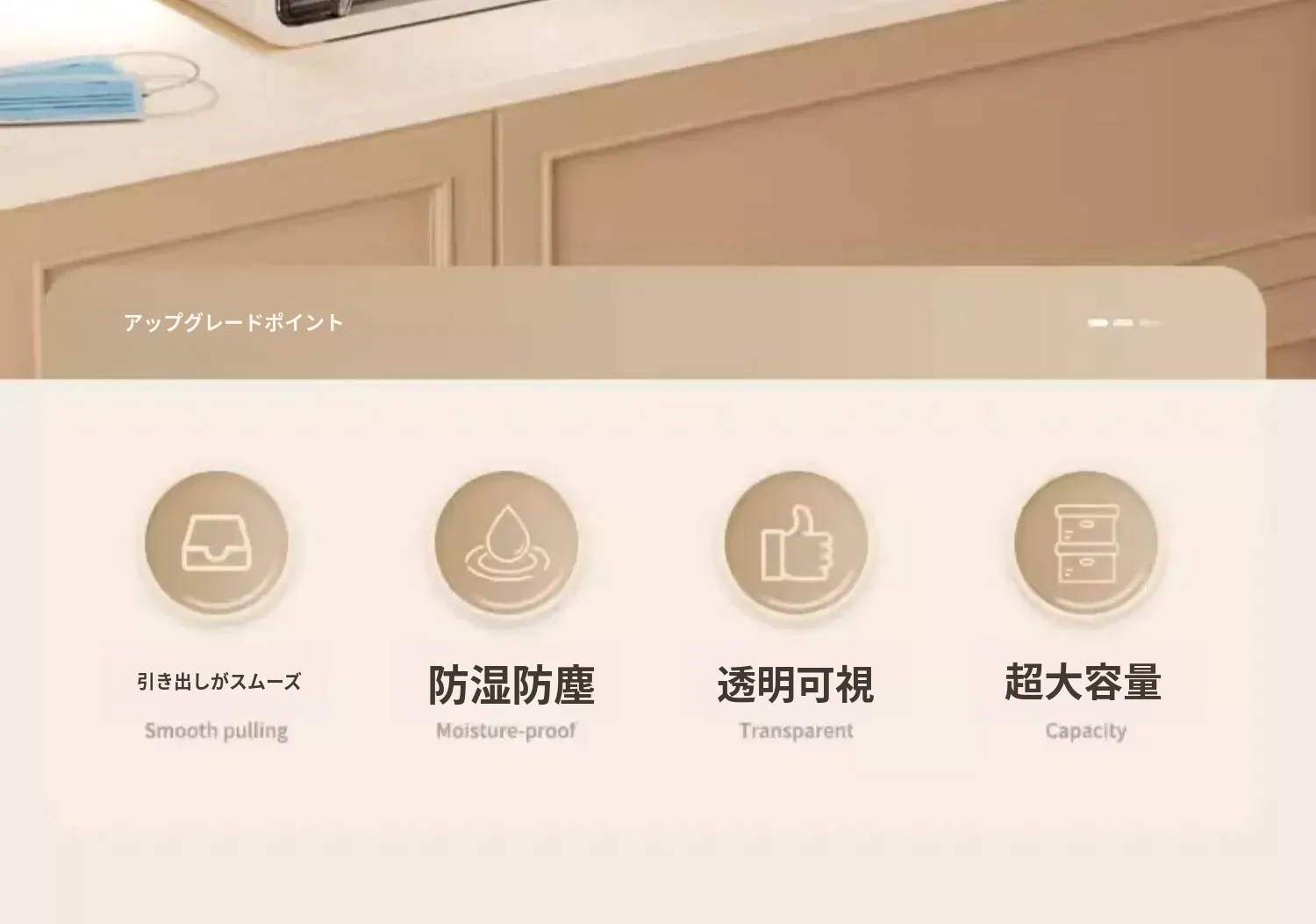 【引き出しタイプ】厚手2層+トップ収納【設置不要、引き出しスムーズ】