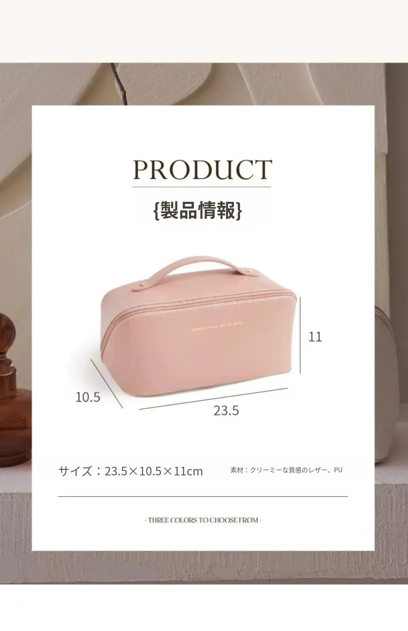 大容量旅行化粧ポーチ - ミルクアプリコットホワイト