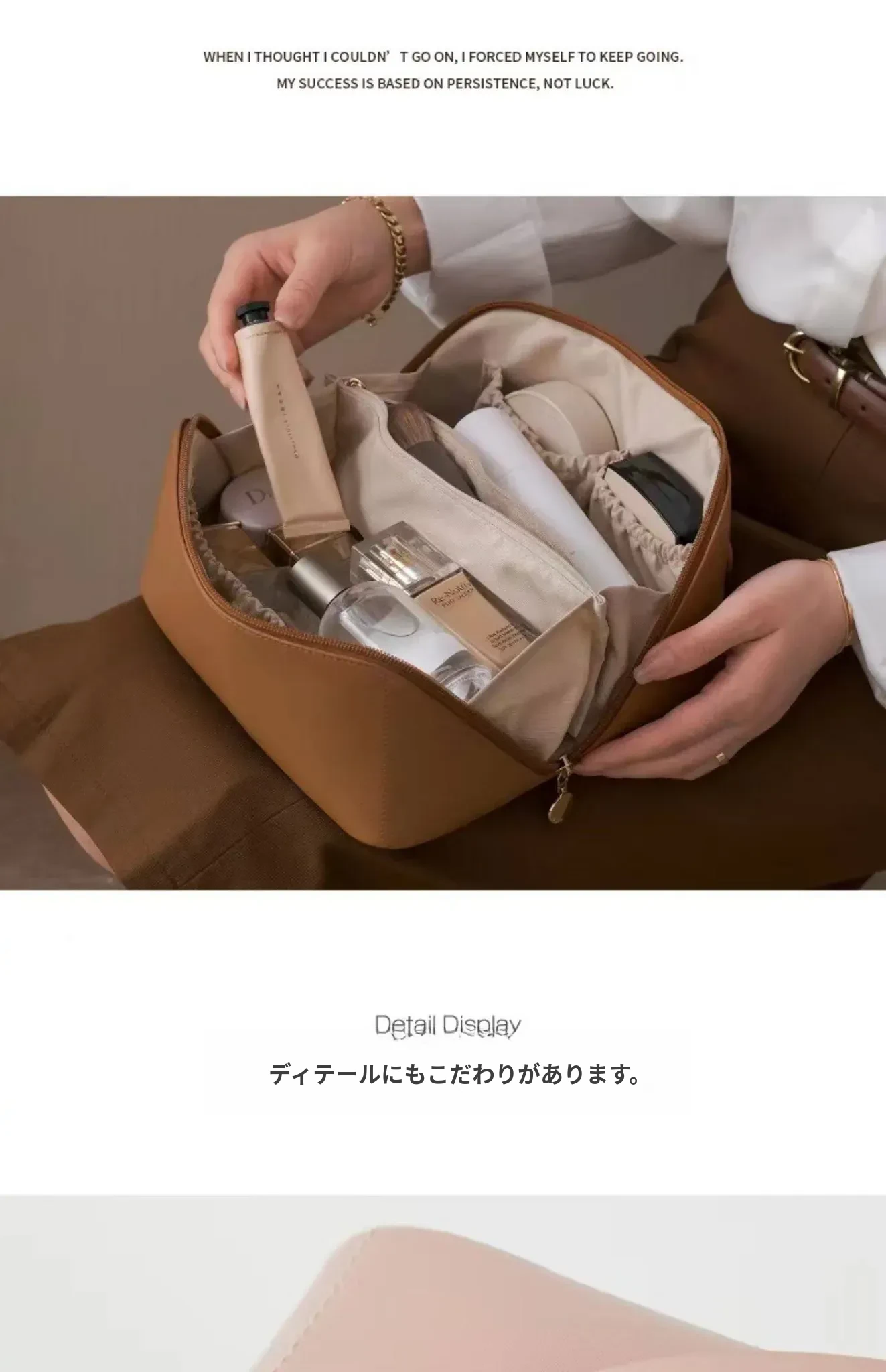大容量旅行化粧ポーチ - モカブラウン