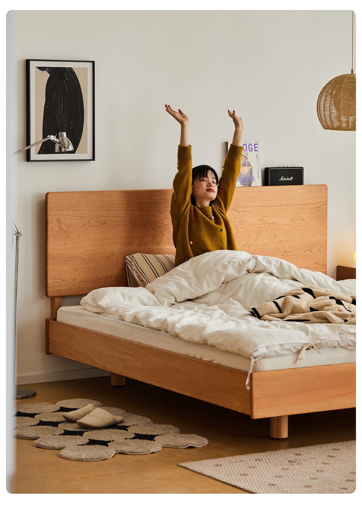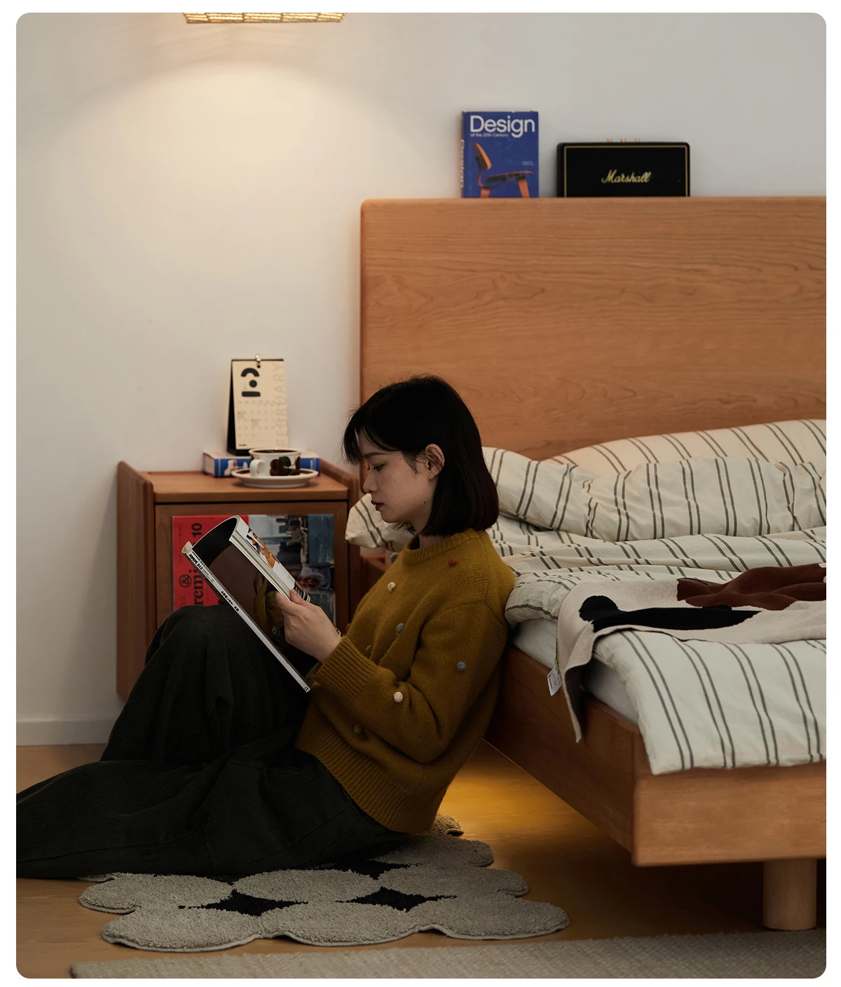 北欧風ミニマルデザイン!桜の木を使った一人暮らし用宙に浮くデザインのベッドルーム家具
