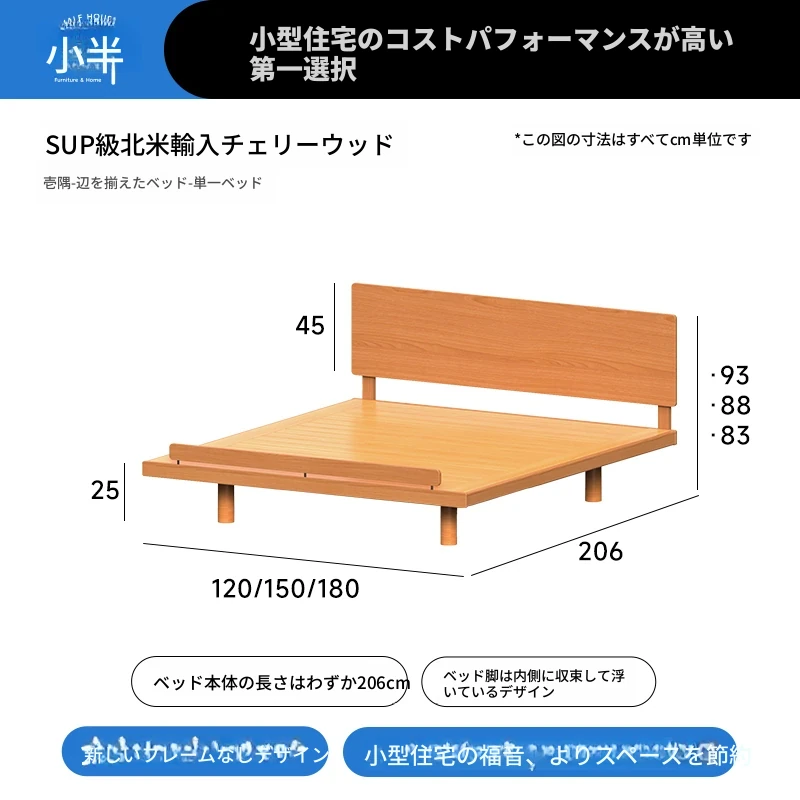 コンパクトな和風デザイン!小戸向けチェリー材使用シンプル天然木ダブルベッド(1.5m/1.8m)