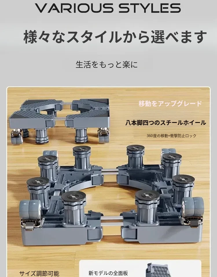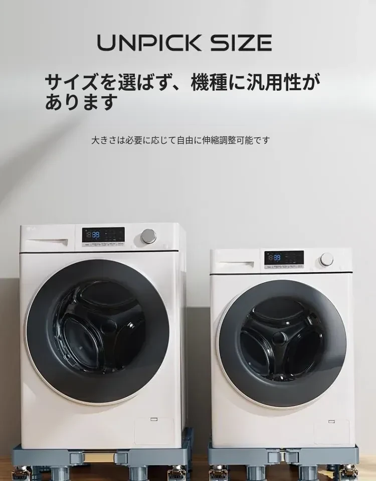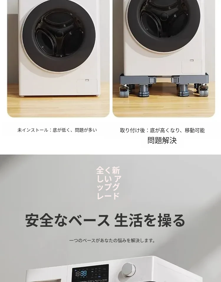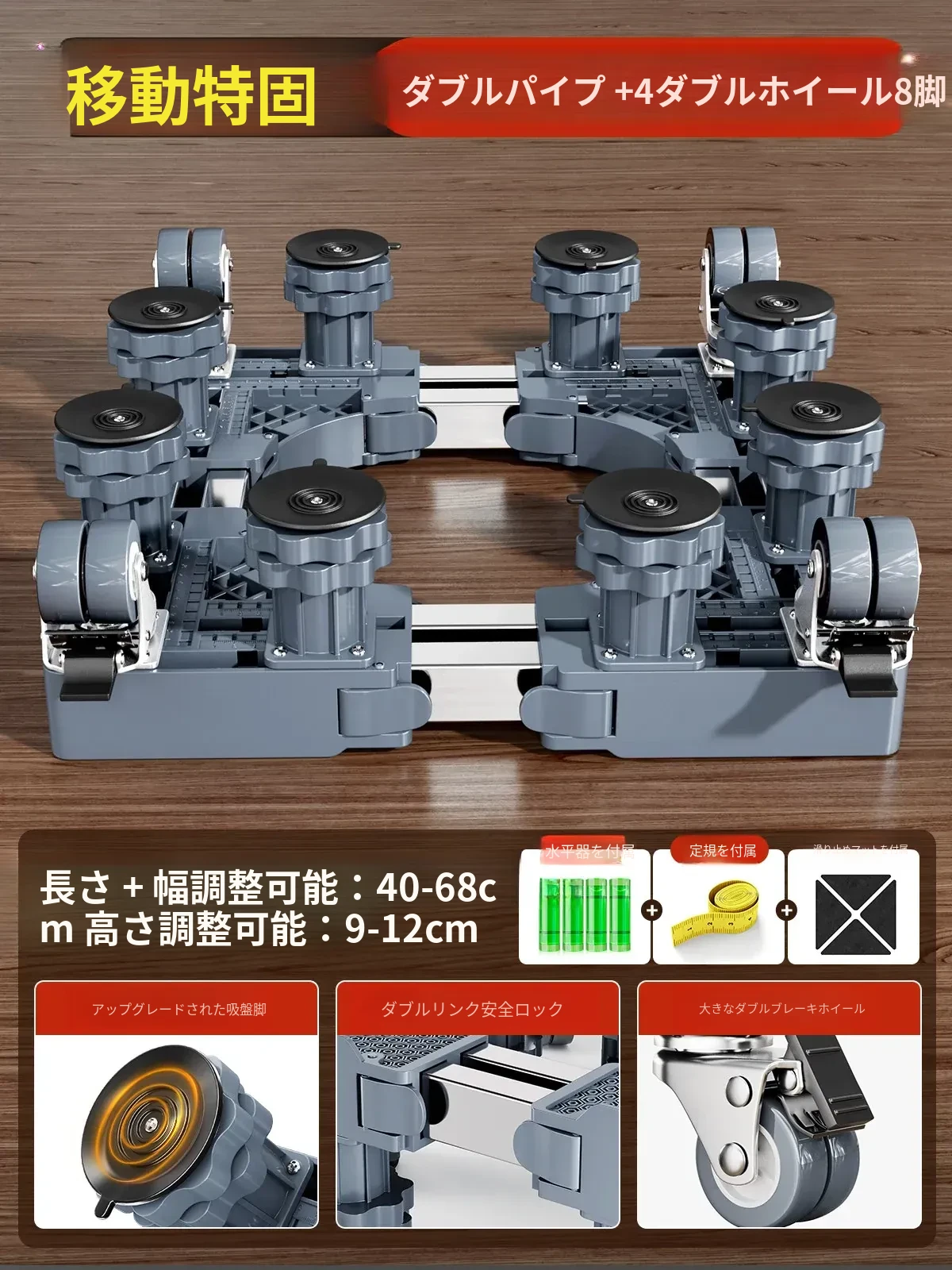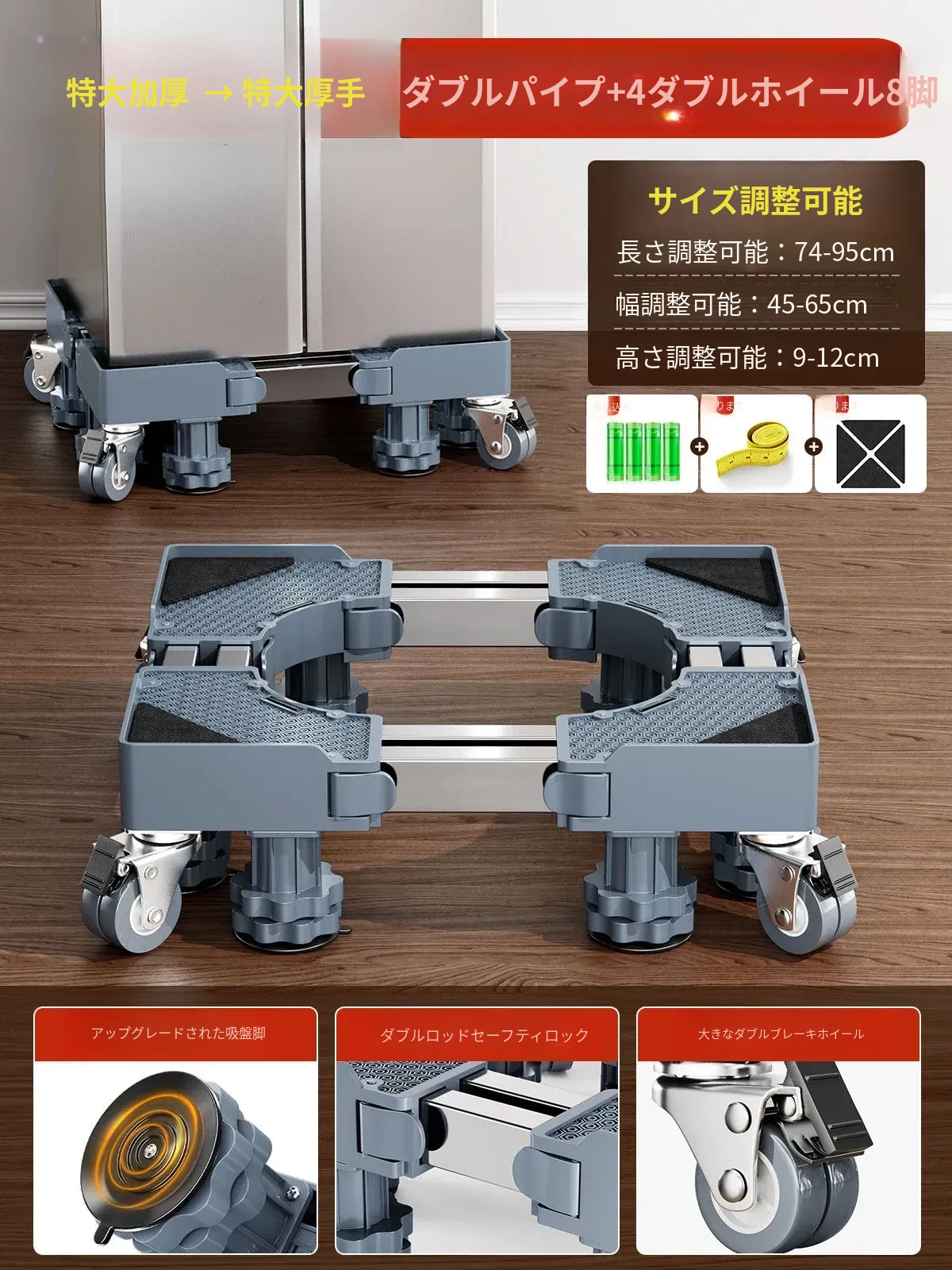 万能洗濯機用移動台 - 重い荷物もラクラク運搬!頑丈で耐摩耗性のキャスター付き、冷蔵庫や洗濯機の移動を簡単にサポートします。あなたの生活をもっと便利に!
