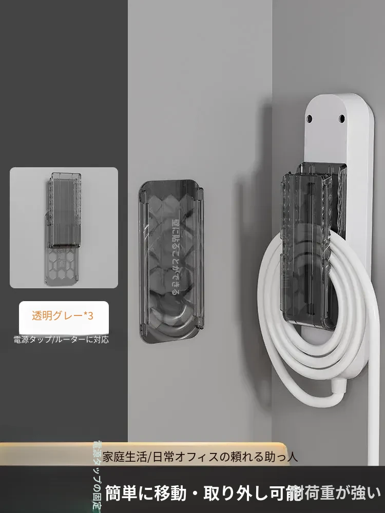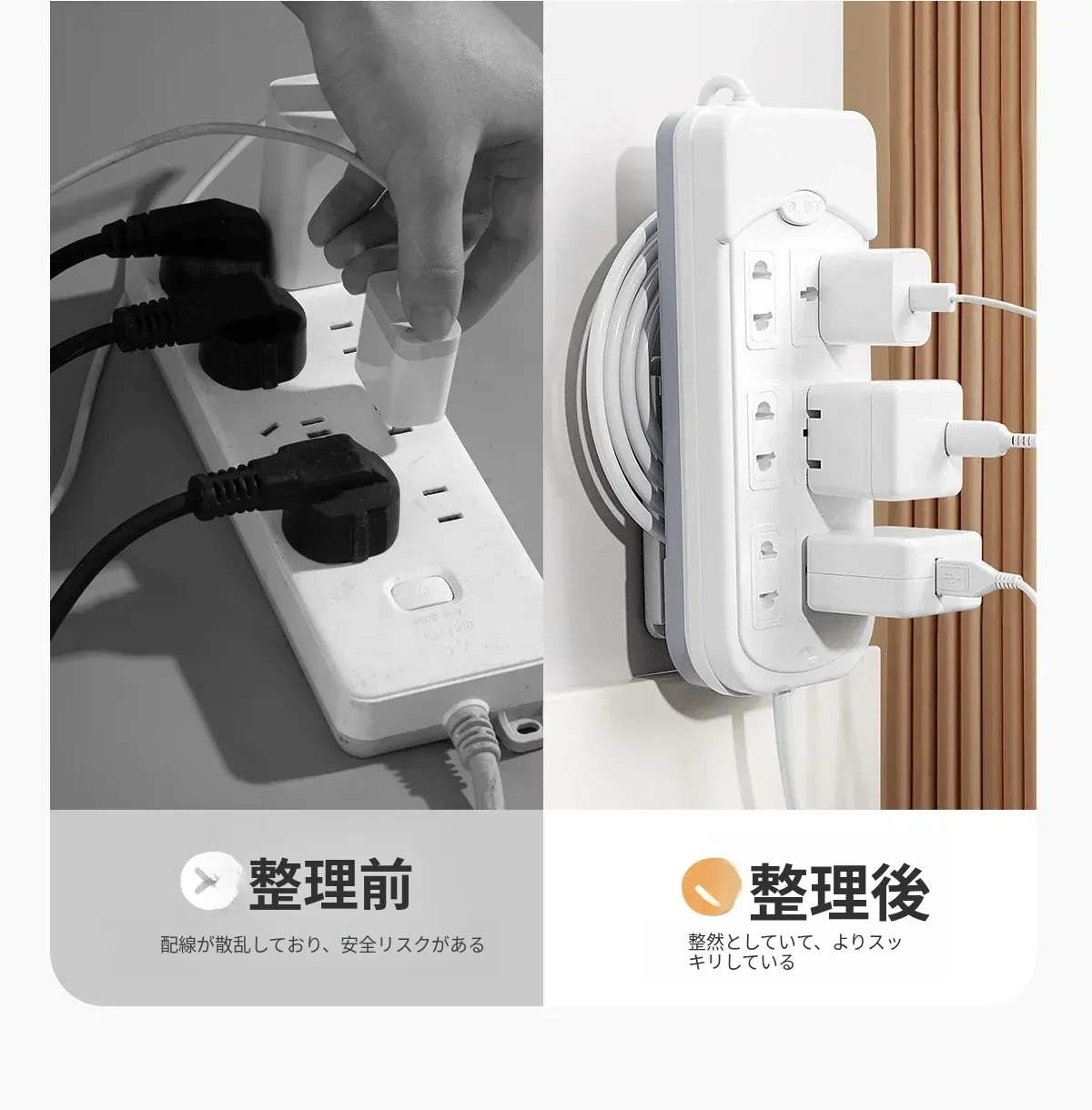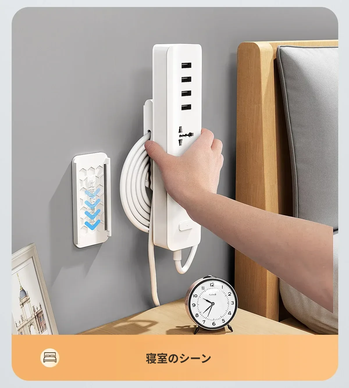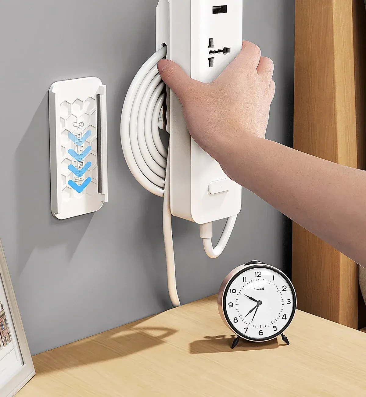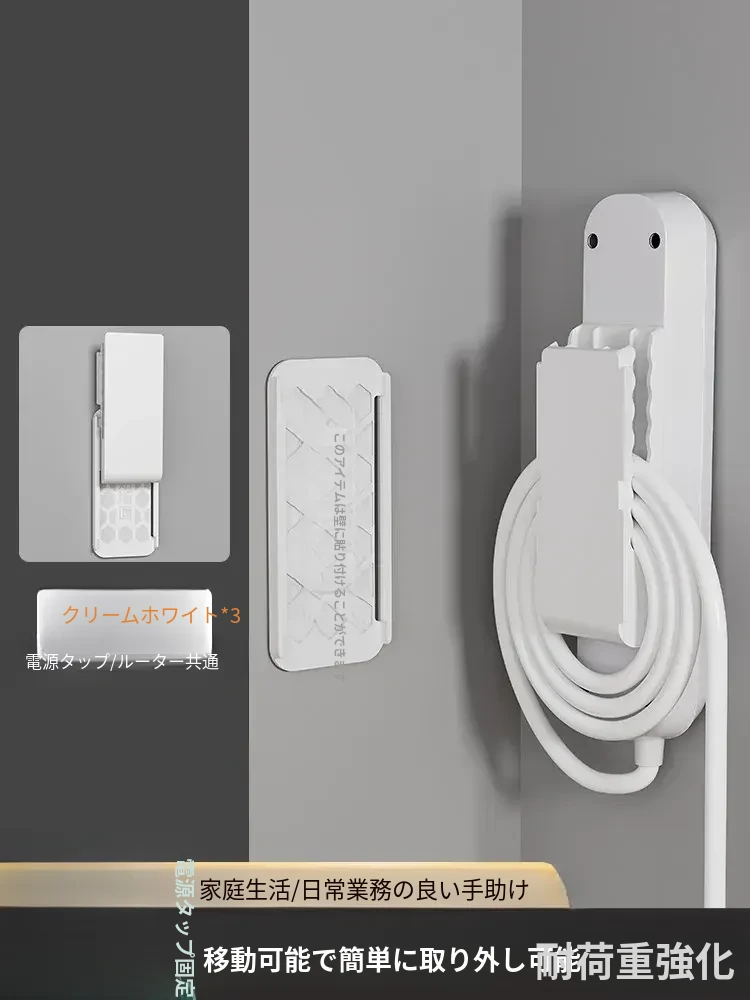 壁掛け式電源タップ固定器|配線整理・スッキリ収納|穴あけ不要で簡単取り付け!おしゃれなデザインでお部屋もスッキリ!電源タップをしっかり固定、配線もスマートに!