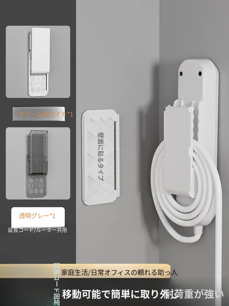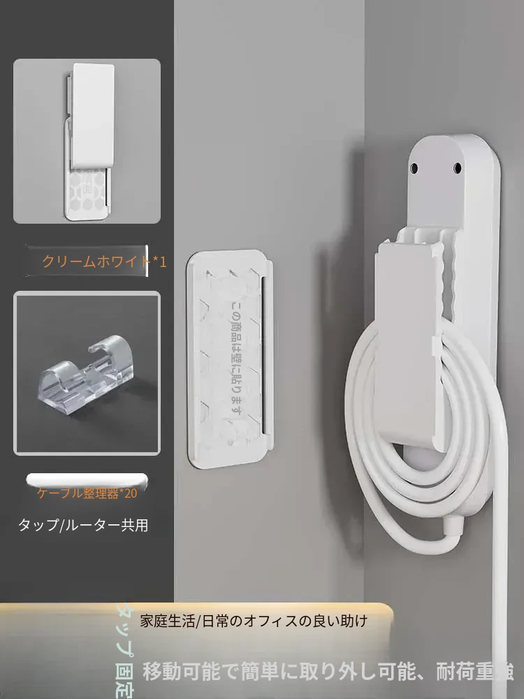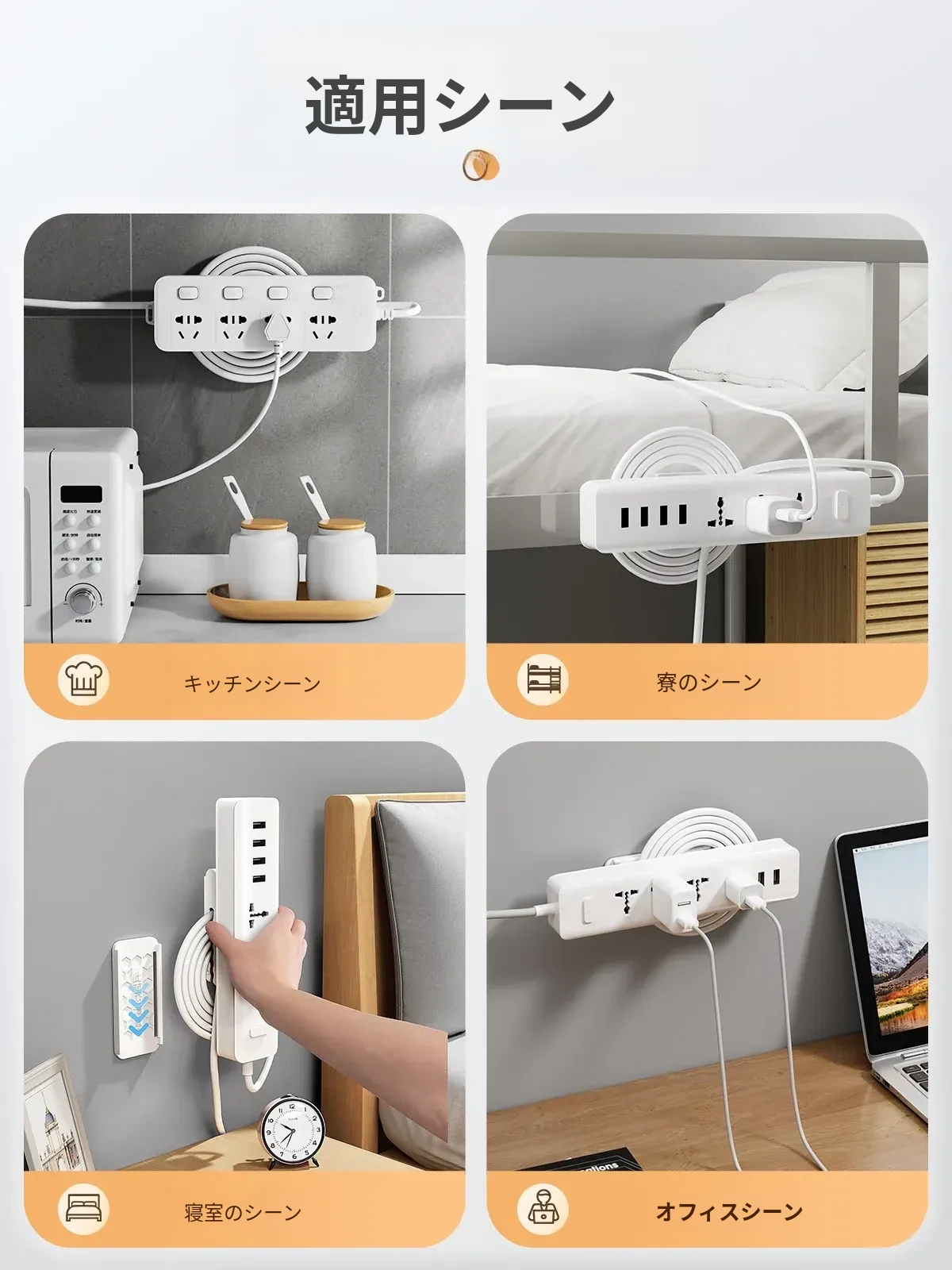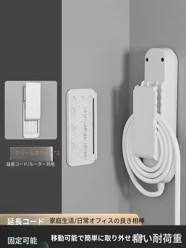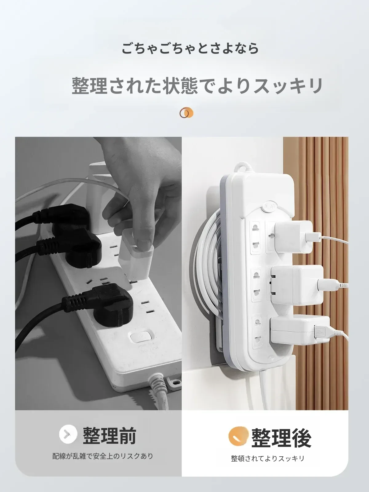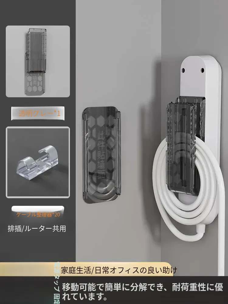 壁掛け式電源タップ固定器|配線整理・スッキリ収納|穴あけ不要で簡単取り付け!おしゃれなデザインでお部屋もスッキリ!電源タップをしっかり固定、配線もスマートに!