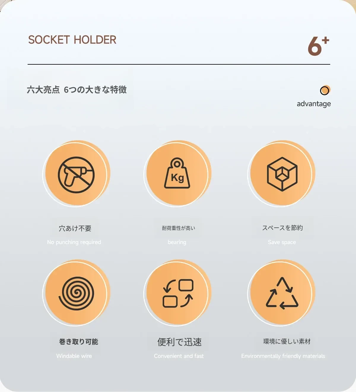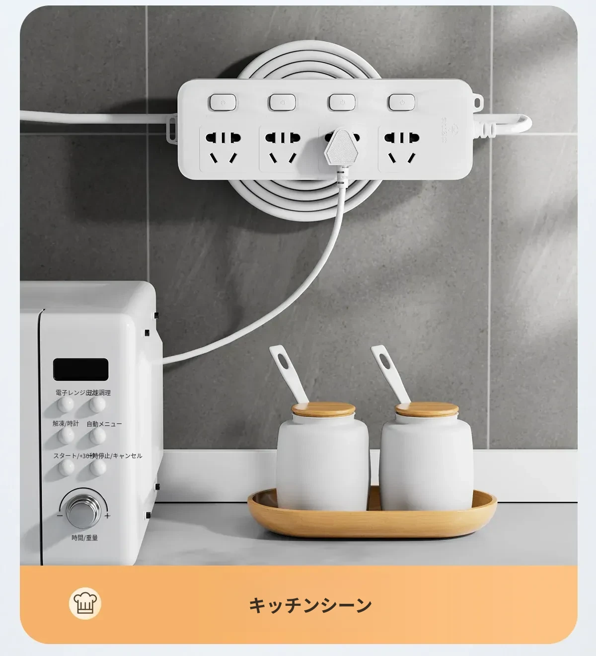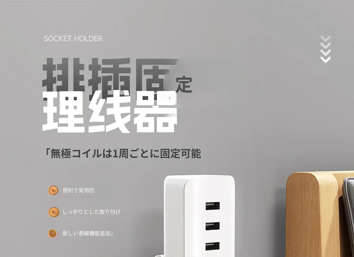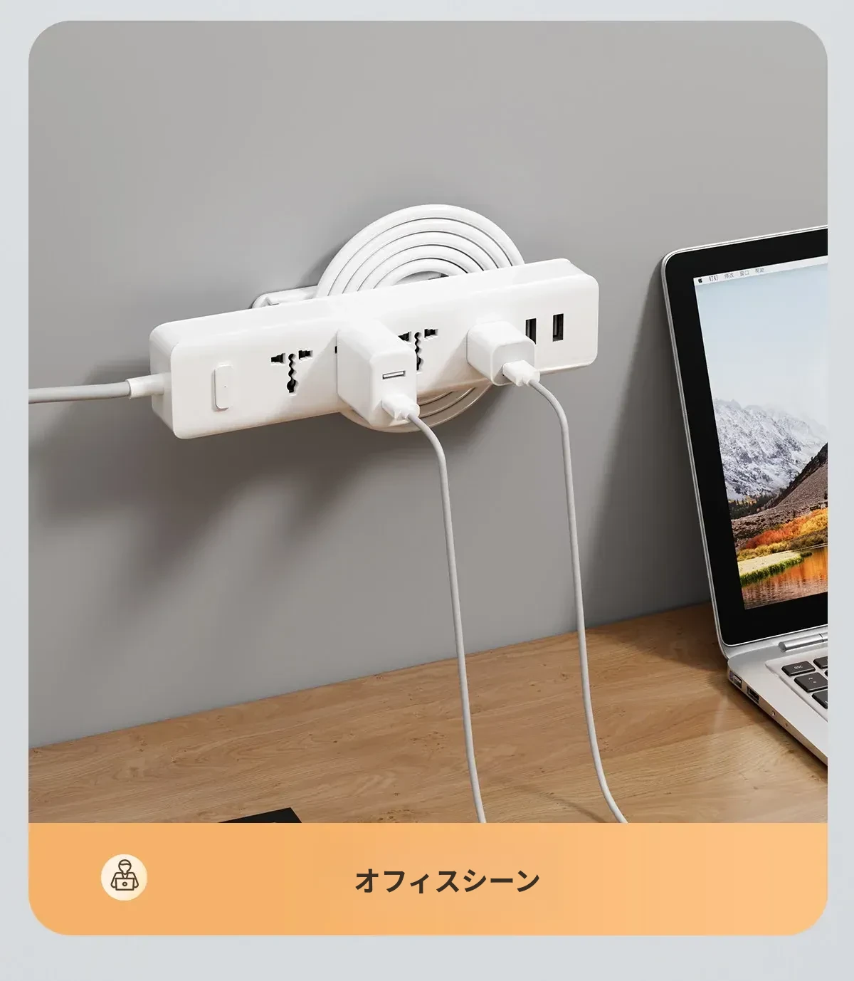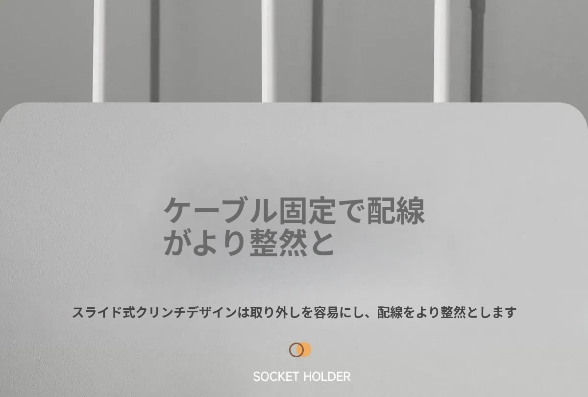 壁掛け式電源タップ固定器|配線整理・スッキリ収納|穴あけ不要で簡単取り付け!おしゃれなデザインでお部屋もスッキリ!電源タップをしっかり固定、配線もスマートに!