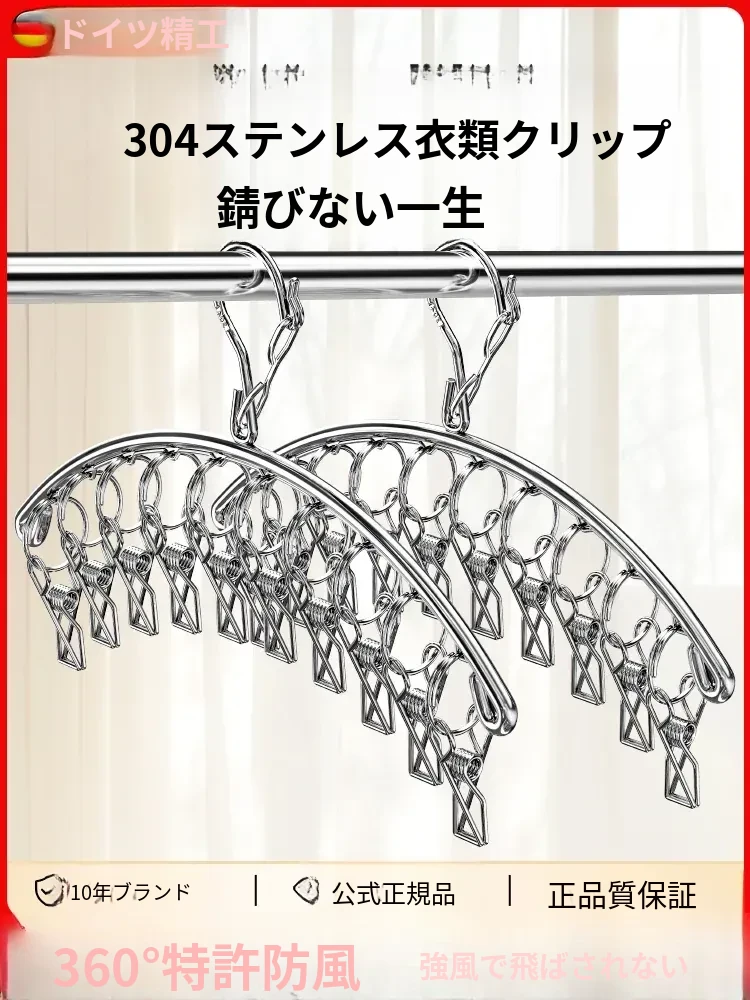 304ステンレス製多機能クリップ式物干しハンガー - 痕跡なしで風に強い、家庭用ソックス干しの必需品!