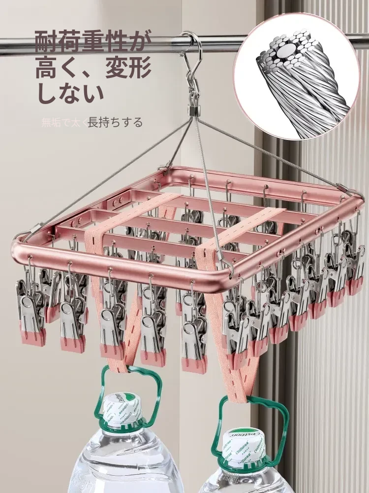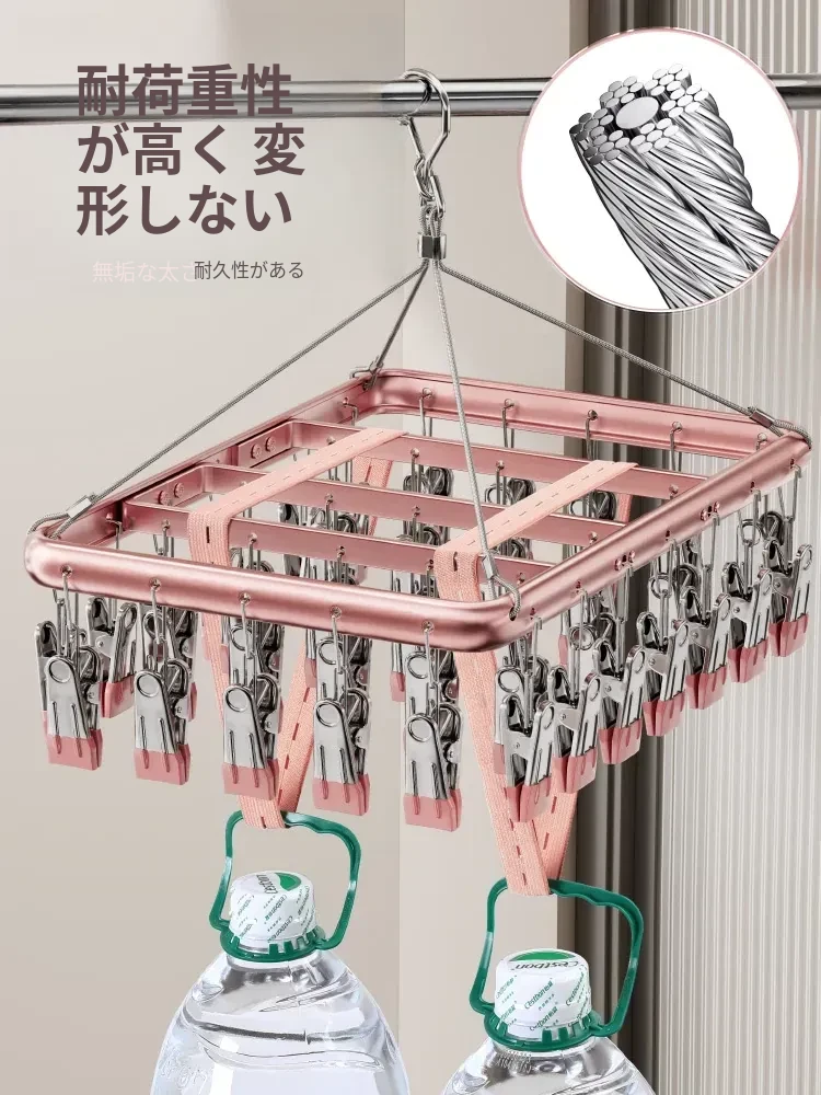 ステンレス製の下着・靴下干しハンガー、多機能クリップ付き!アルミ合金製で、家庭用に最適な靴下干しの必需品!おしゃれで実用的、洗濯物をスッキリ整理!