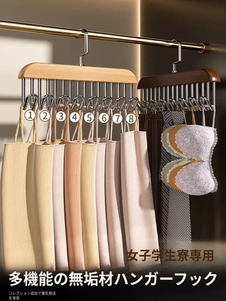 寮用木製インナー吊り下げハンガー!多機能ベスト収納神器!家庭用実木フック付き波型干しハンガーで、衣類をすっきり整理!