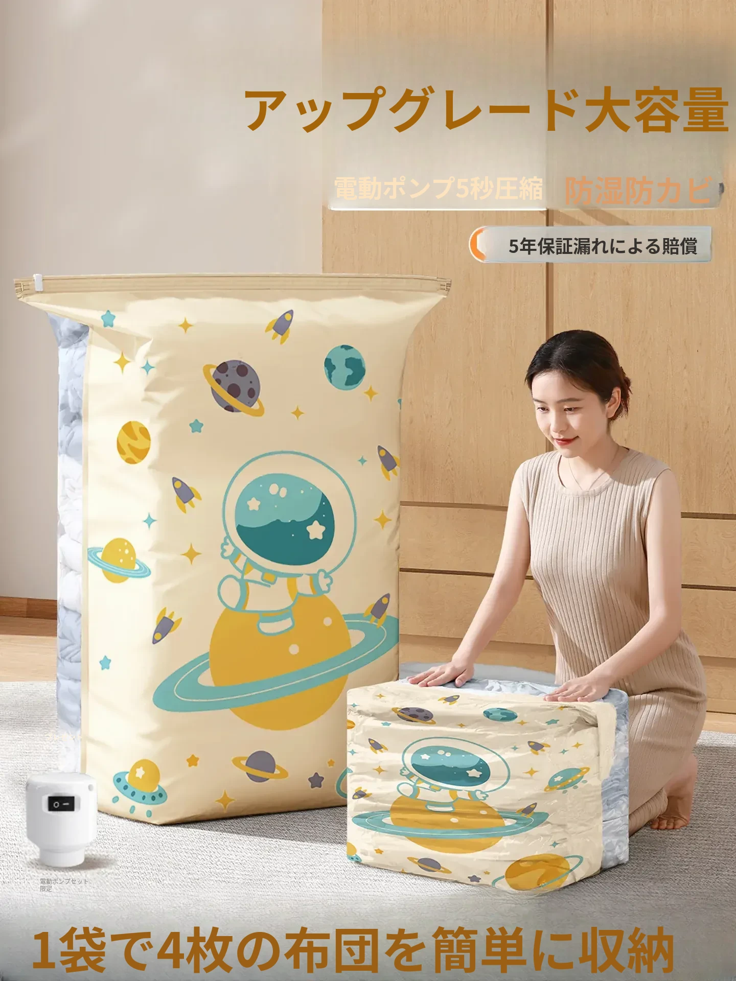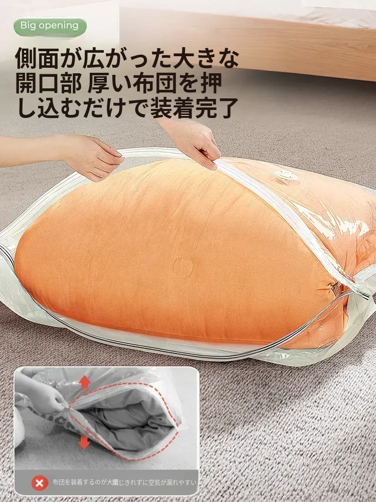 衣類・布団収納に最適!真空圧縮袋で衣服や羽毛布団をスマートに整理!厚手仕様で耐久性抜群、家中スッキリ!