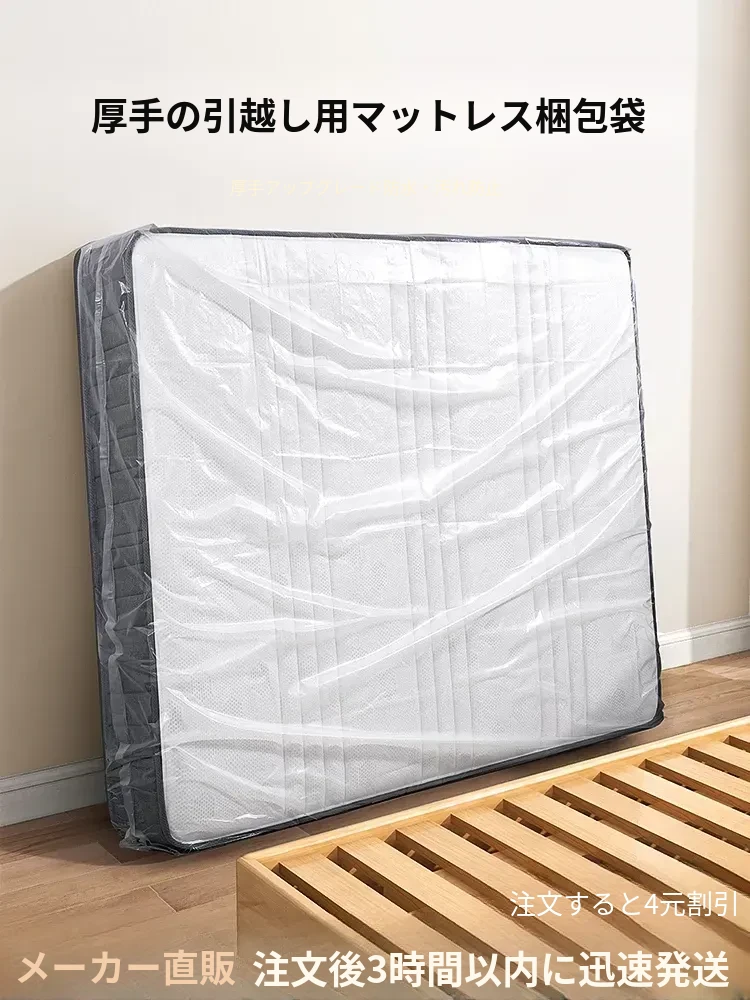 引越し用マットレス保護カバー - プラスチック袋収納、シングルサイズの引越し用パッキングフィルム、防塵・使い捨て特化型パッキング神器!大切なマットレスをしっかり守ります!