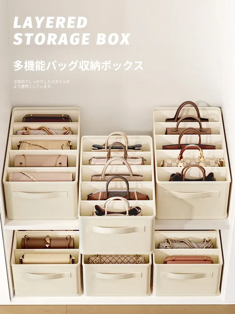 収納力抜群のバッグ整理棚!手提げトートバッグ専用の分別収納で、ホコリから守り、スペースを有効活用。大容量でスッキリ整理整頓!