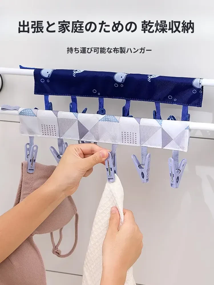 日本旅行に最適!折りたたみ式ポータブル衣類ハンガー - 出張やホテル滞在時に便利な布製の靴下や下着干し神器!収納も簡単で、旅行をもっと快適に!