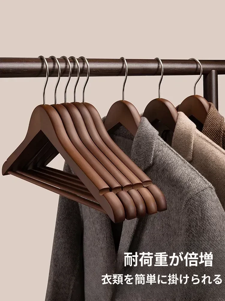 高級感あふれる無痕防滑木製ハンガー - 家庭用・ホテル・服装店に最適!実木製で衣類を優しくサポートし、洗練されたスタイルを演出します。あなたの大切な衣類を美しく保つための必需品です!