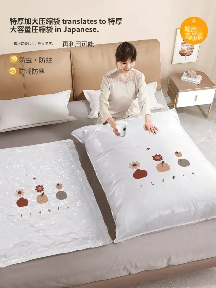 真空圧縮袋 厚手ダウンジャケット・羽毛布団・衣類収納に最適!旅行にも便利な衣類専用抽出袋で、スペースを節約し、整理整頓を実現!