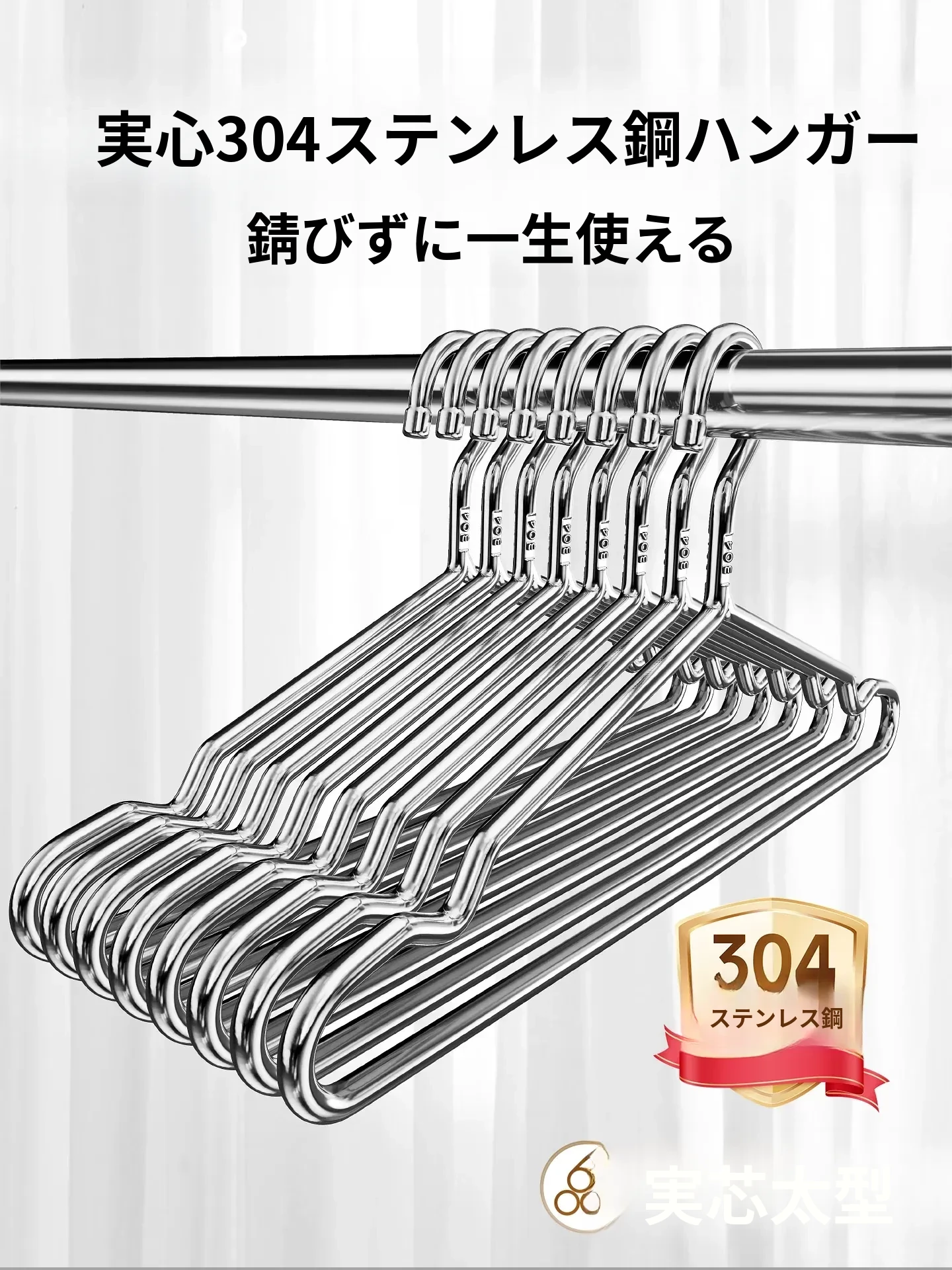 304ステンレス製滑り止め太めハンガー - 厚手で頑丈、家庭用・屋外用の無痕ハンガー!衣類をしっかり支え、滑り落ちる心配なし。おしゃれで機能的な収納アイテム、今すぐお試しください!